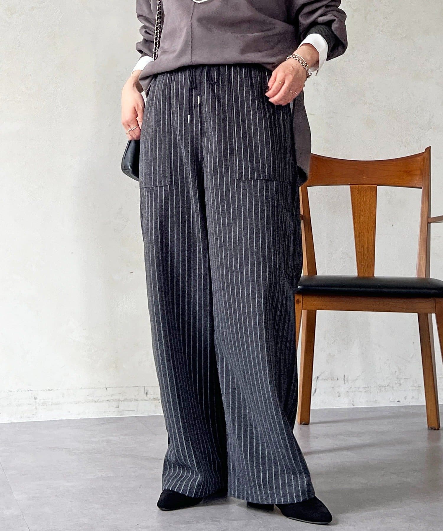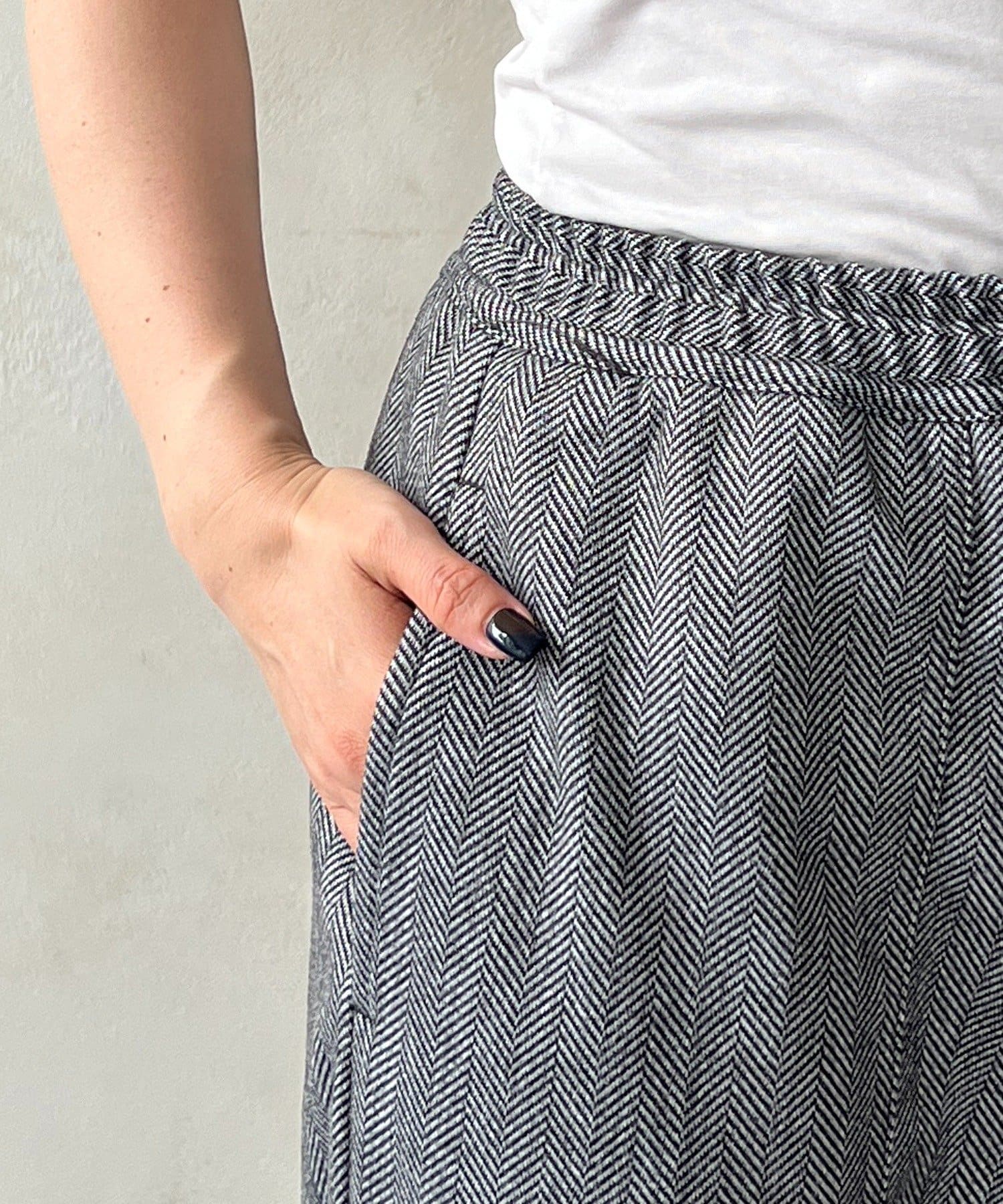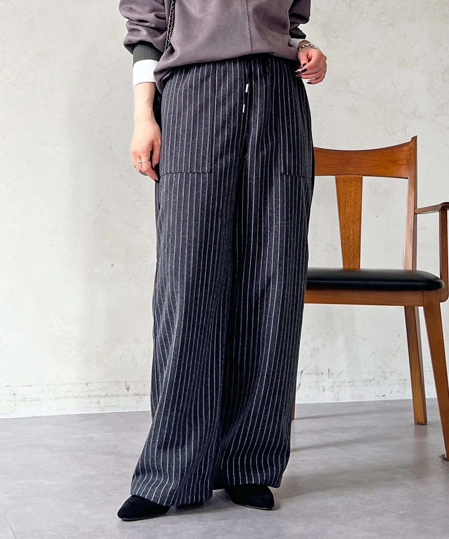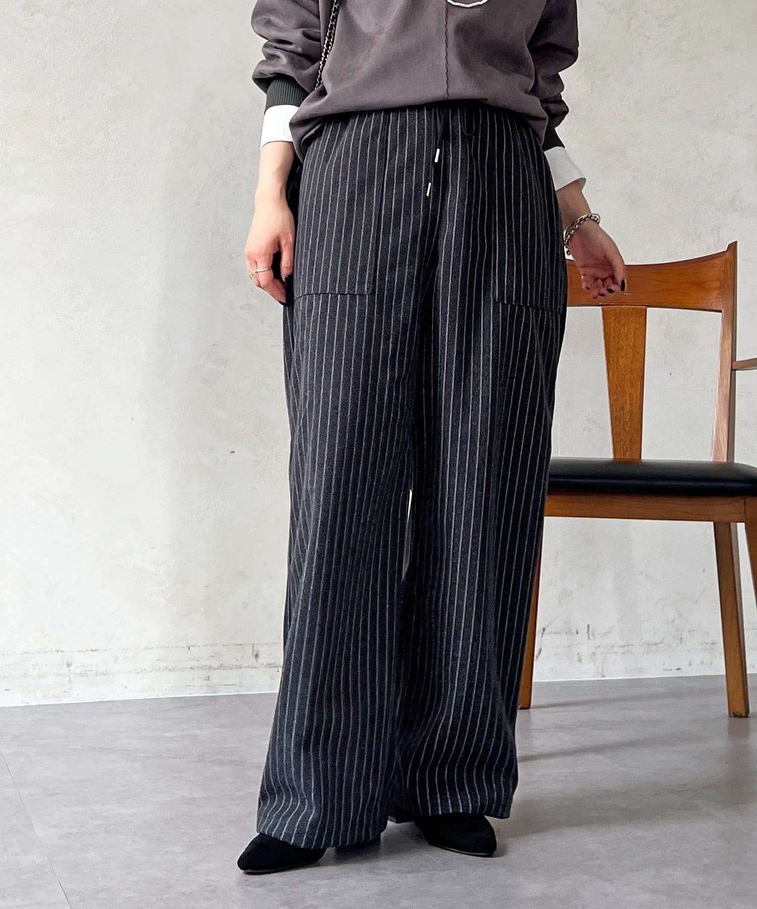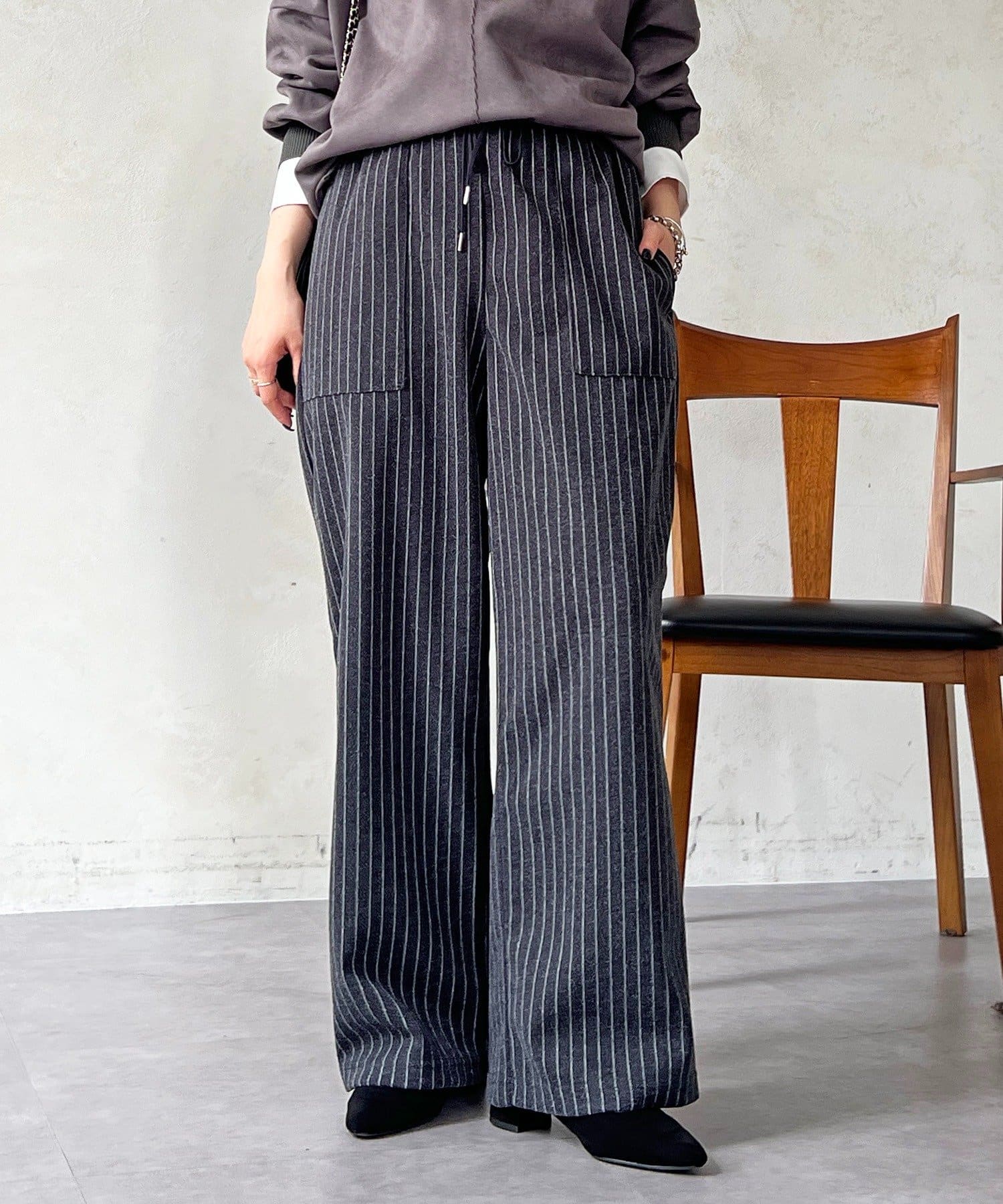 ・ウエストゴム仕様でリラクシーな温かみのあるストレートパンツ