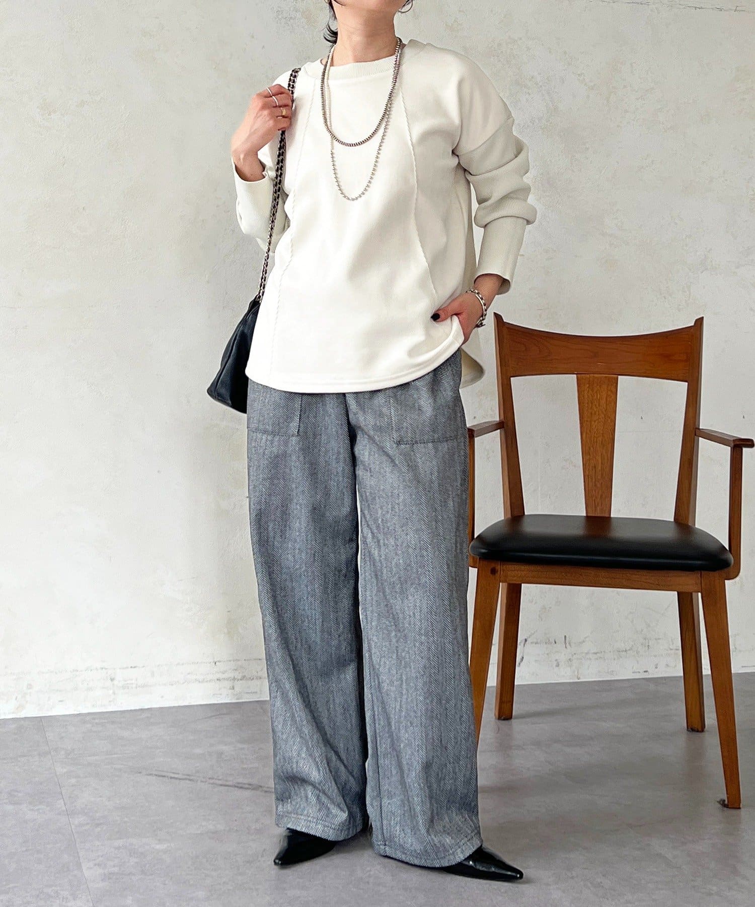 ・落ち感のあるシルエットで、オンオフ問わず着回しやすい