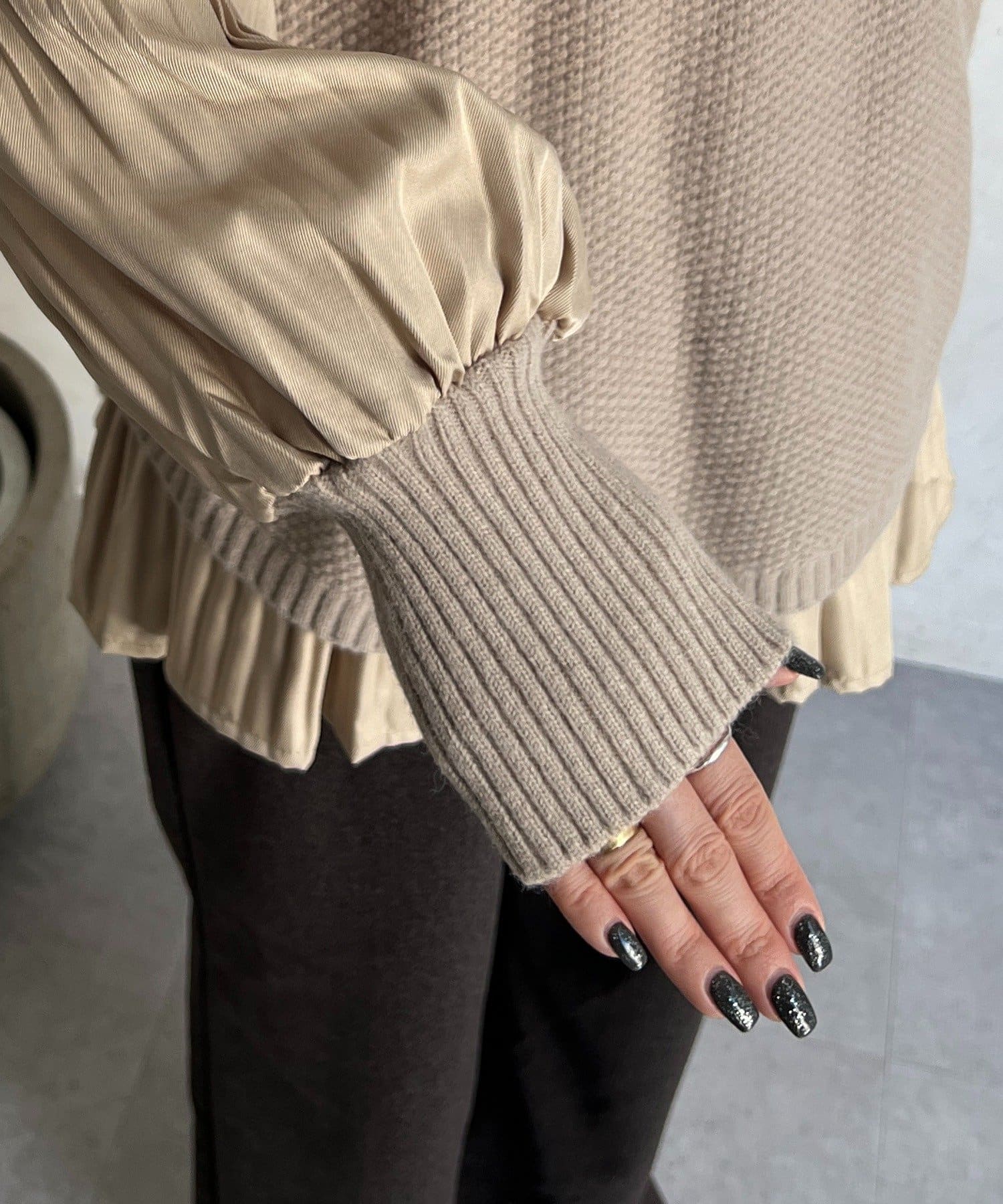• Croisiere(クロジエール) 袖異素材レイヤードニットプルオーバー