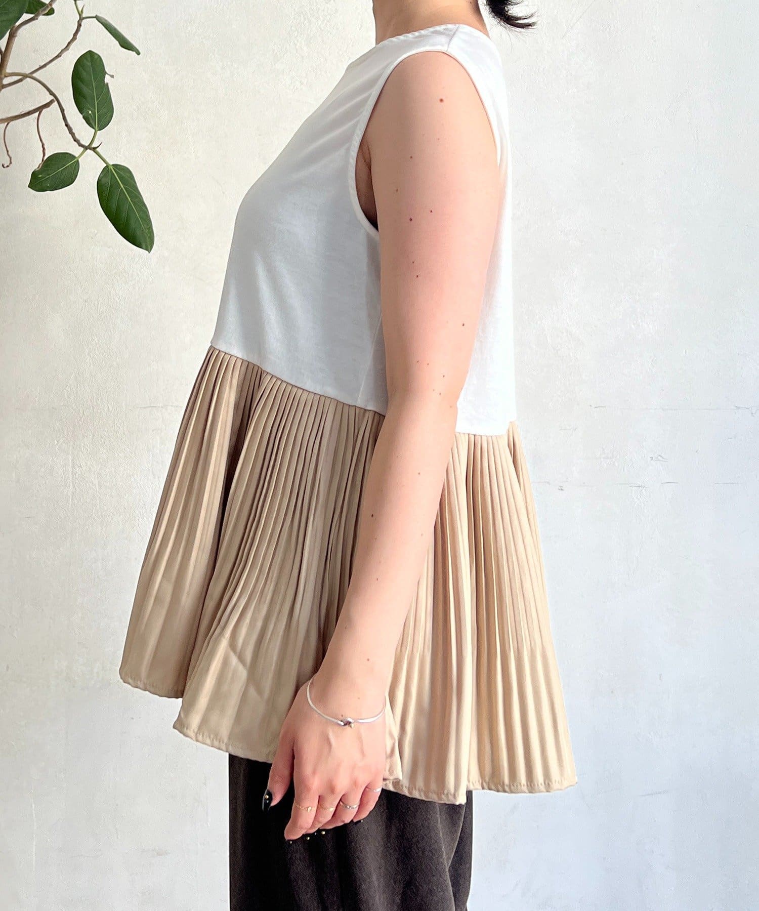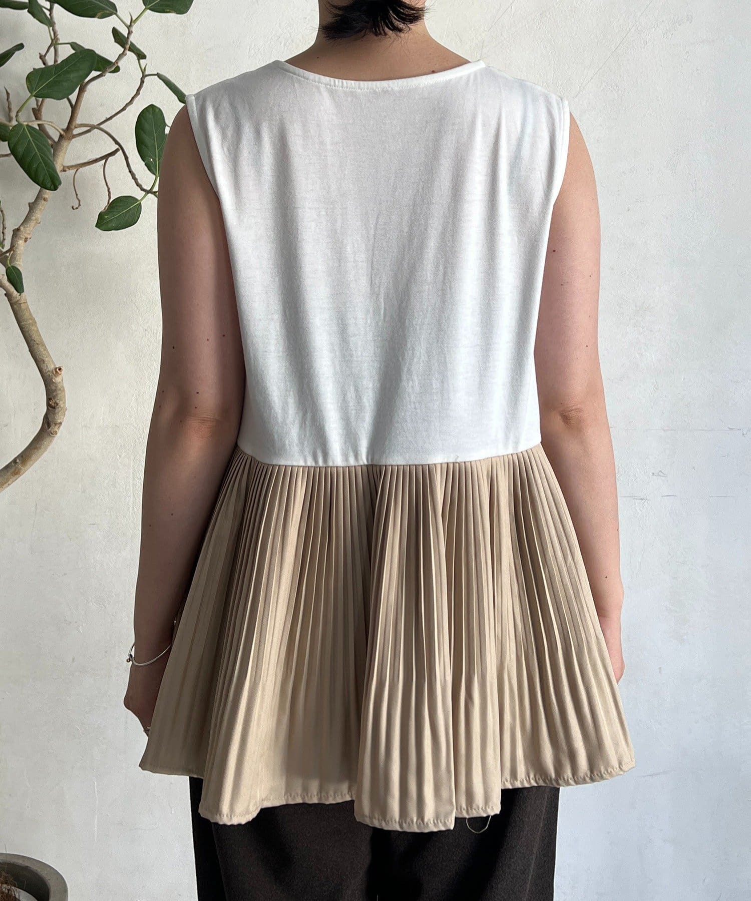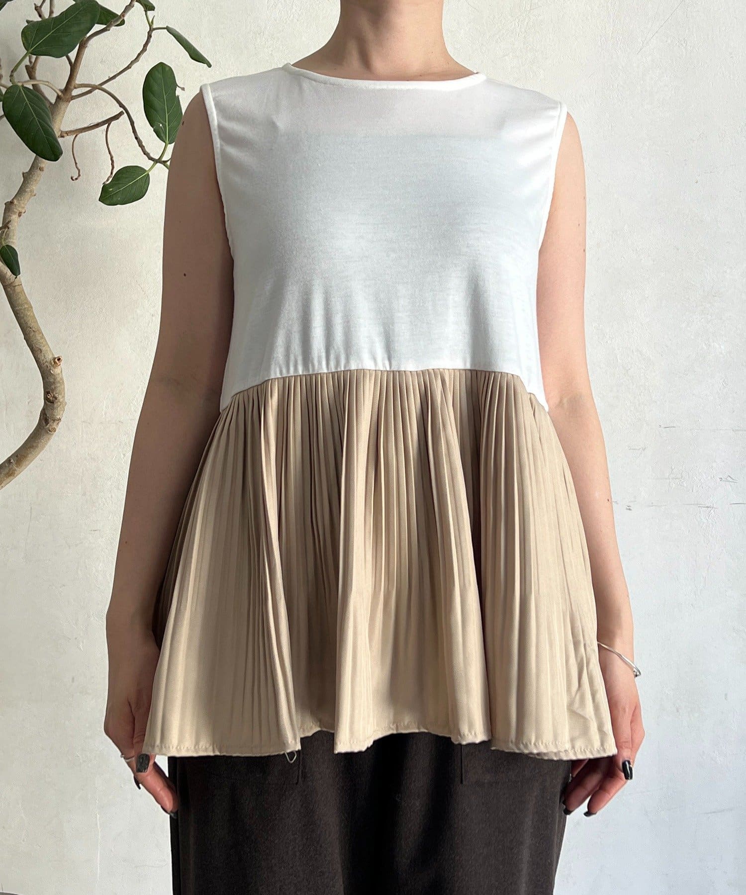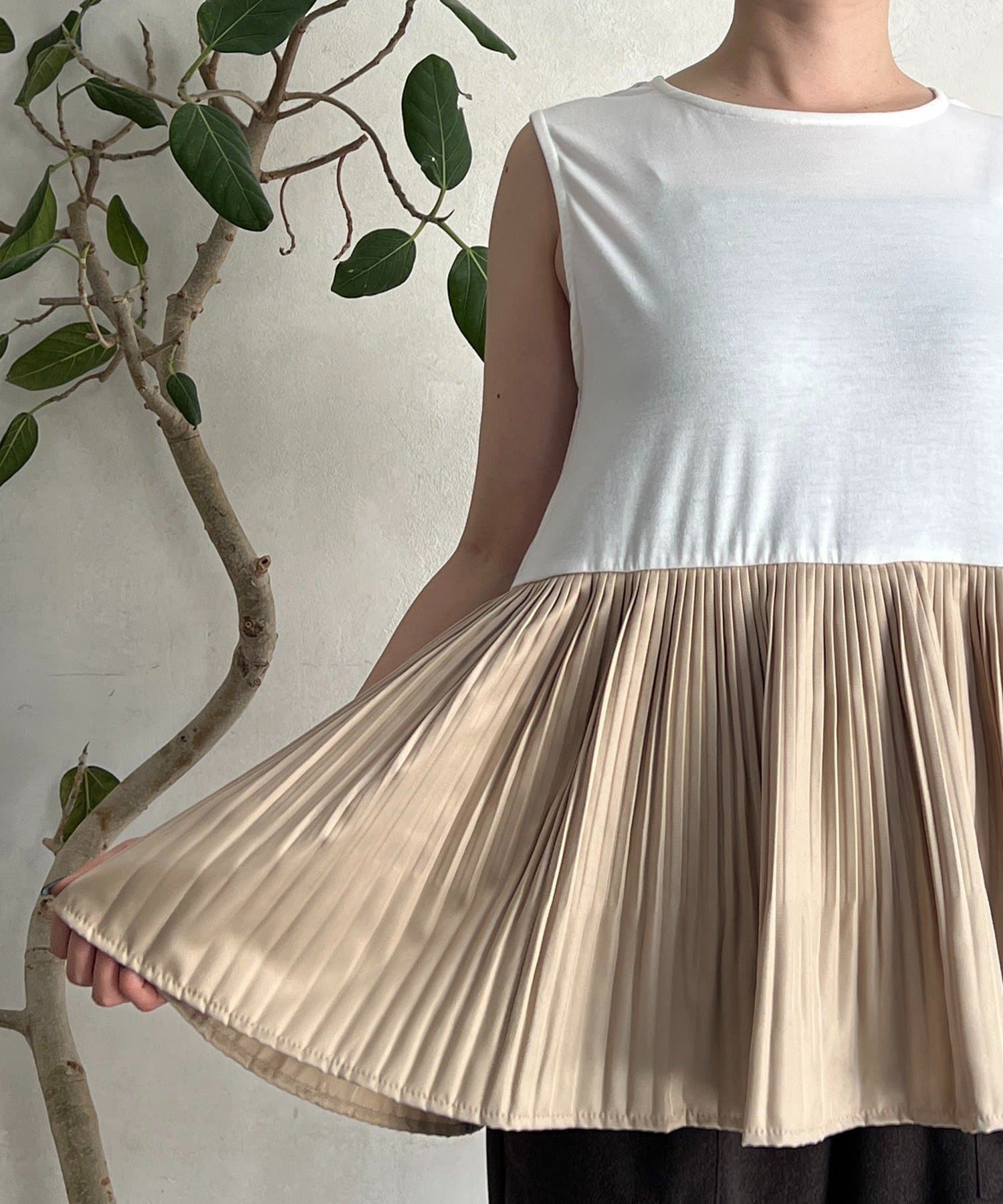 ・シンプルニットにプリーツの組み合わせで上品でフェミニンな印象に