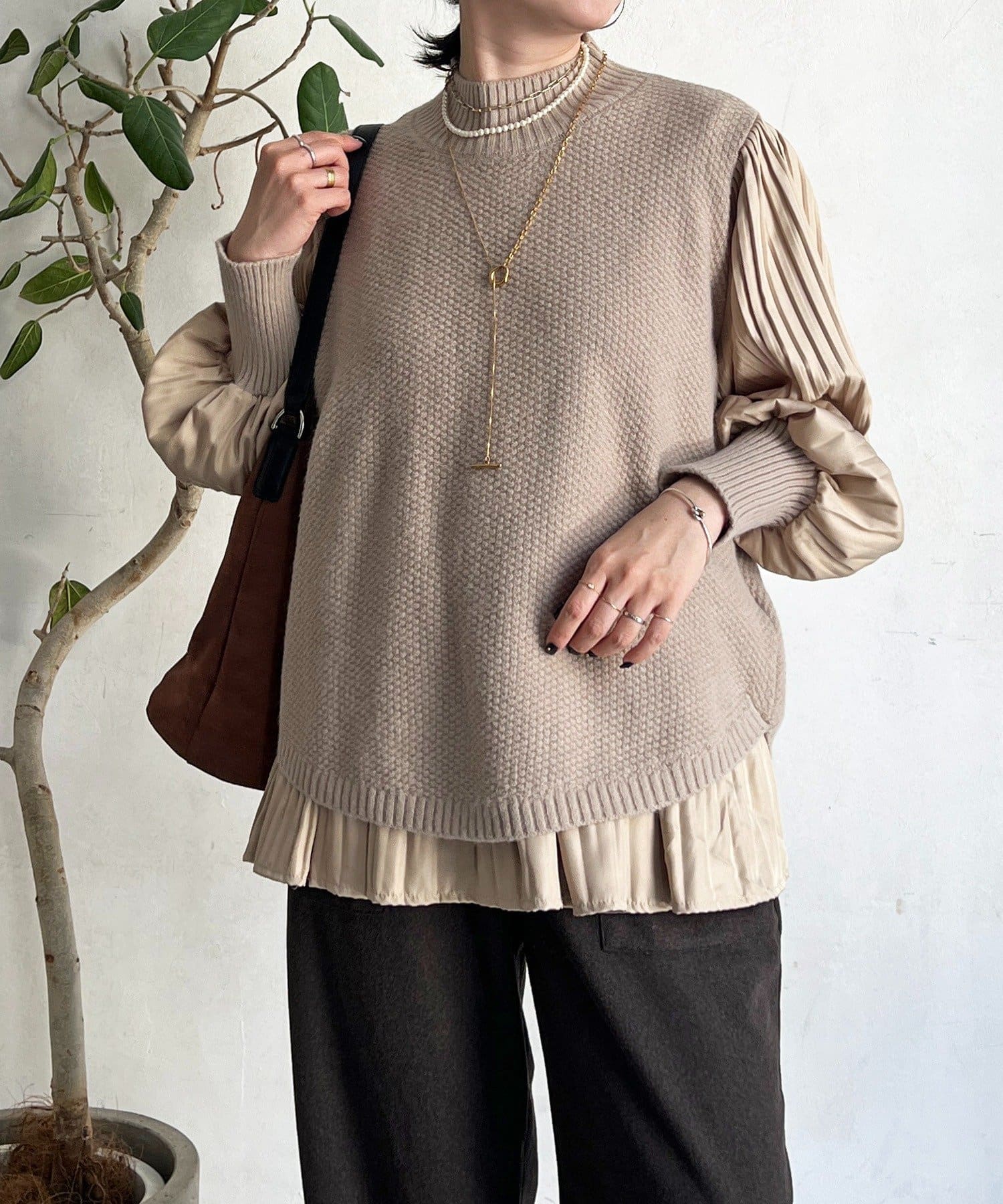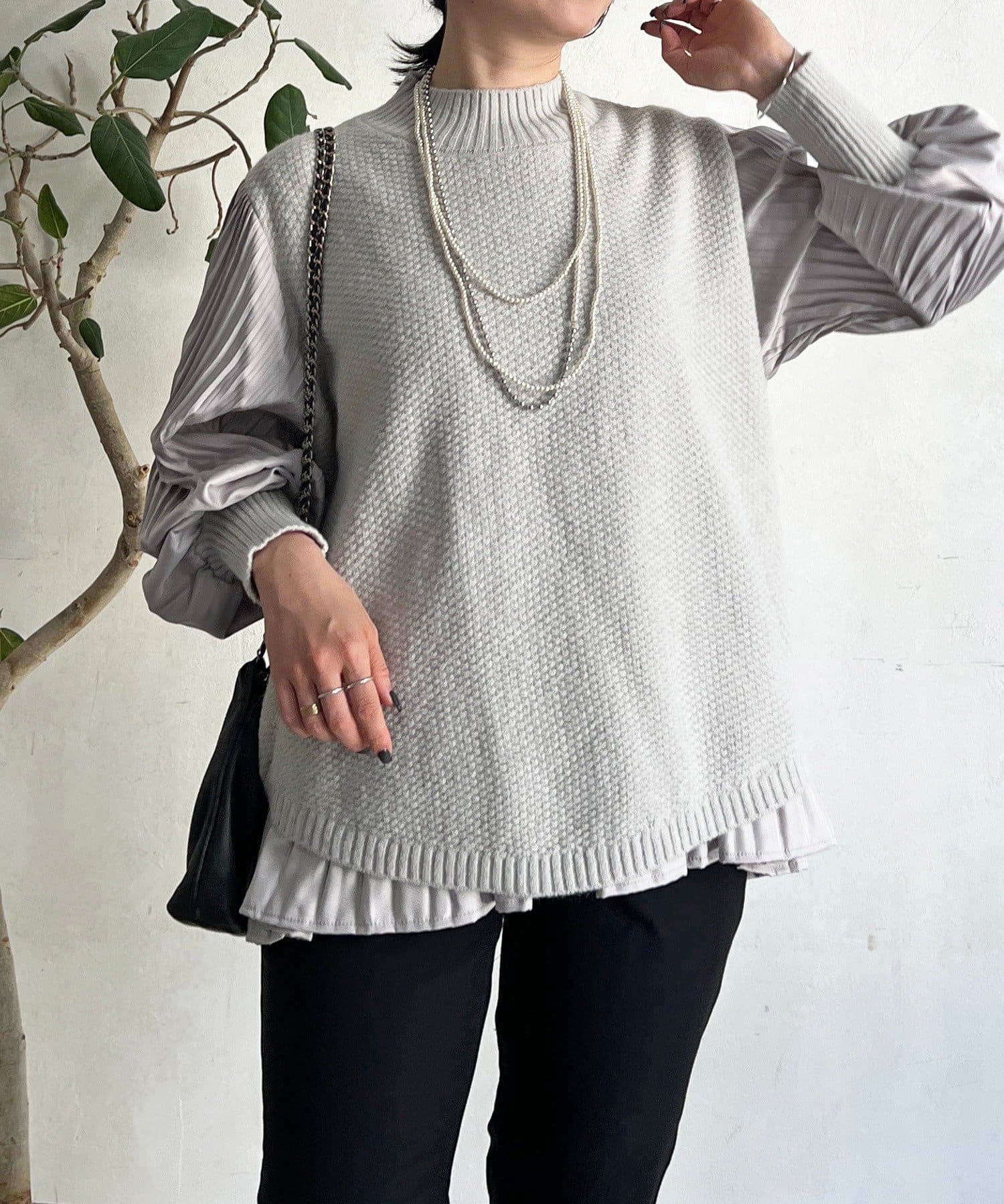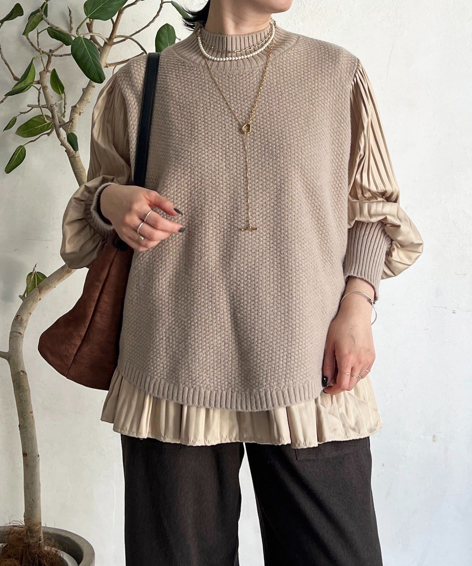 ・重ねるだけで楽ちんにオシャレ見えするレイヤードニットプルオーバー