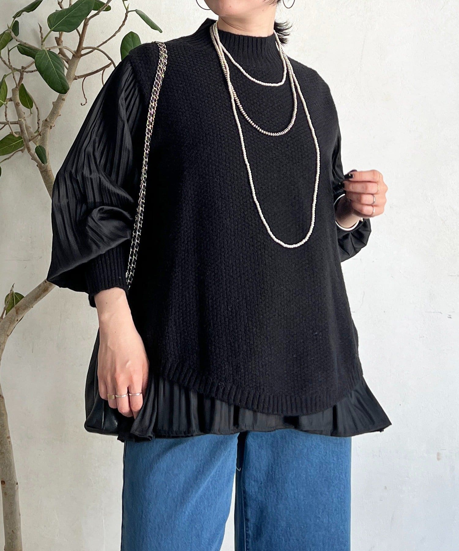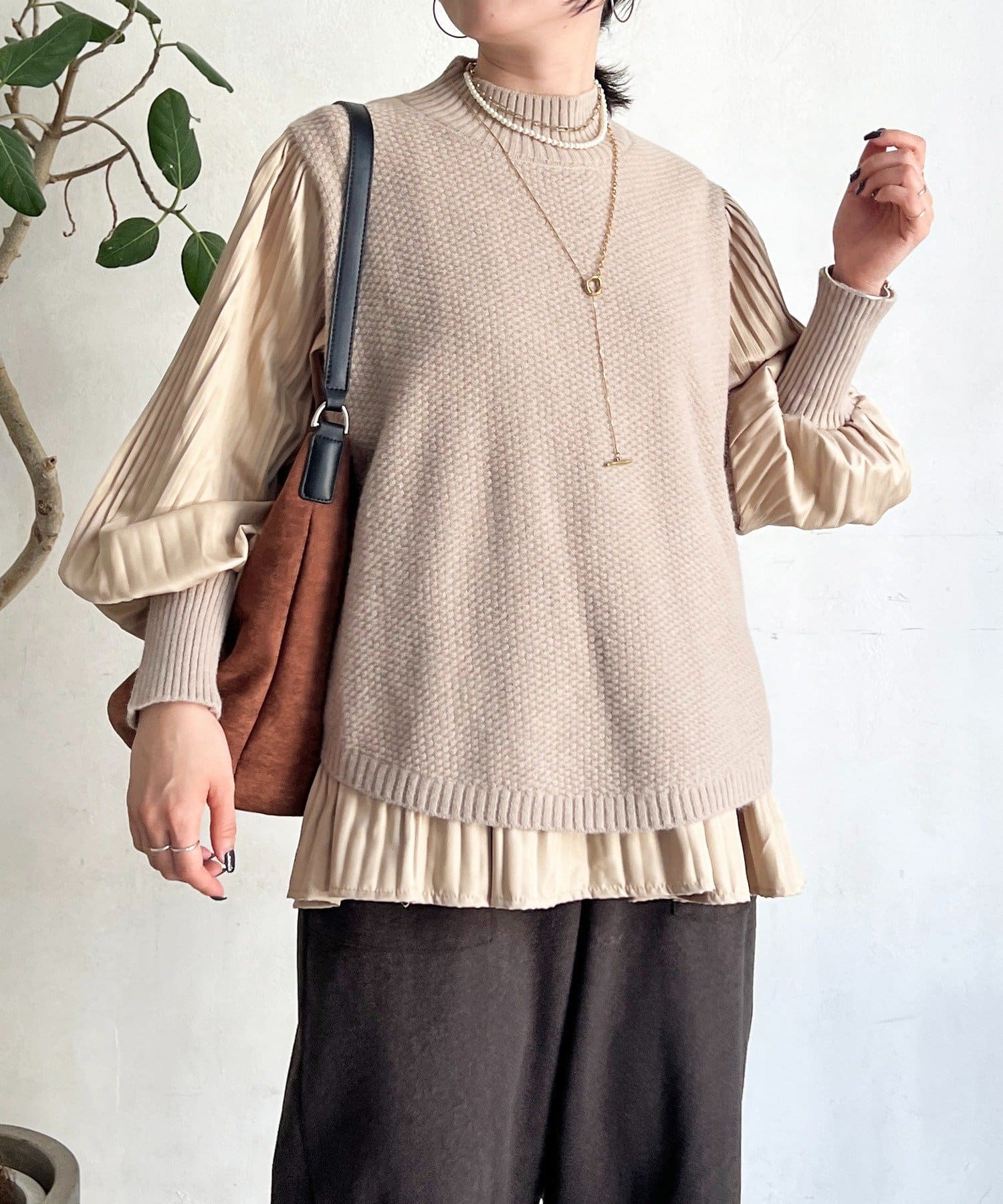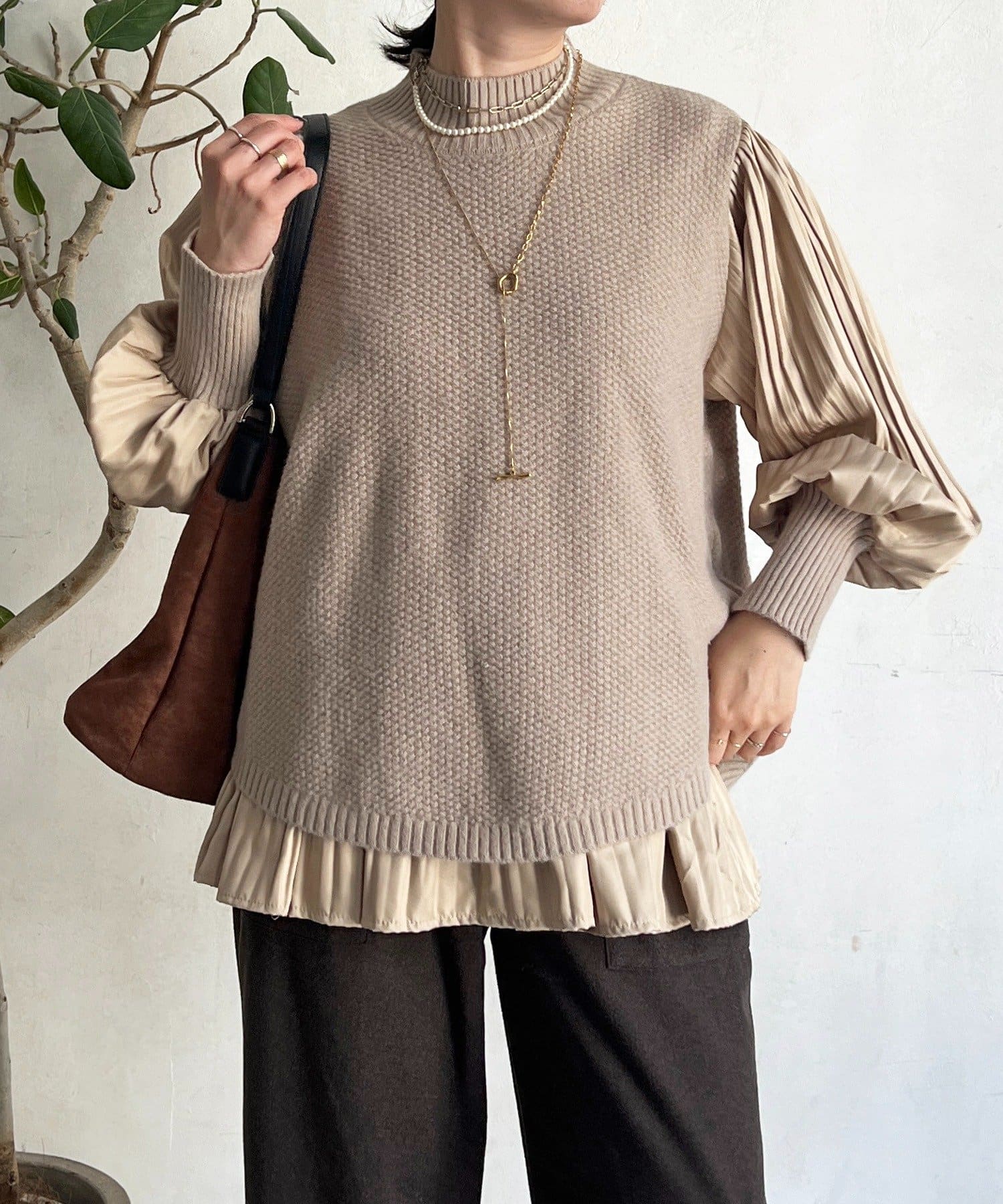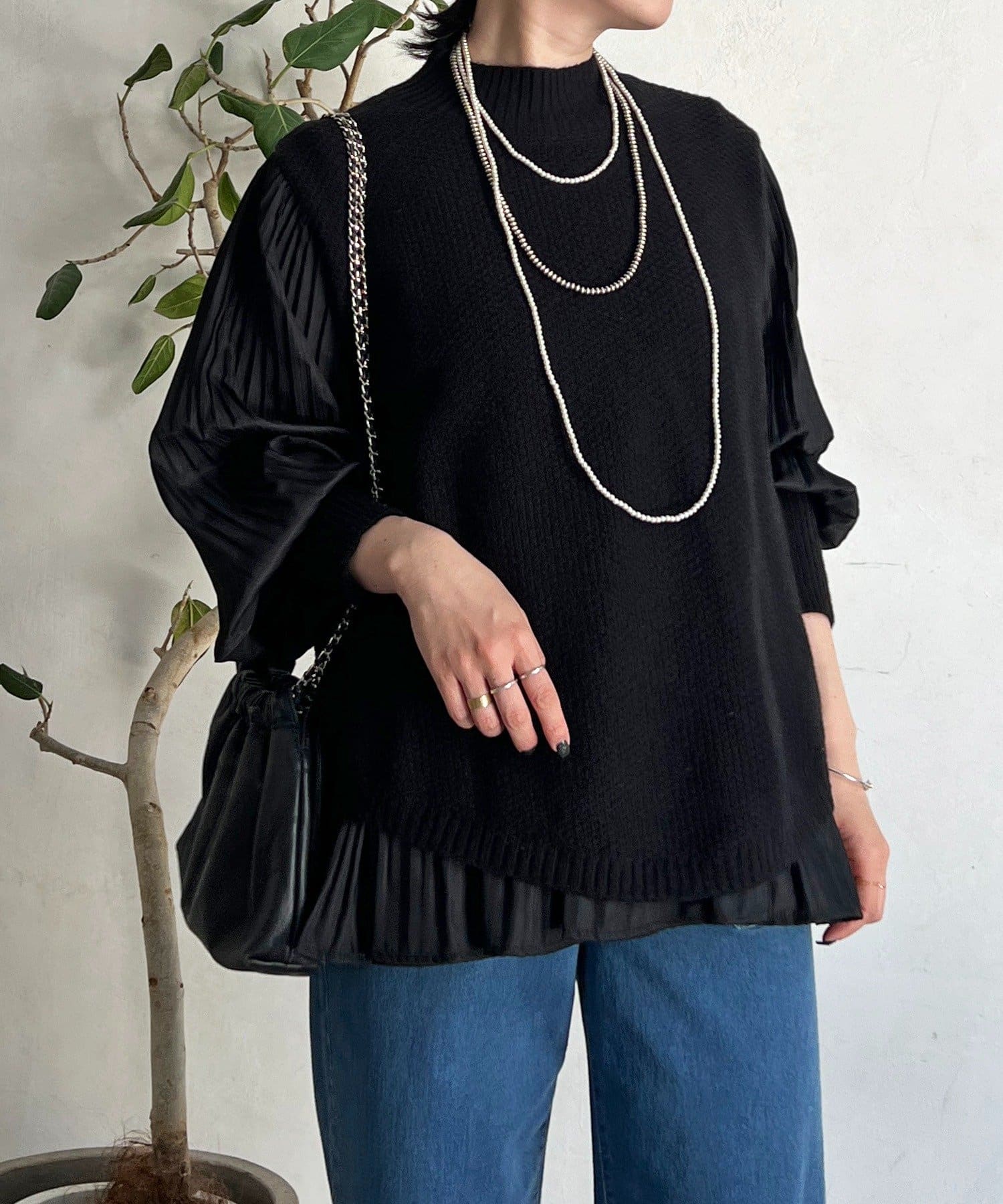 ・重ねるだけで楽ちんにオシャレ見えするレイヤードニットプルオーバー