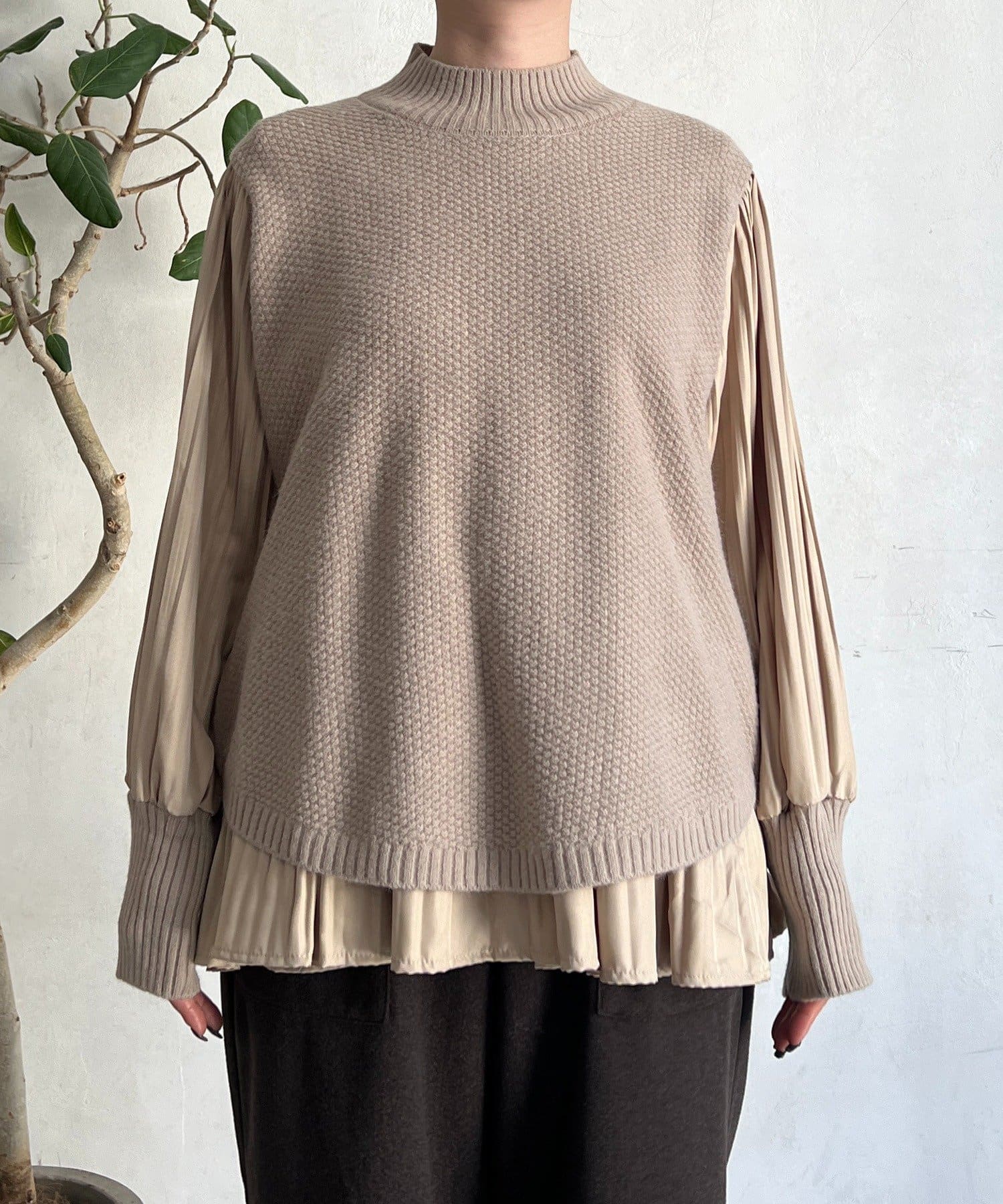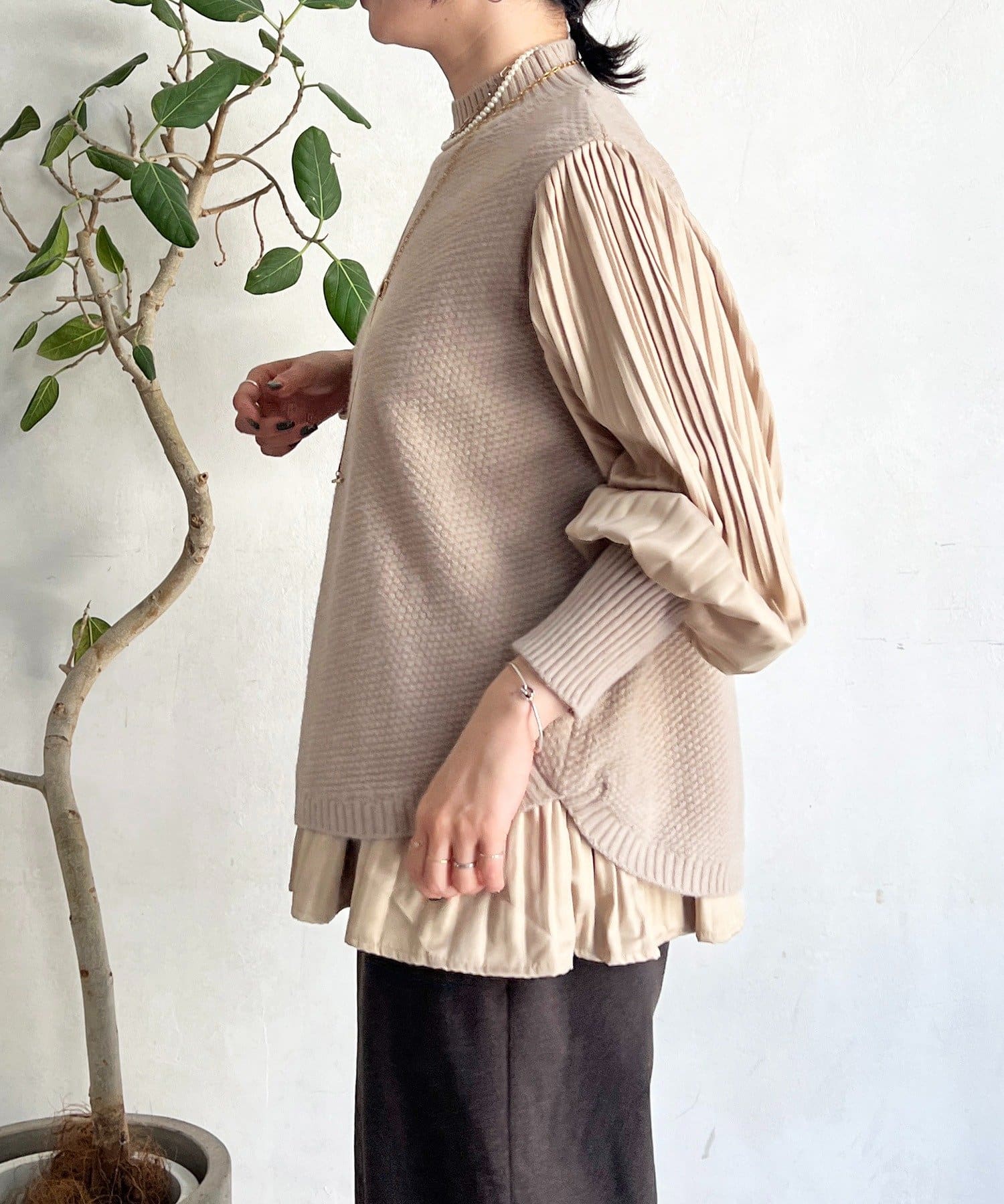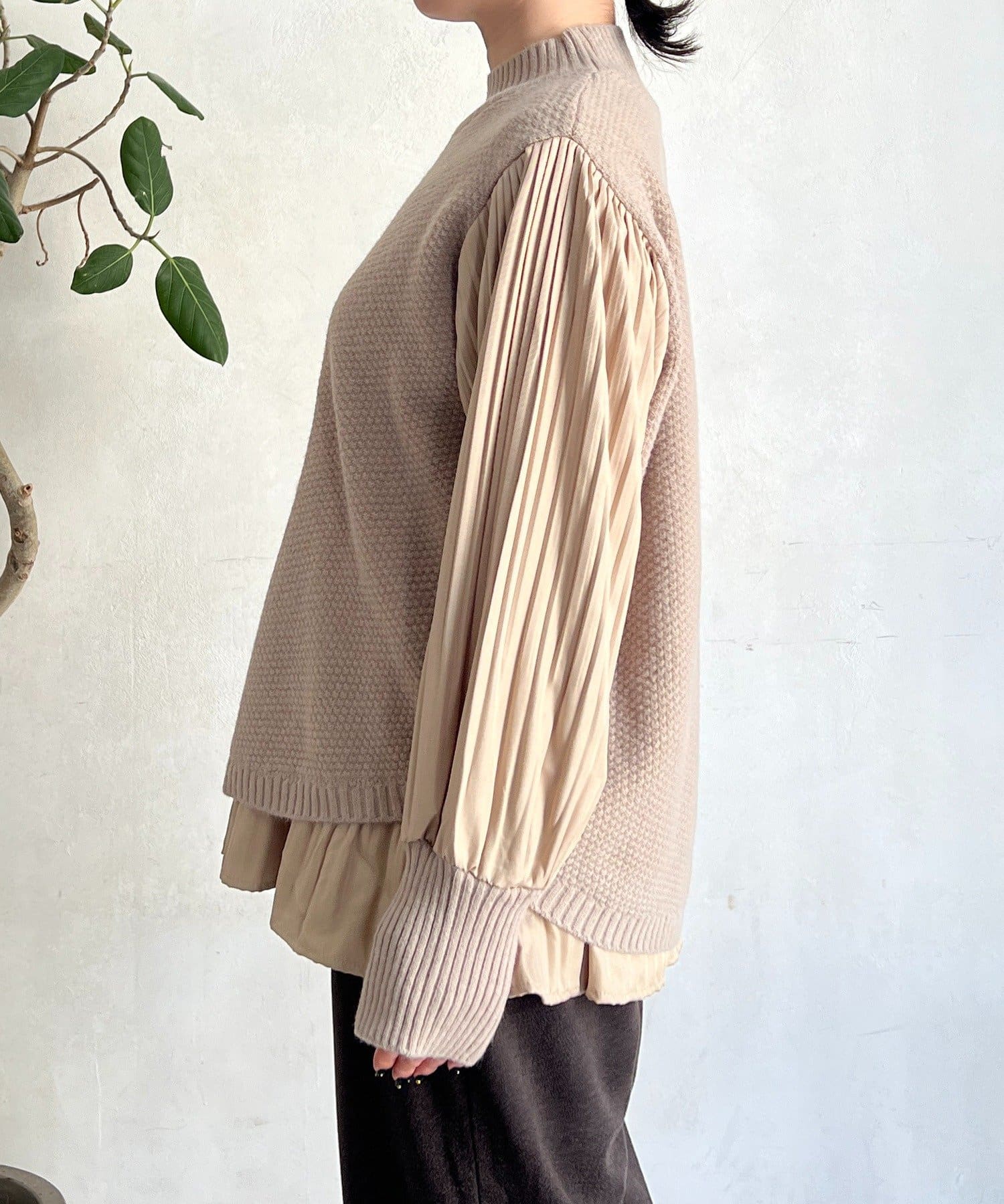 TOP > Croisiere > レディース > トップス > ニット/セーター > 袖異素材レイヤードニットプルオーバー