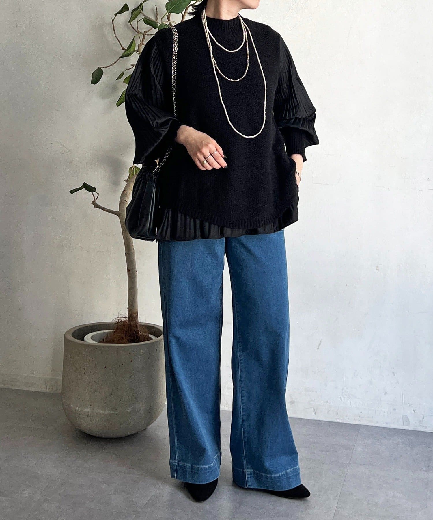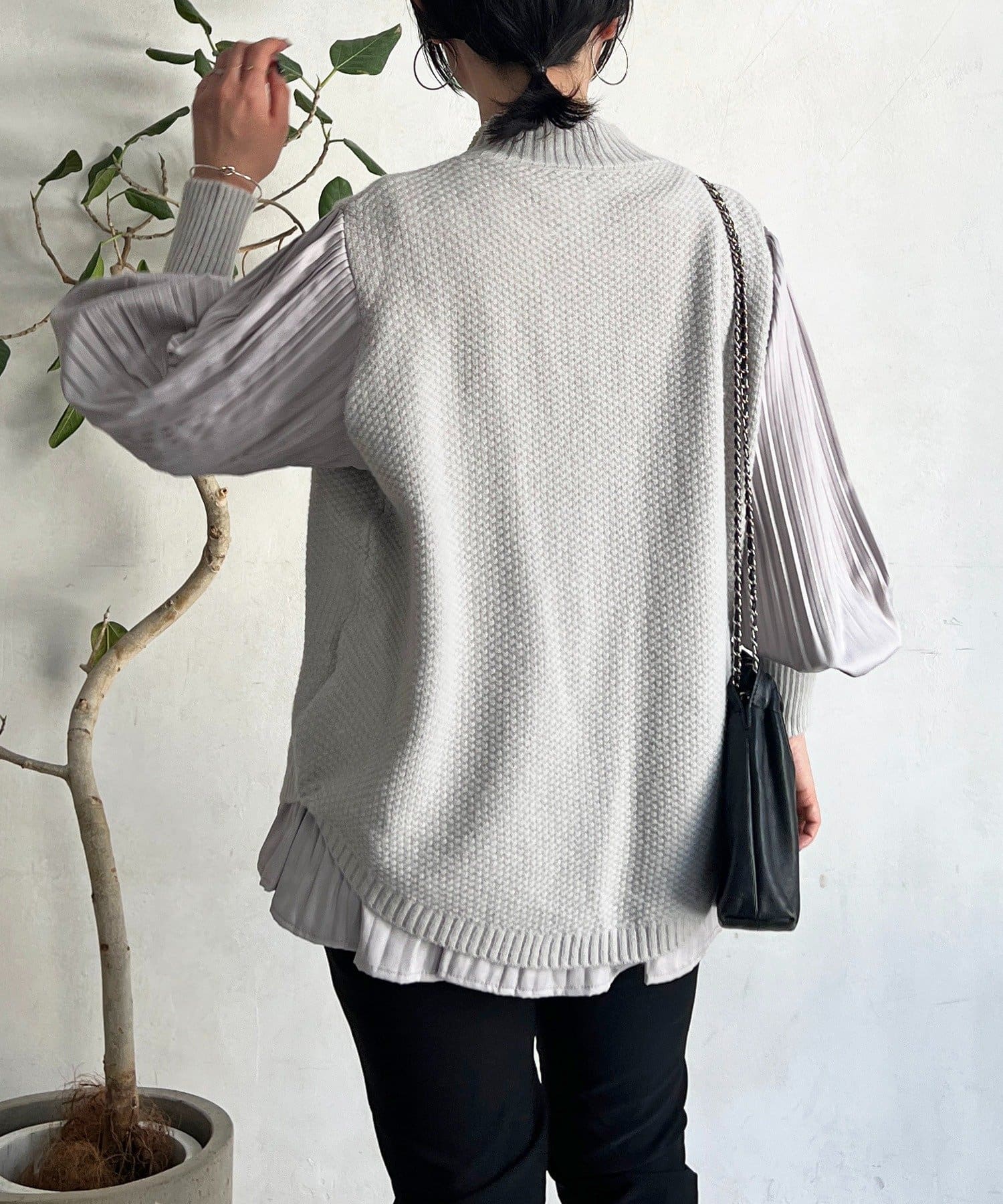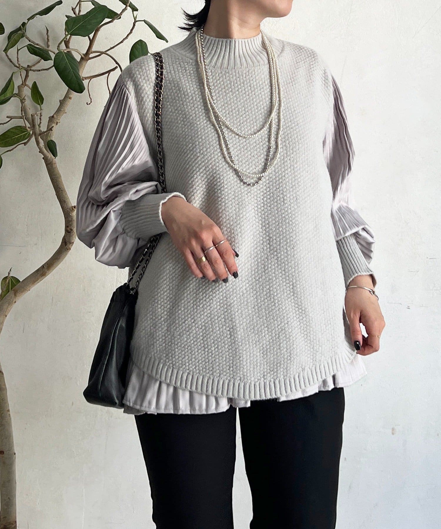 TOP > Croisiere > レディース > トップス > ニット/セーター > 袖異素材レイヤードニットプルオーバー
