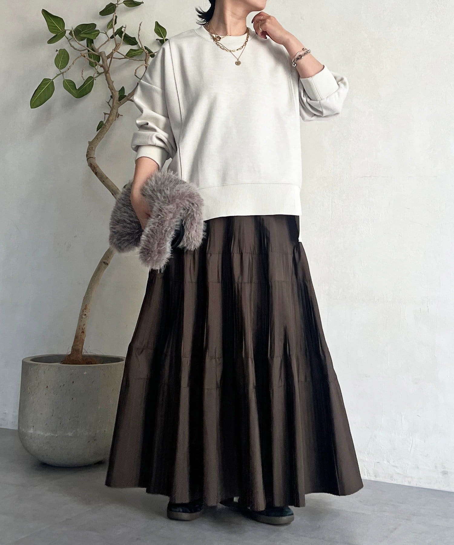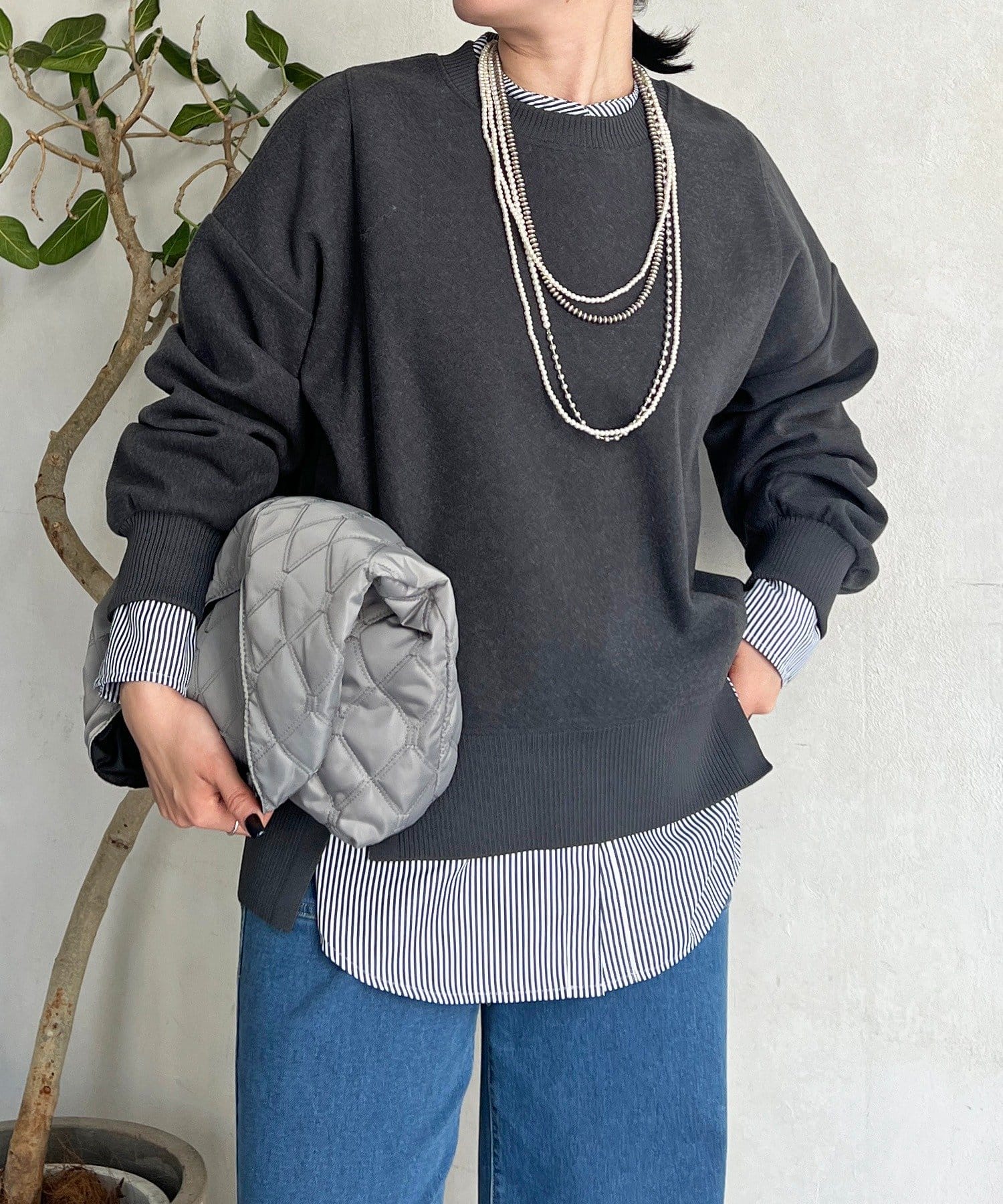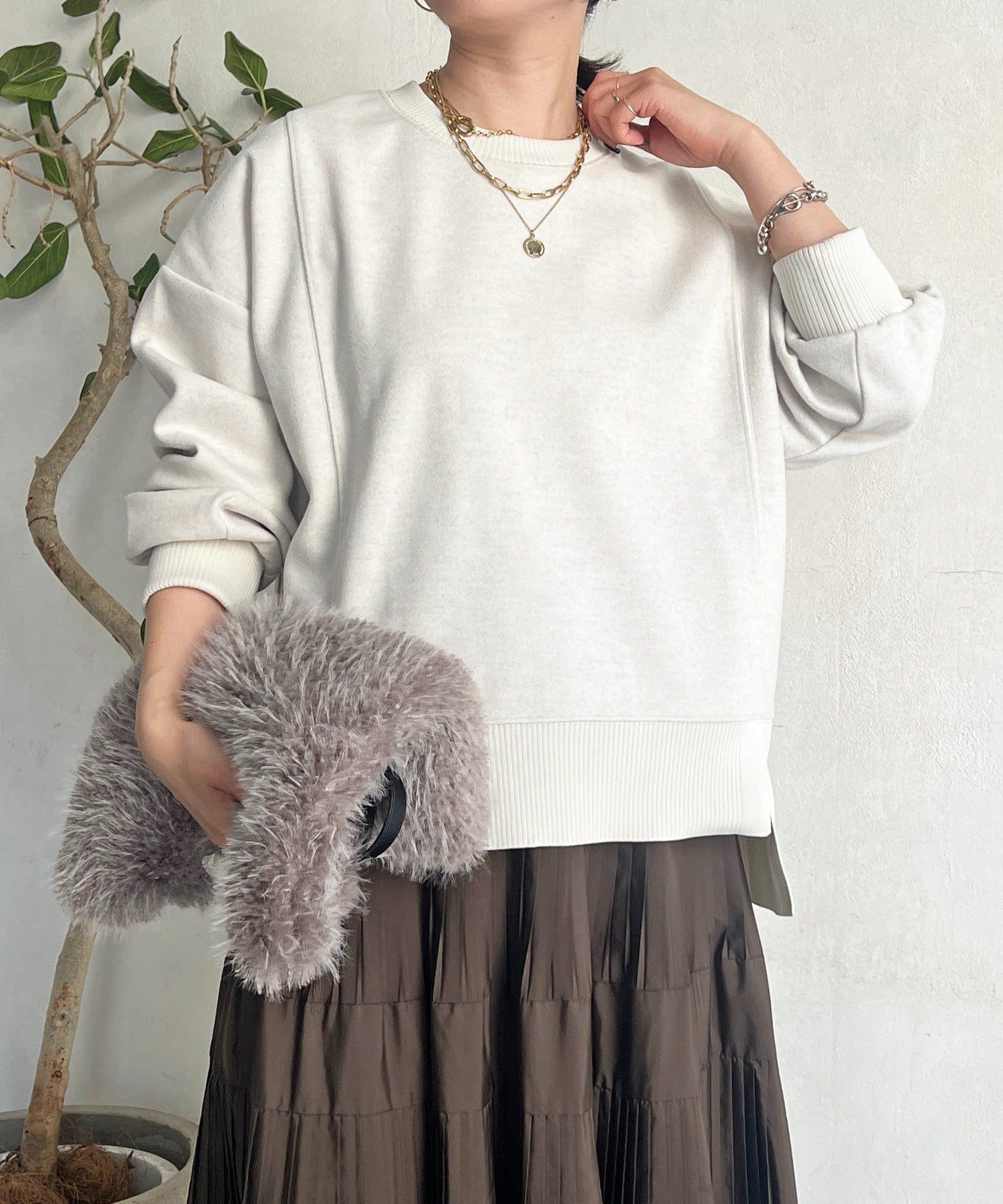 ほどよいゆるさで抜け感のあるスタイリングに仕上げてくれる起毛プルオーバー