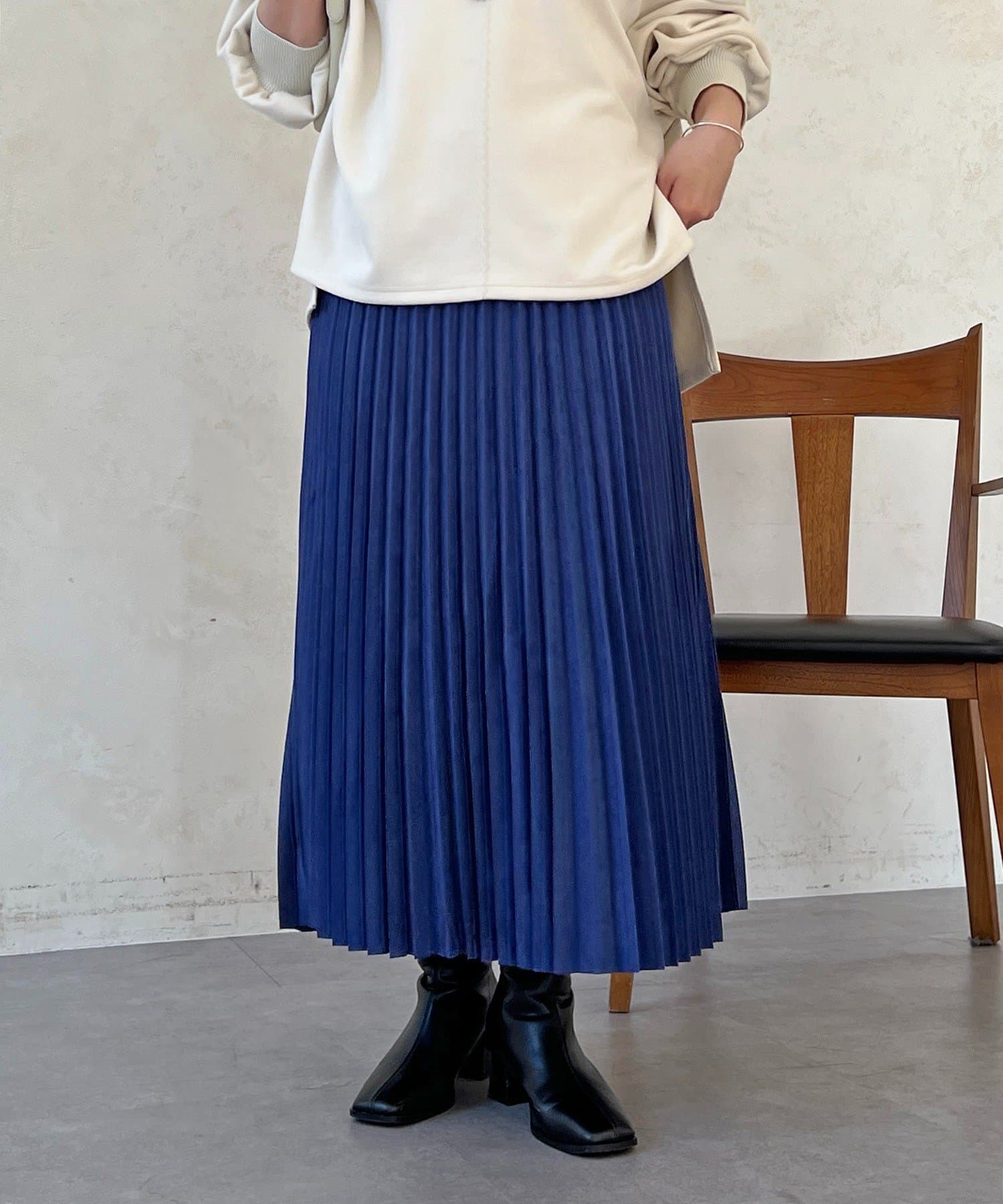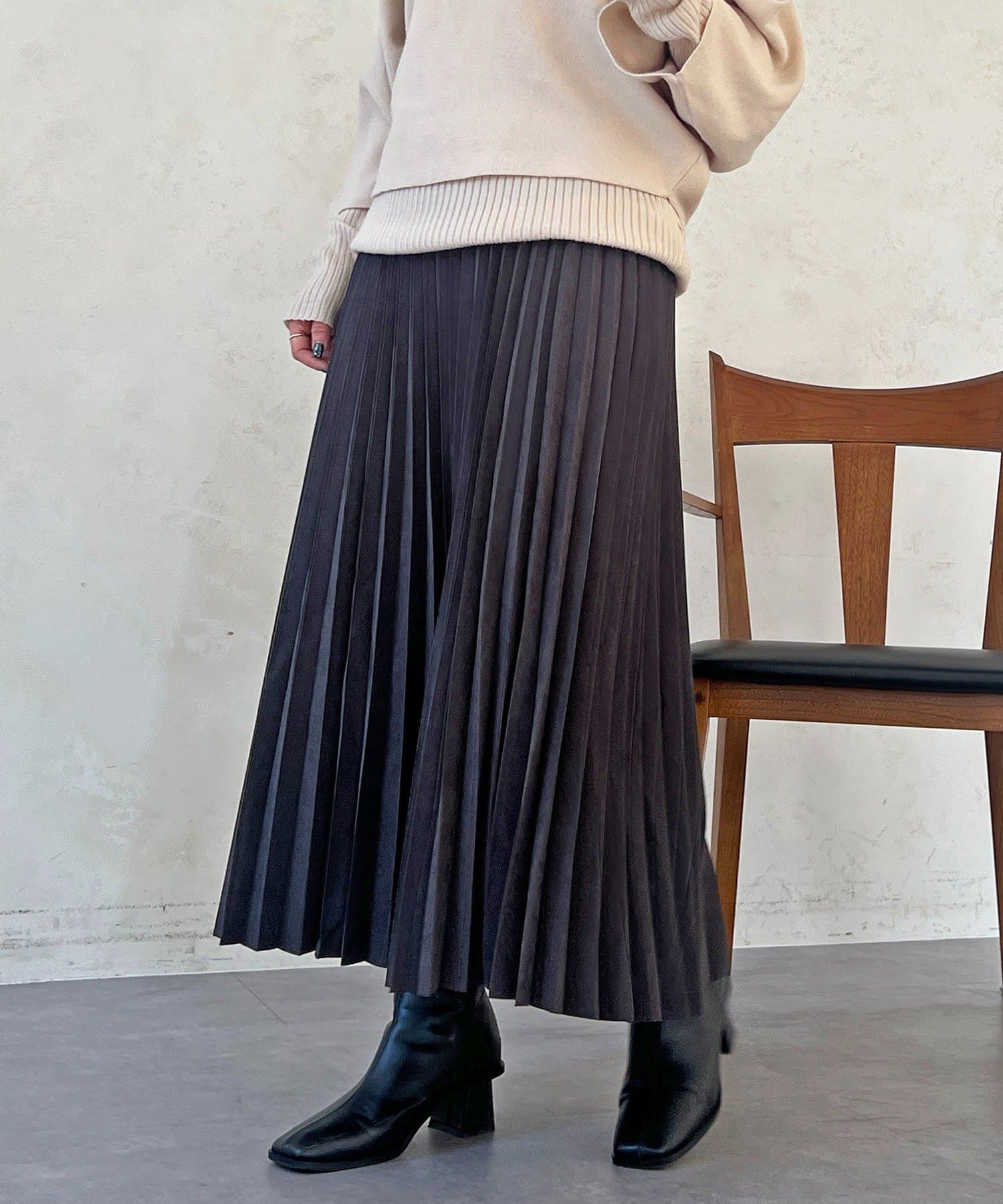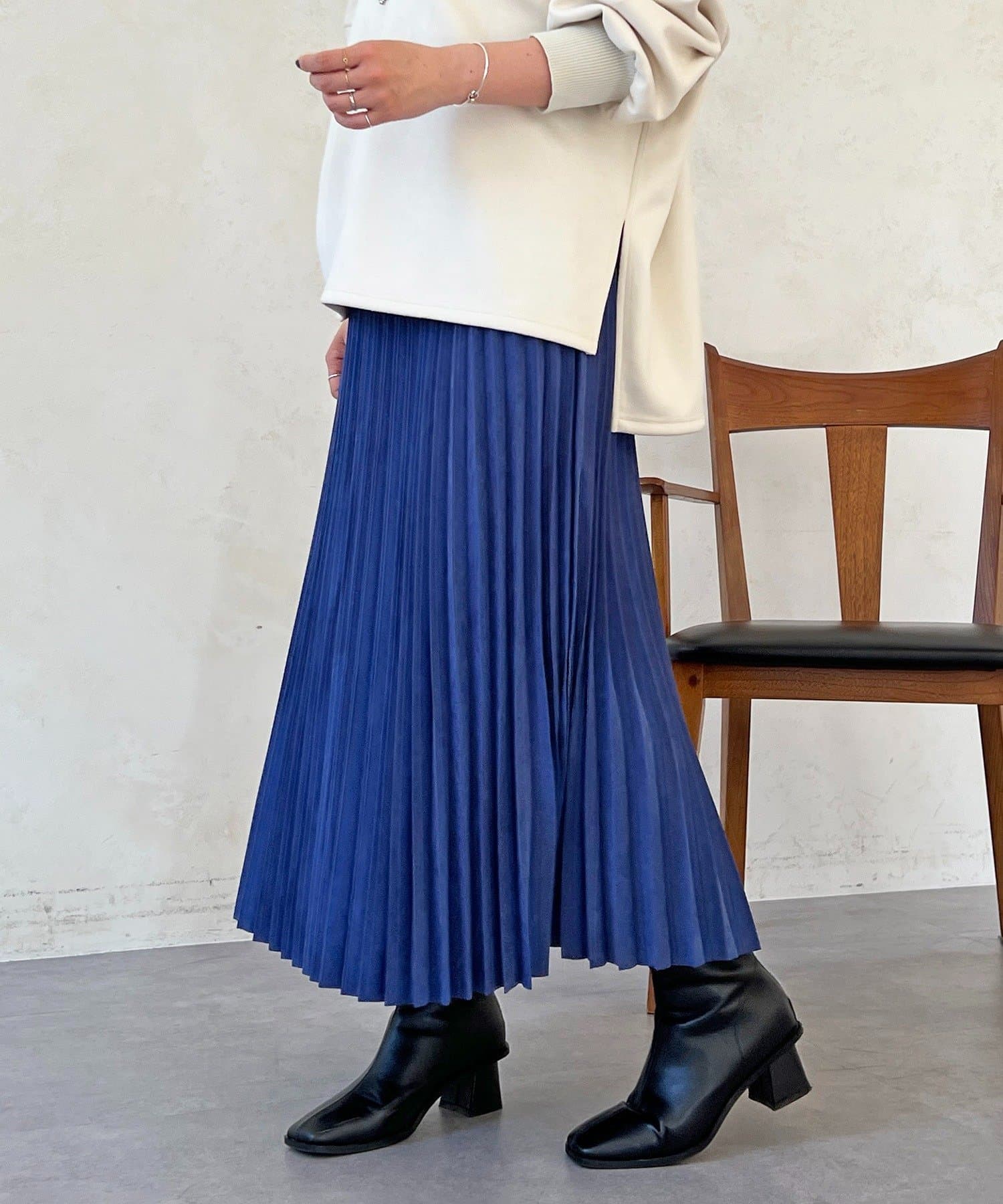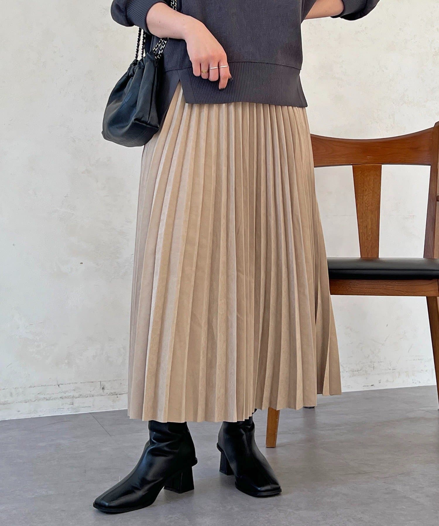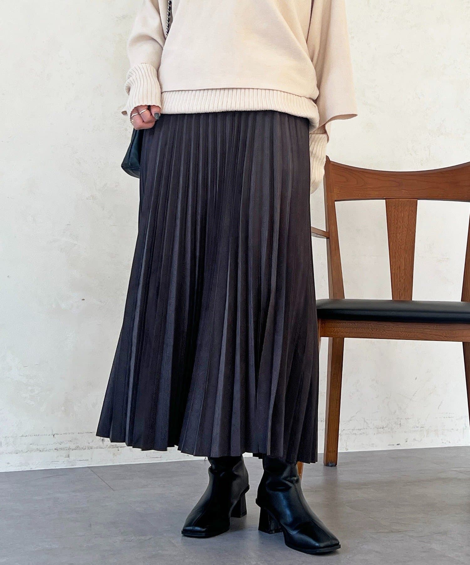 ・プリーツの縦ラインと落ち感がすっきり見えのスカート