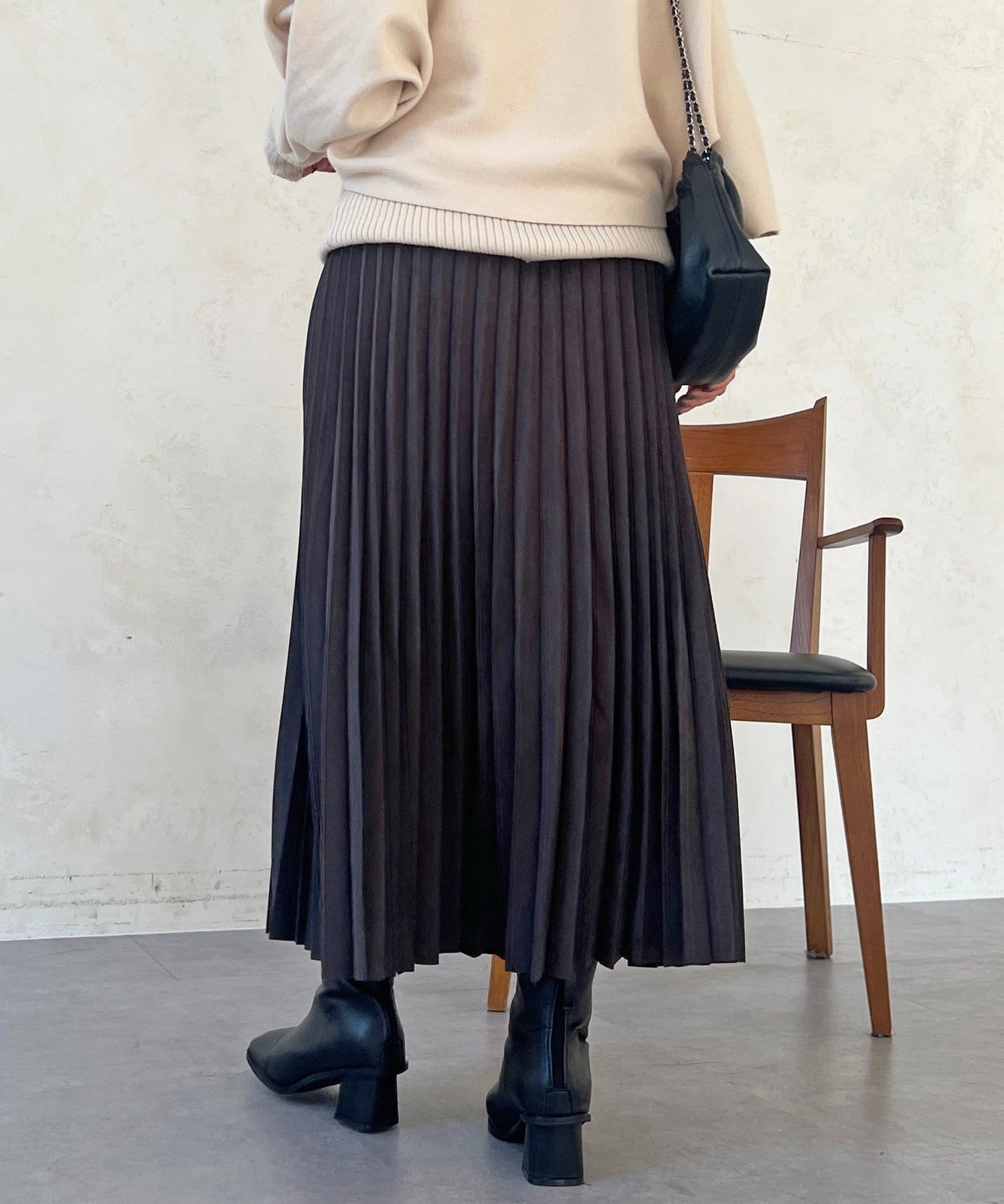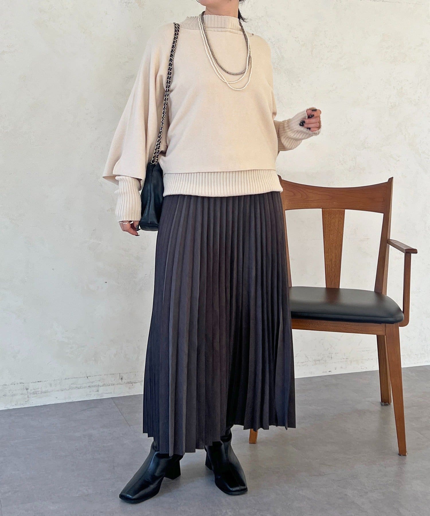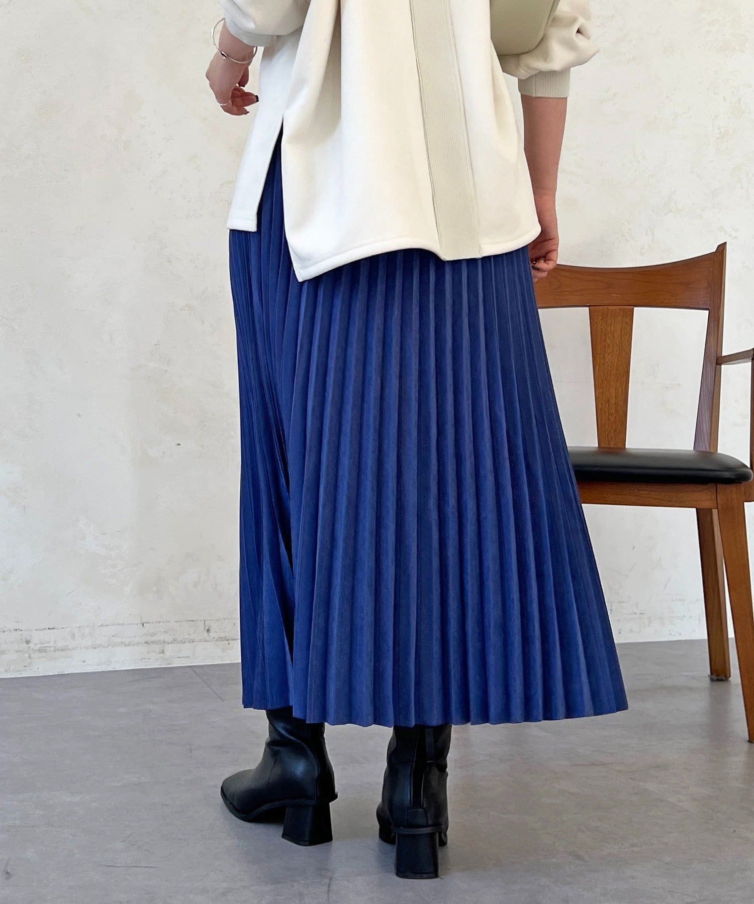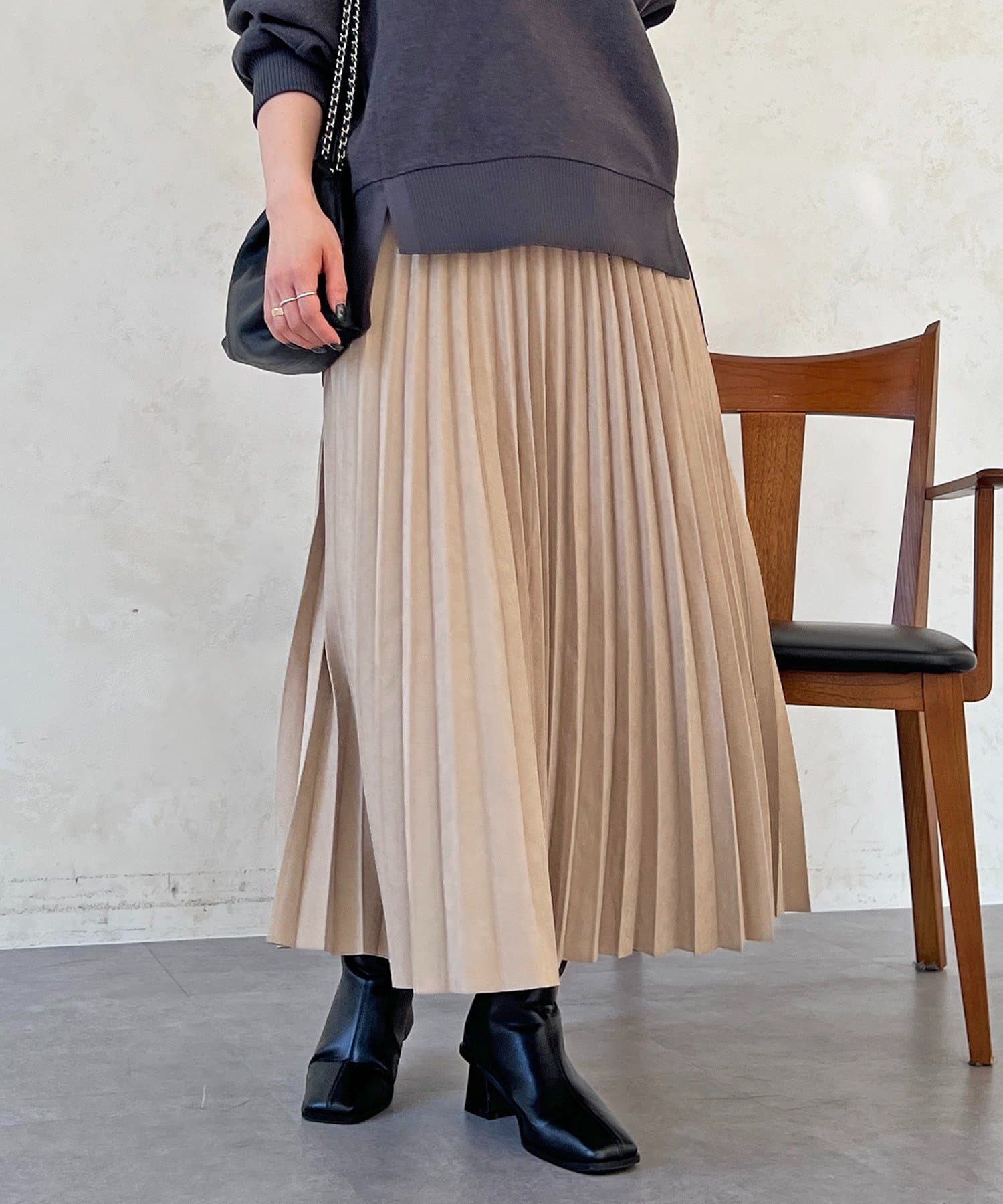・プリーツの縦ラインと落ち感がすっきり見えのスカート