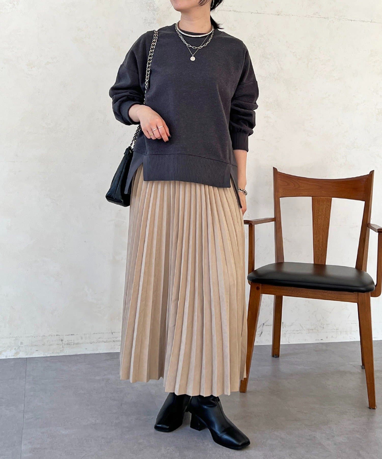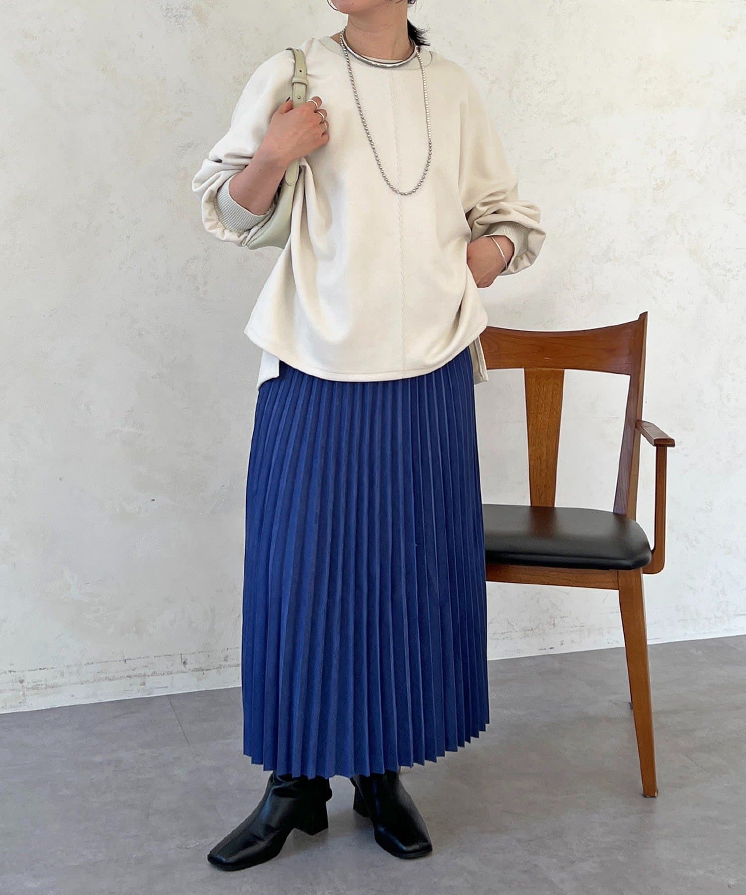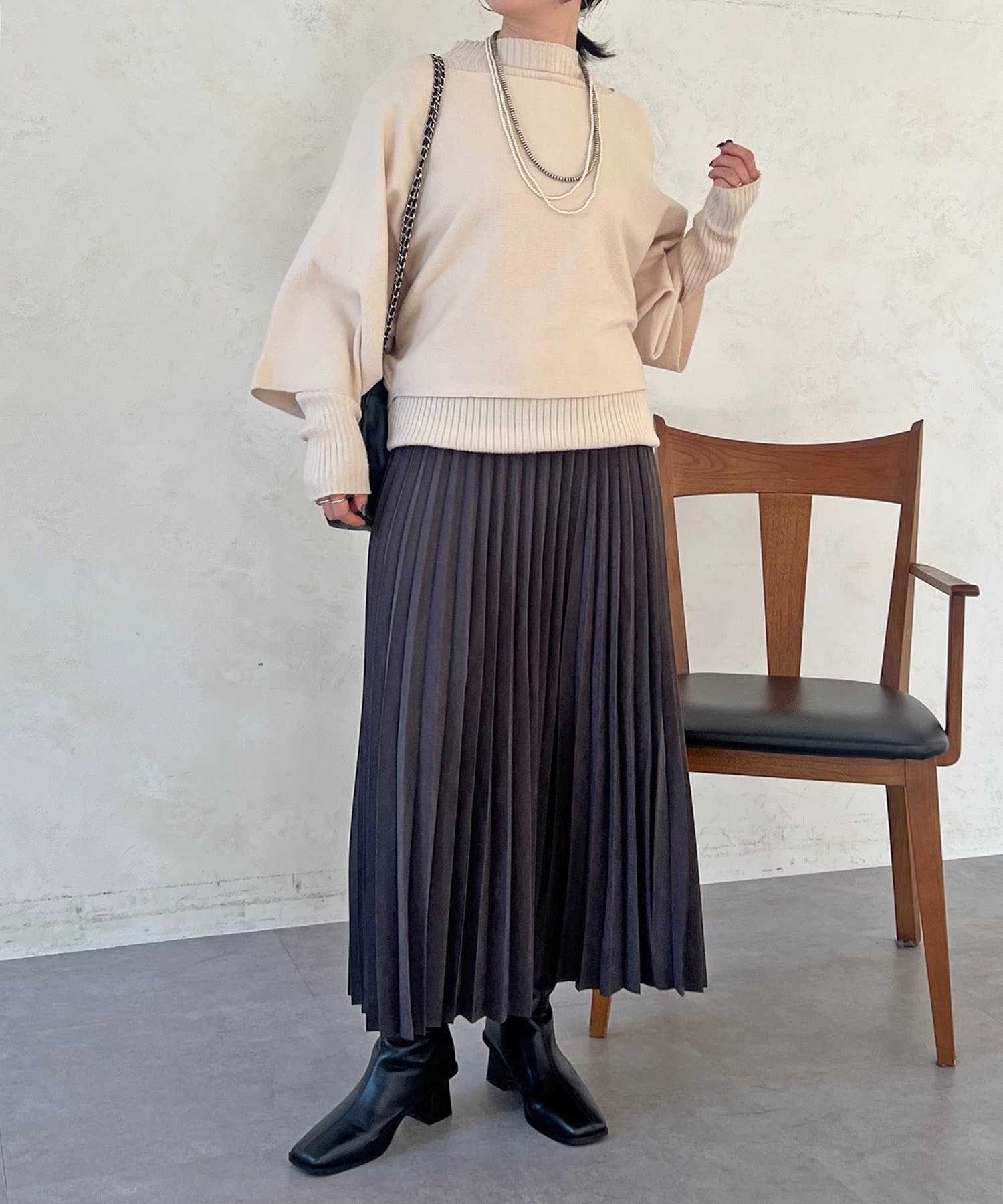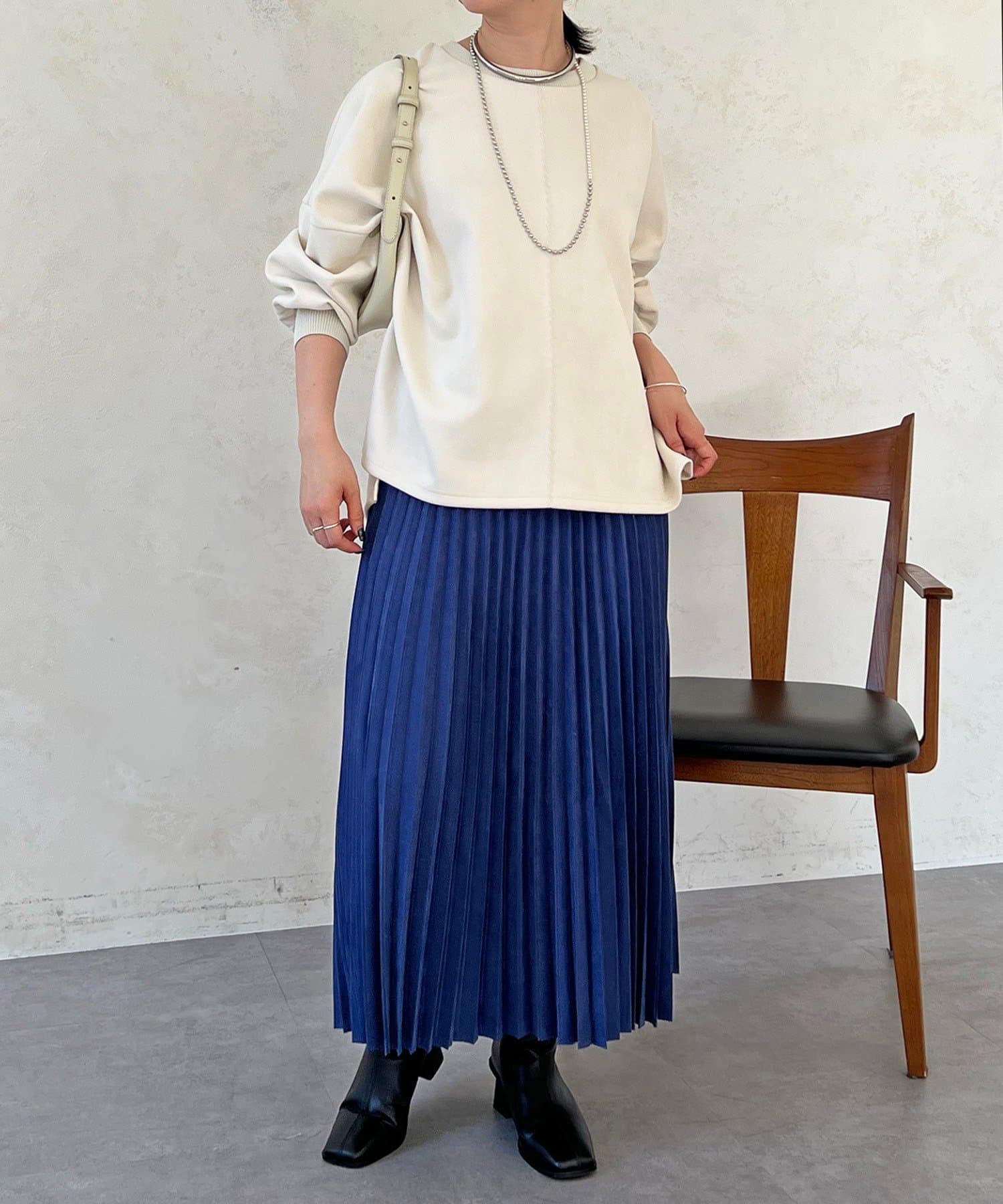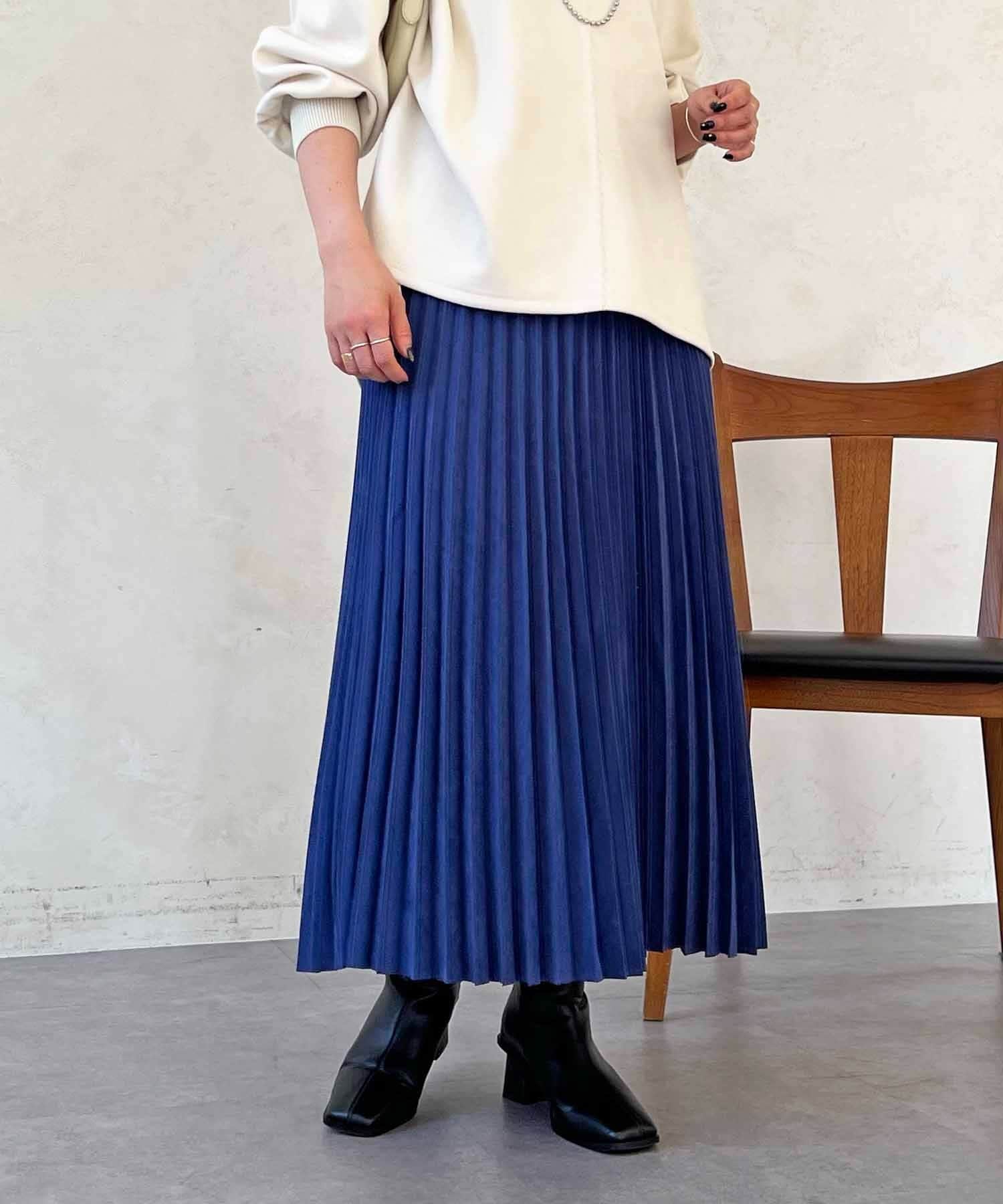 ・プリーツの縦ラインと落ち感がすっきり見えのスカート