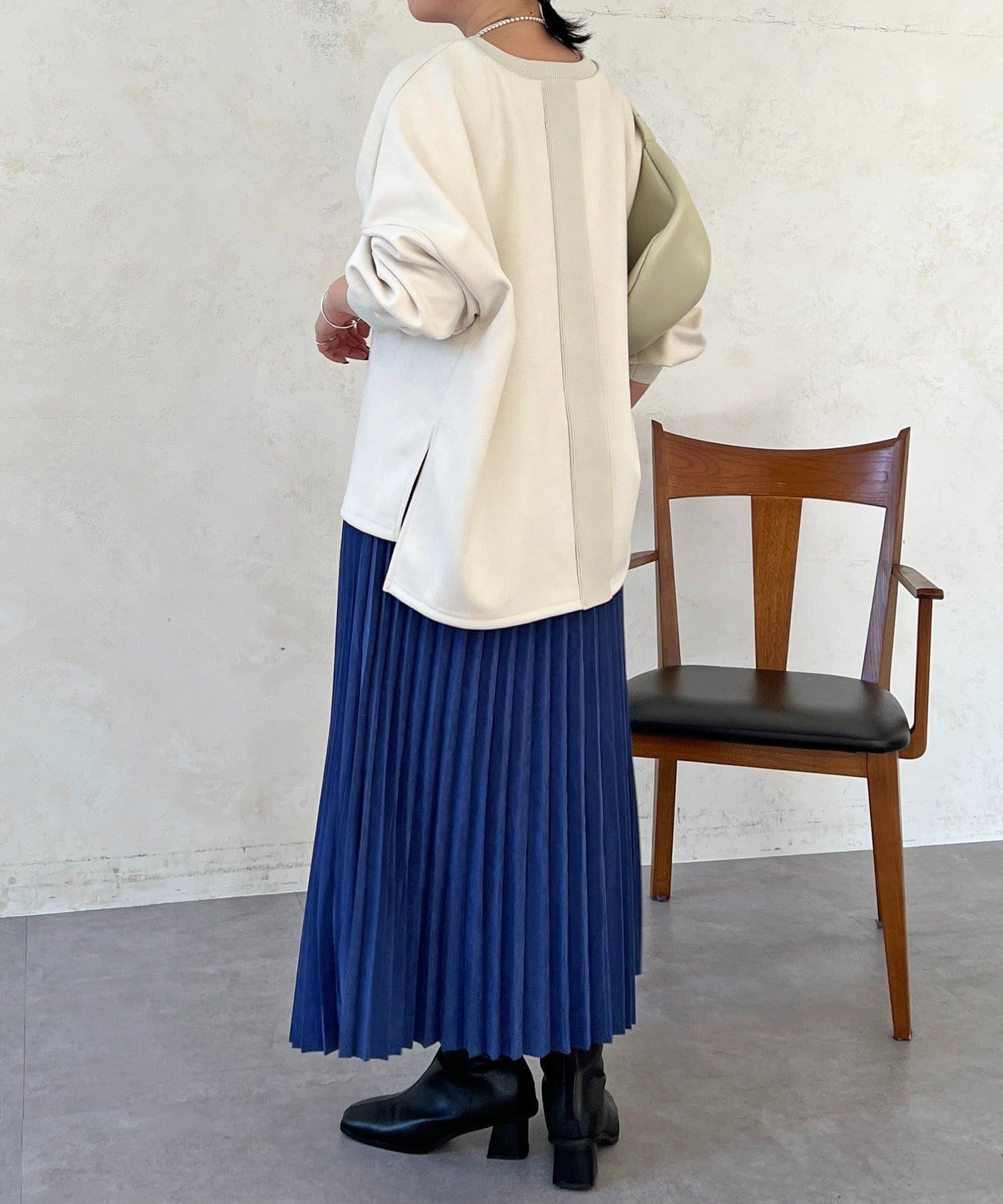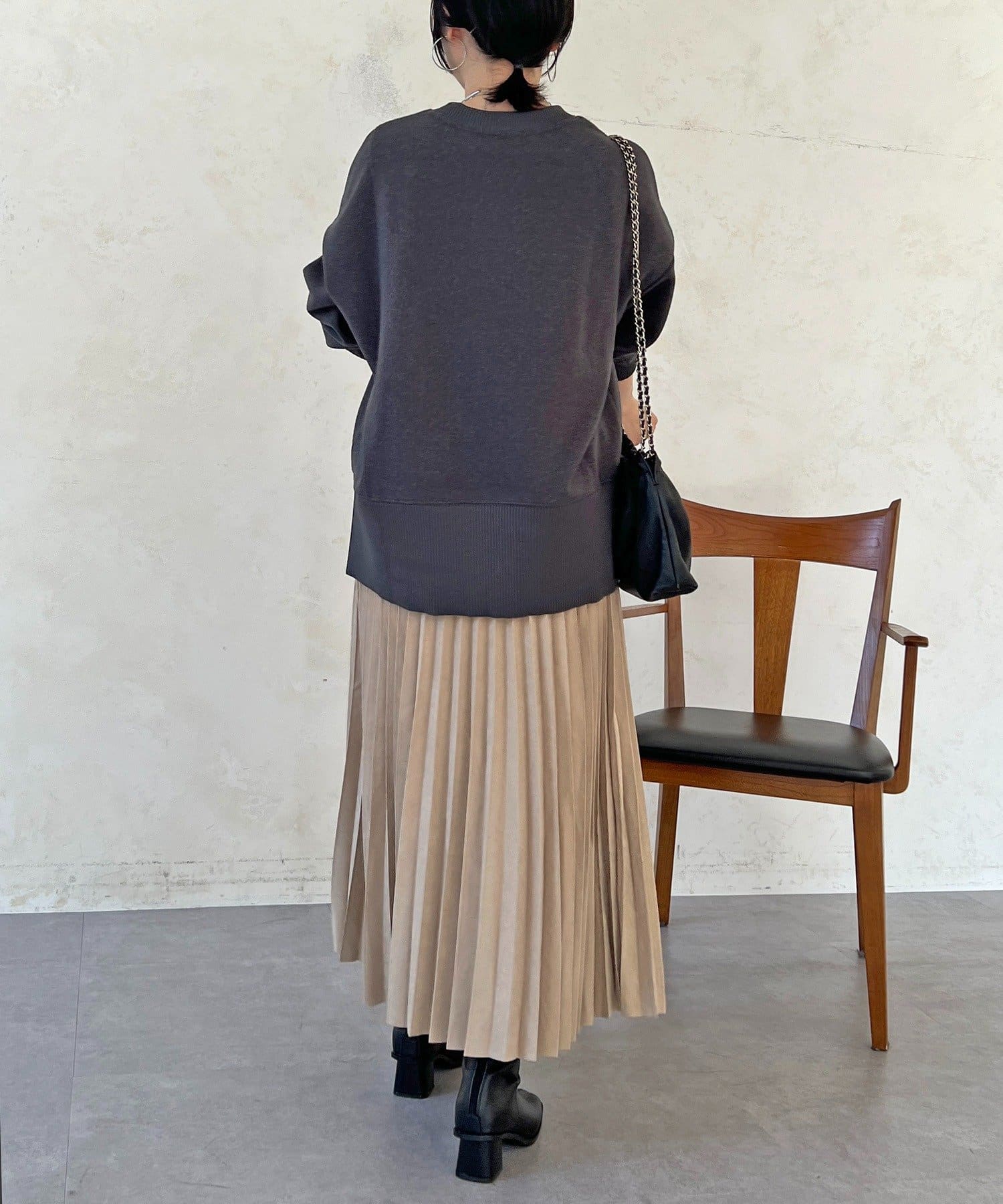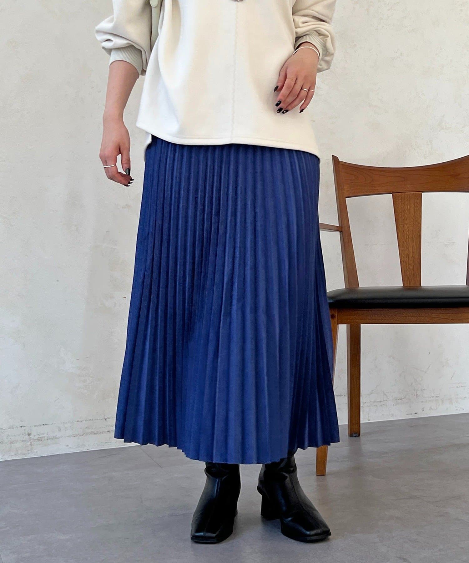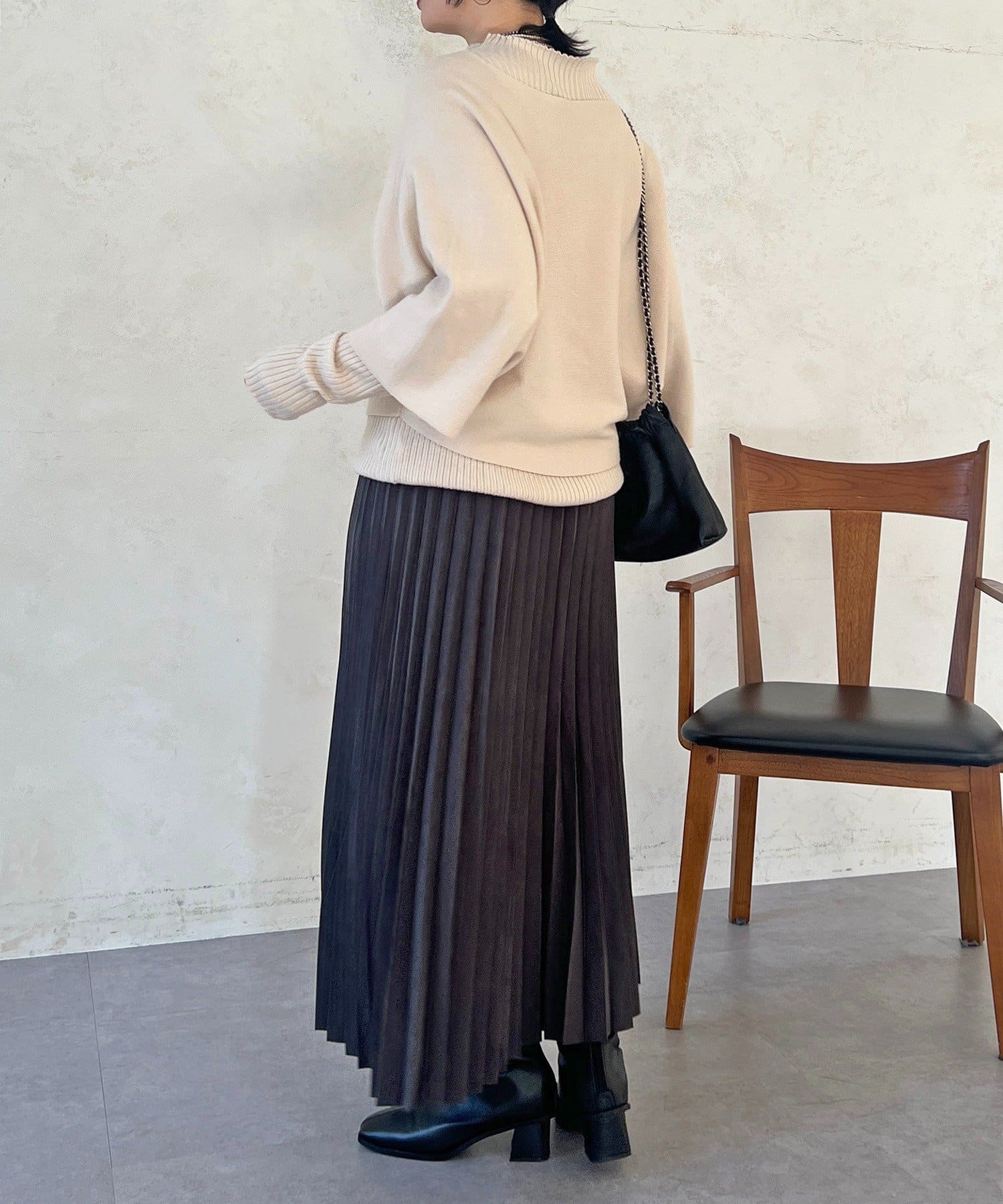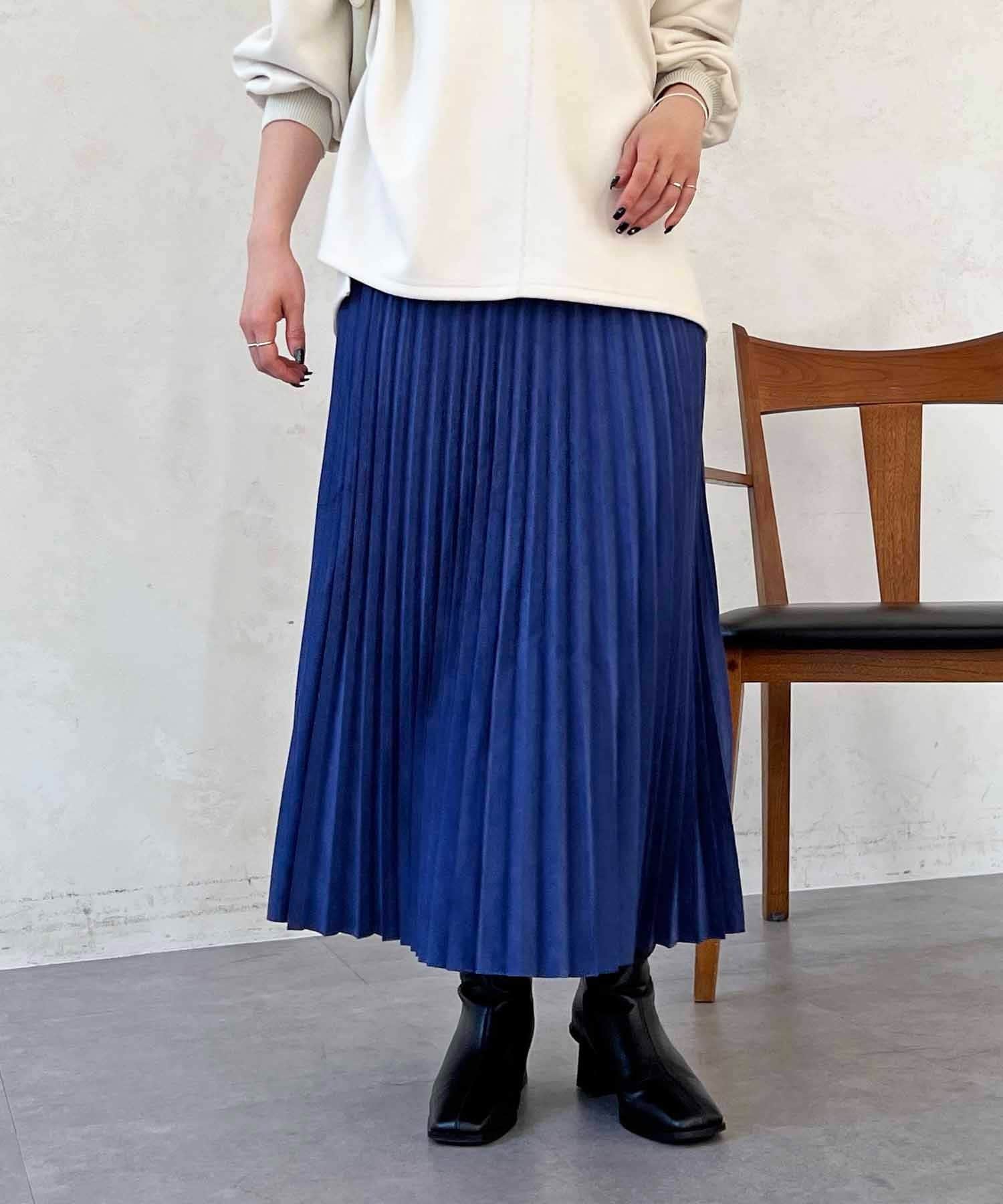 ・プリーツの縦ラインと落ち感がすっきり見えのスカート