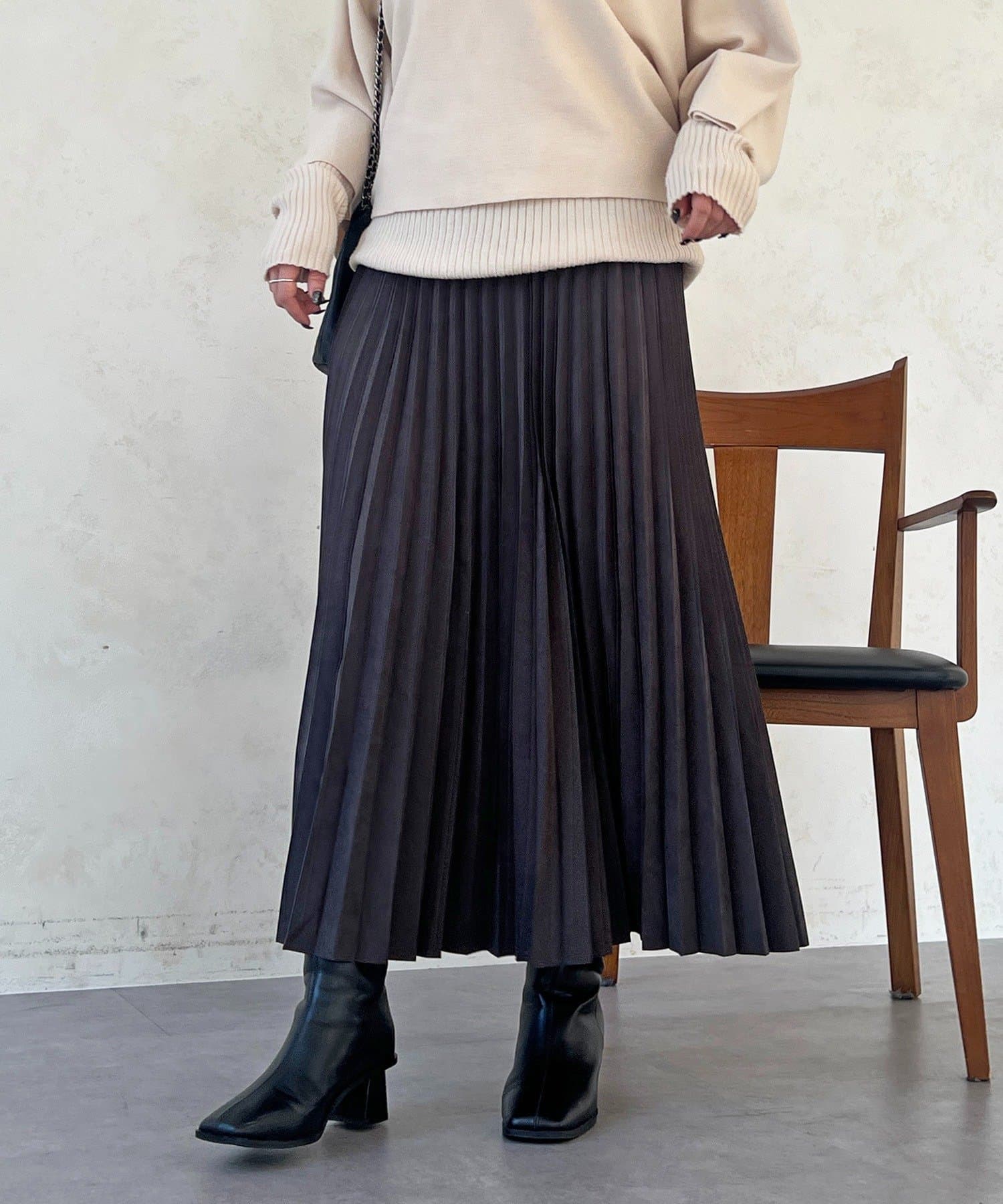 細かいプリーツが大人キレイな秋冬素材のスカート