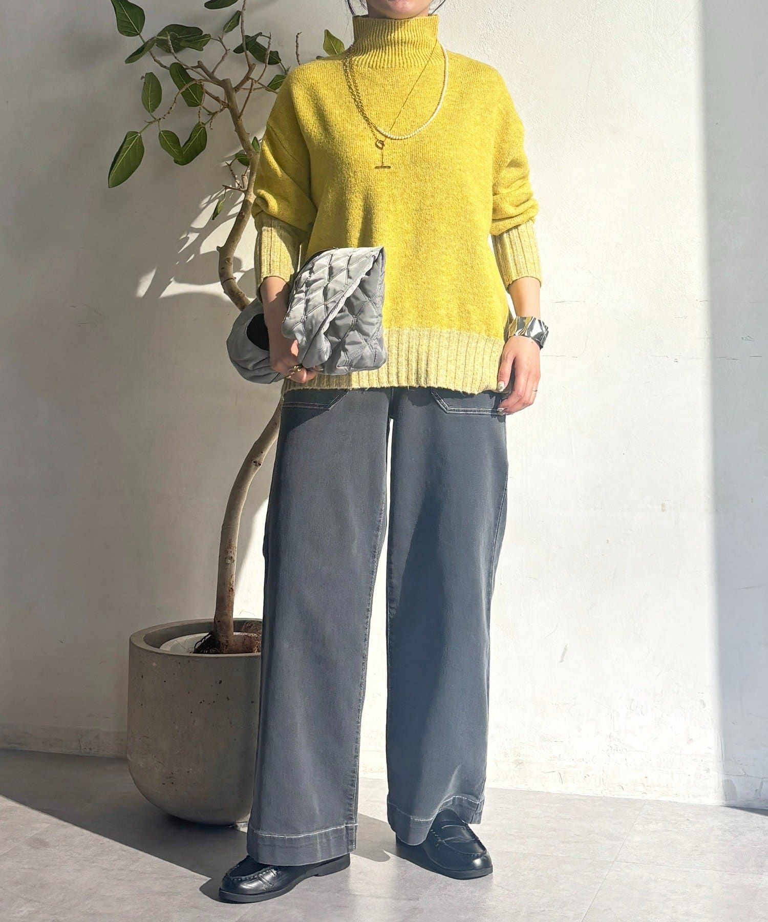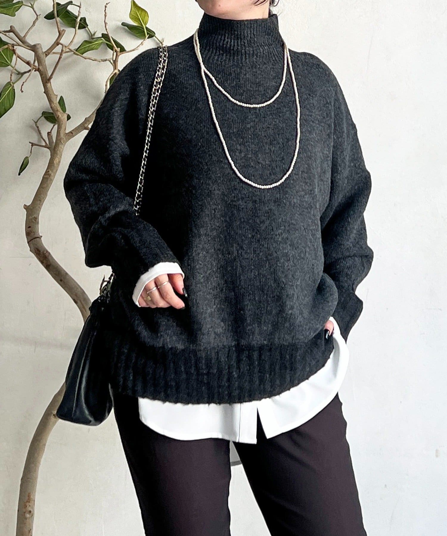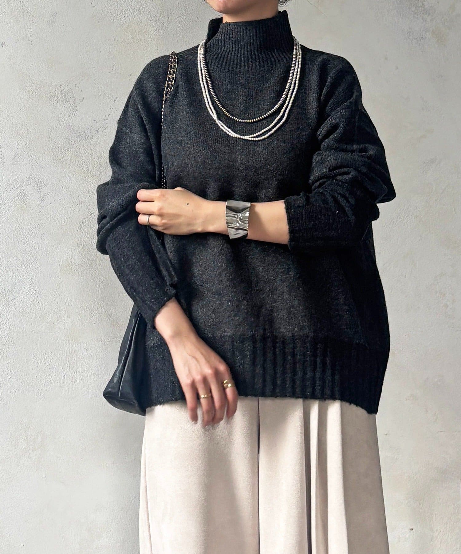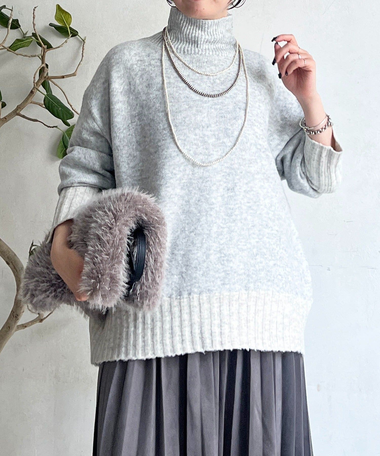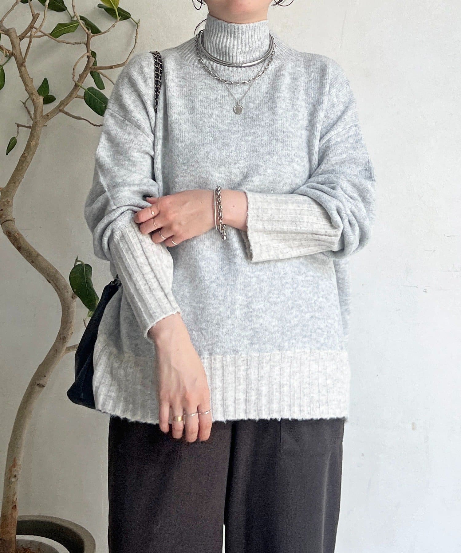 ゆったりした着心地と配色切替がさりげないオシャレな冬の本命ニット