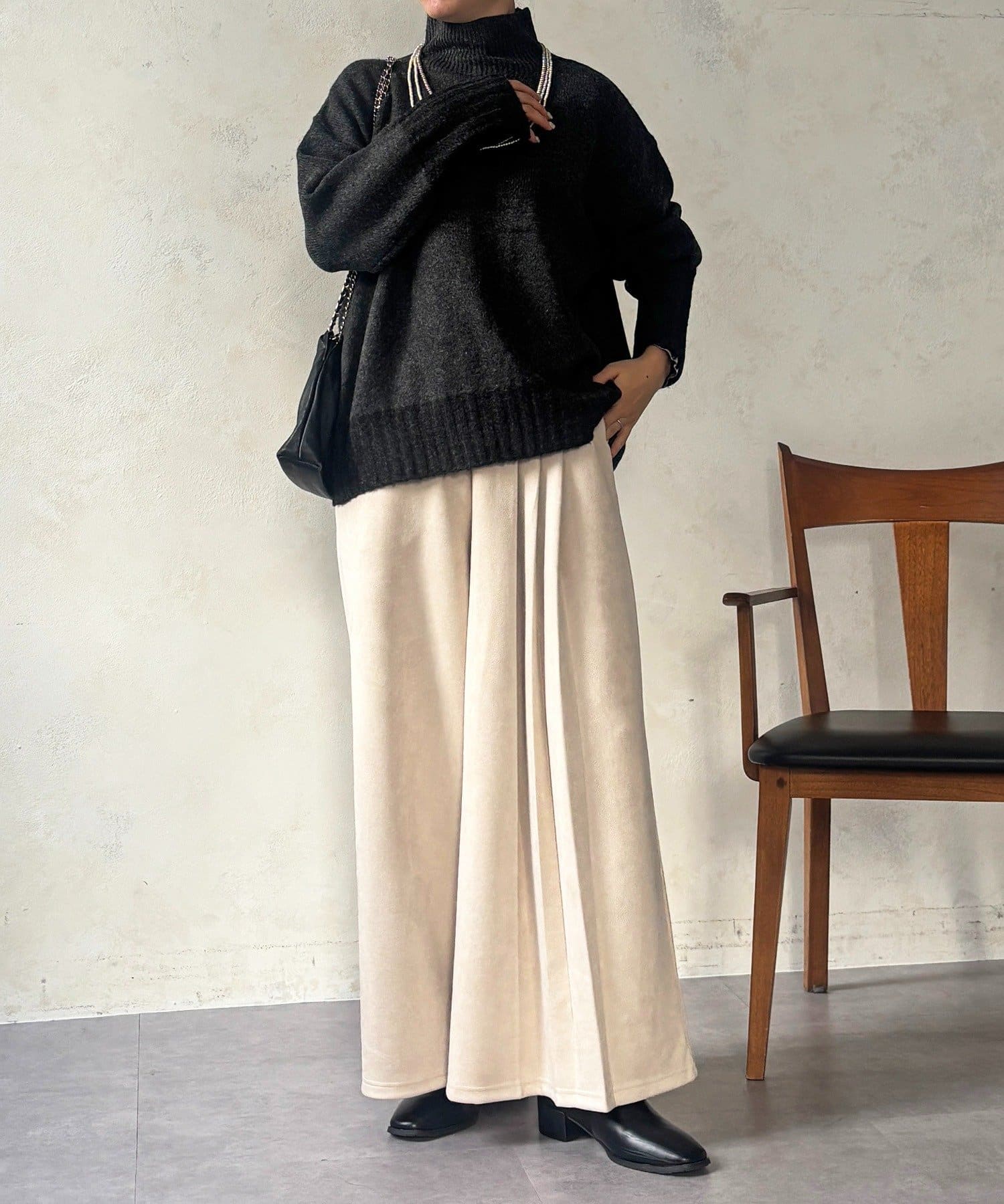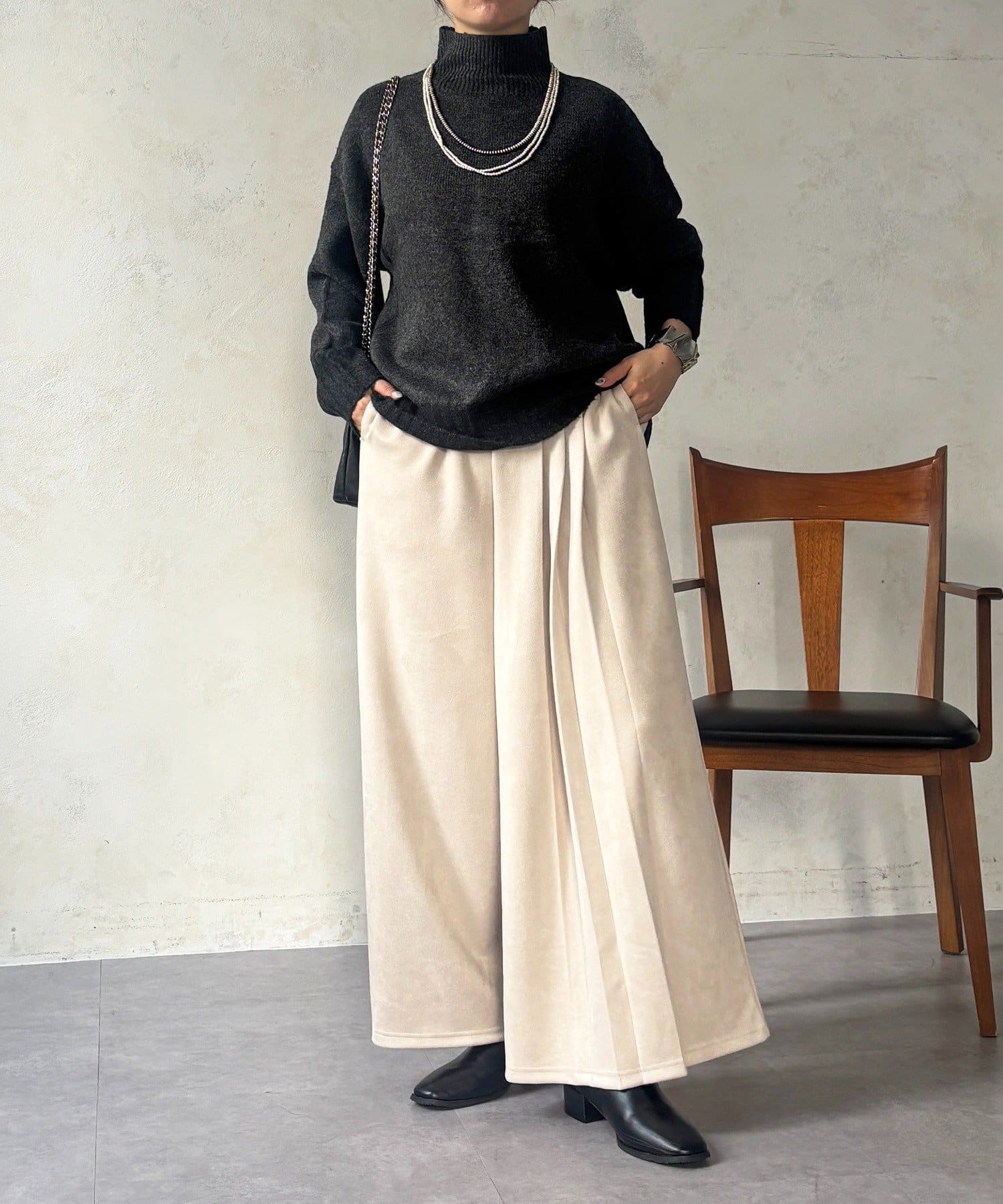 ・ストレッチ糸が入ったニットは伸縮性抜群でゆったりした着心地も◎