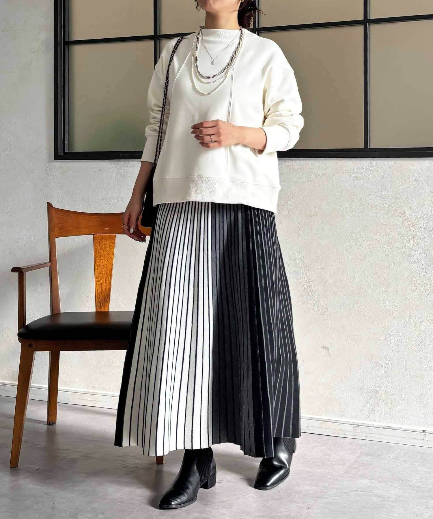 ・シンプルなのでボトムやアウターを選ばず、着回し力抜群
