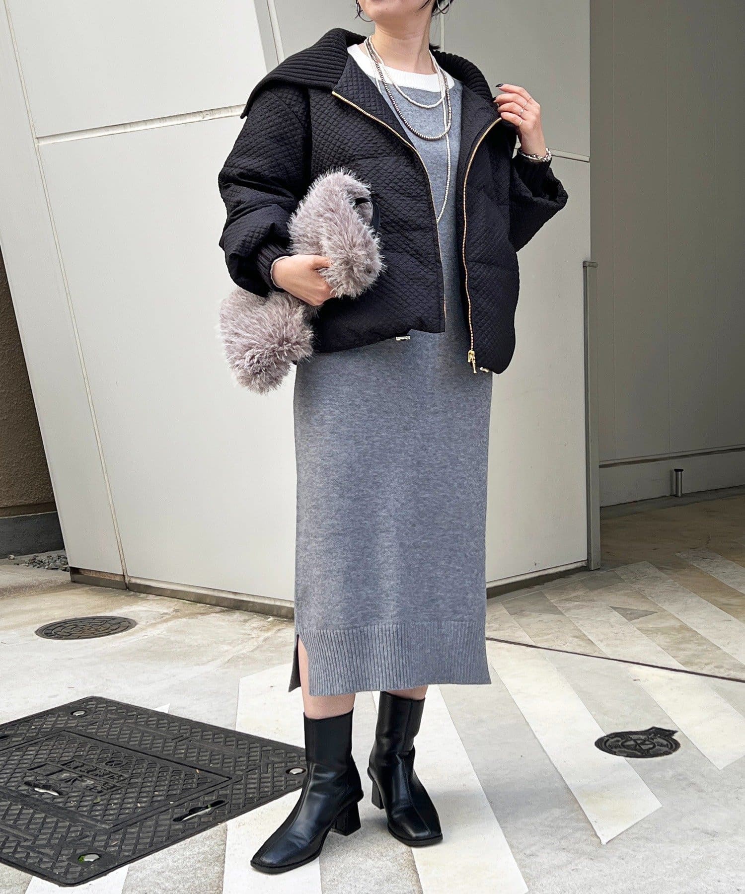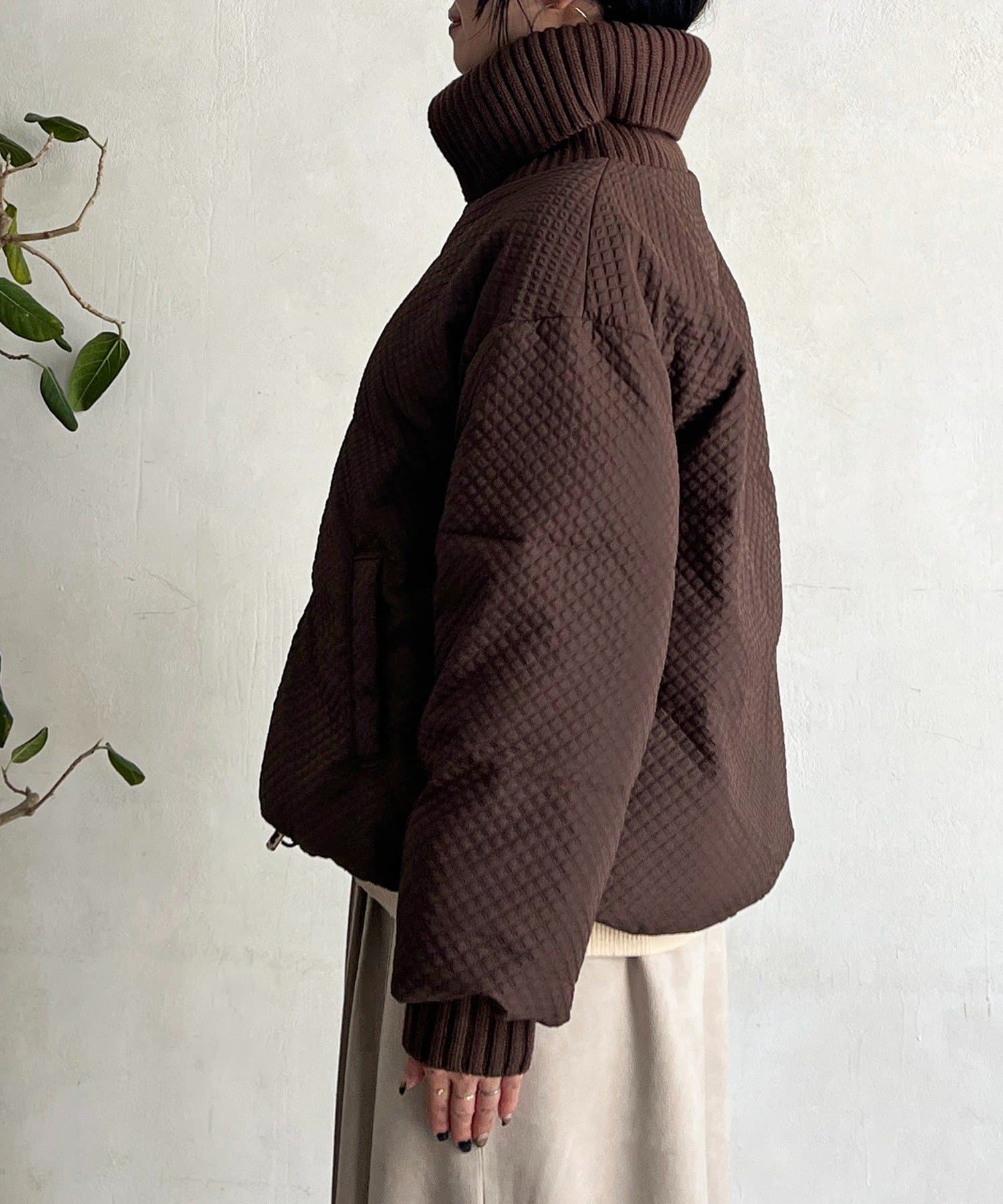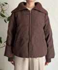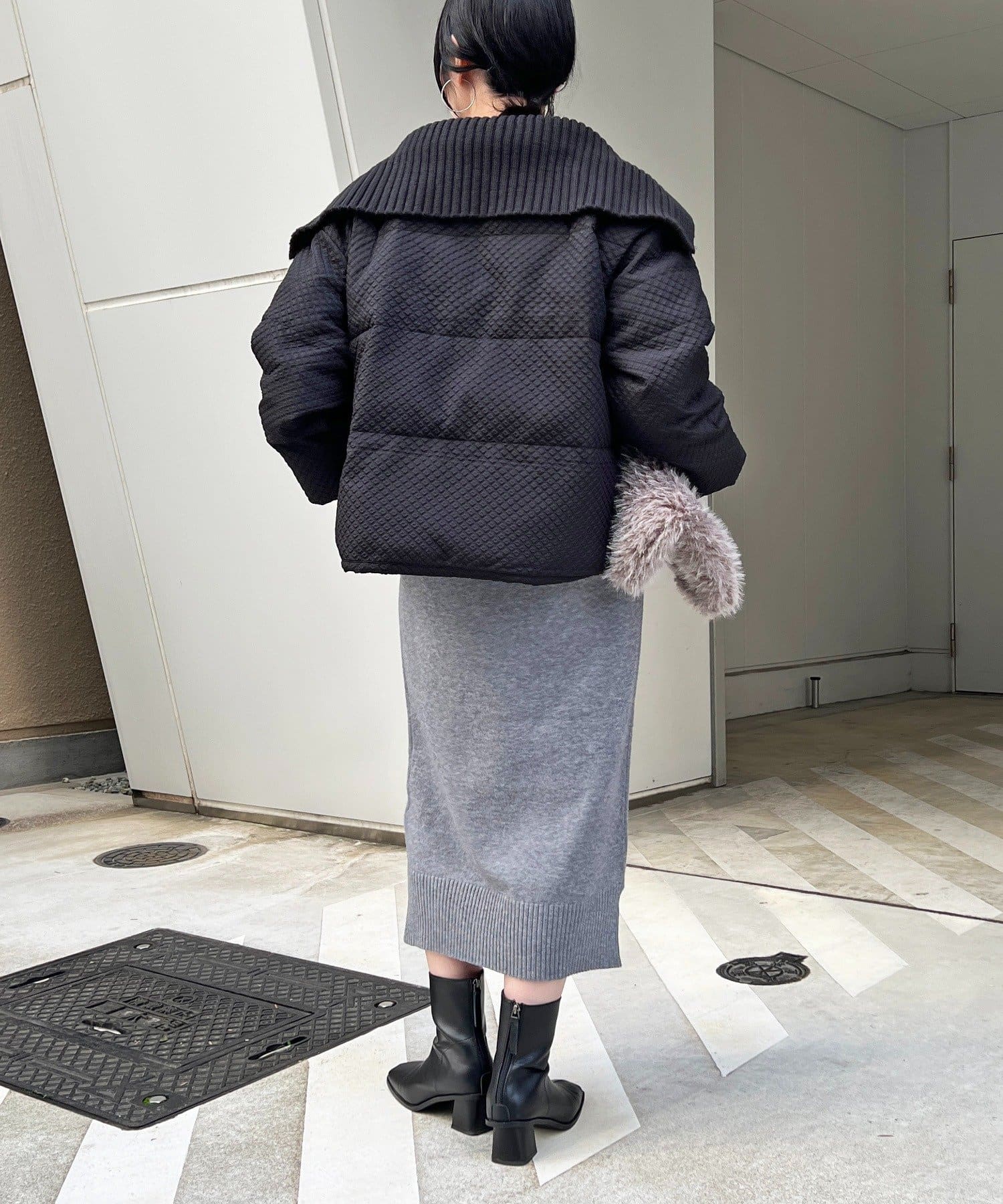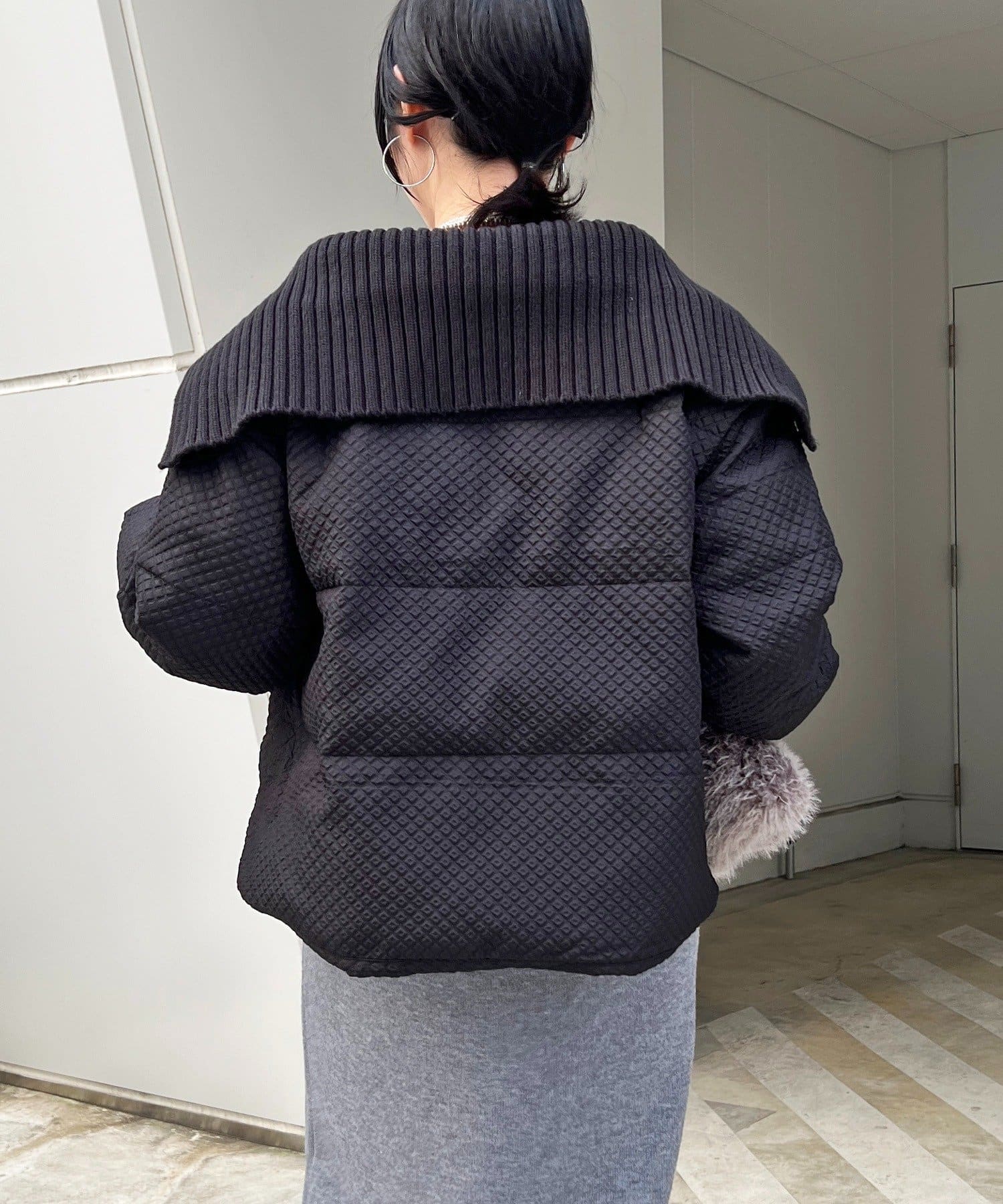 凹凸感のある素材感と2WAY仕様の襟で大人可愛く防寒できるダウン