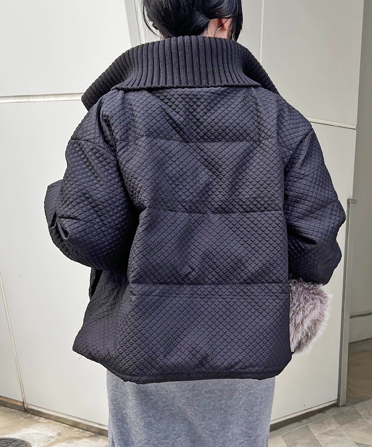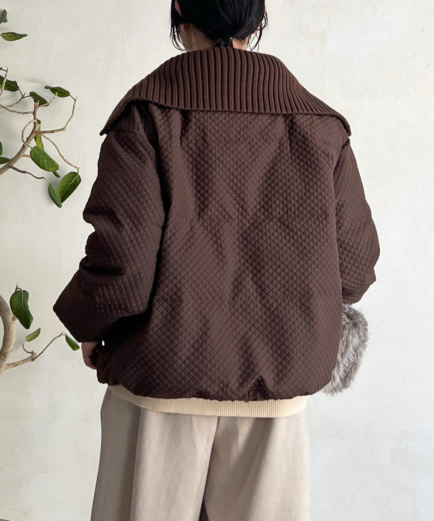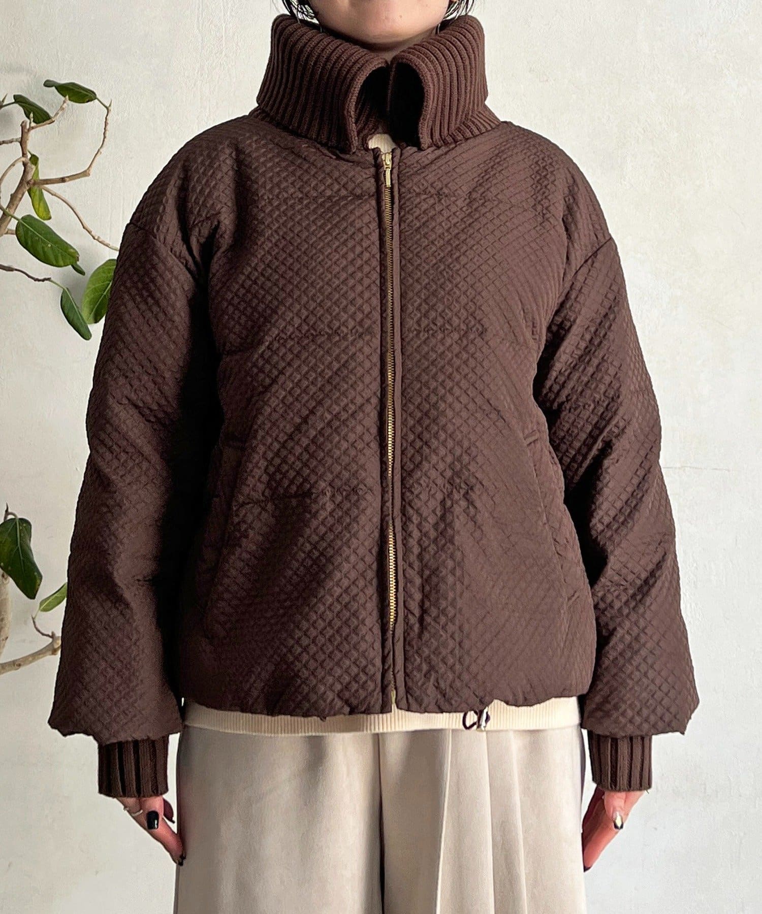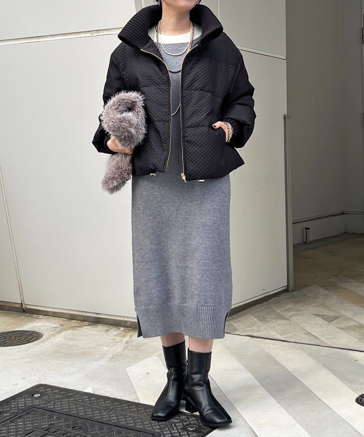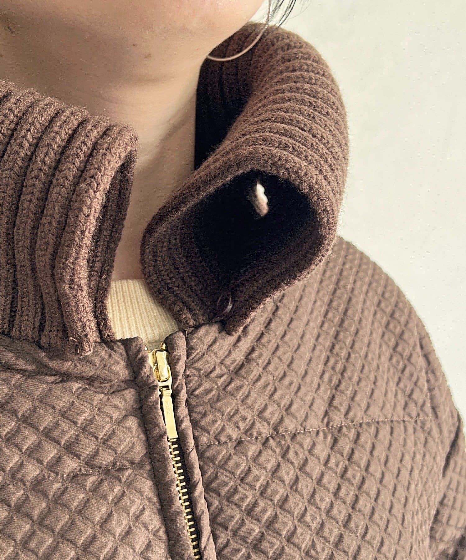 凹凸感のある素材感と2WAY仕様の襟で大人可愛く防寒できるダウン
