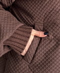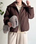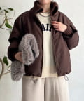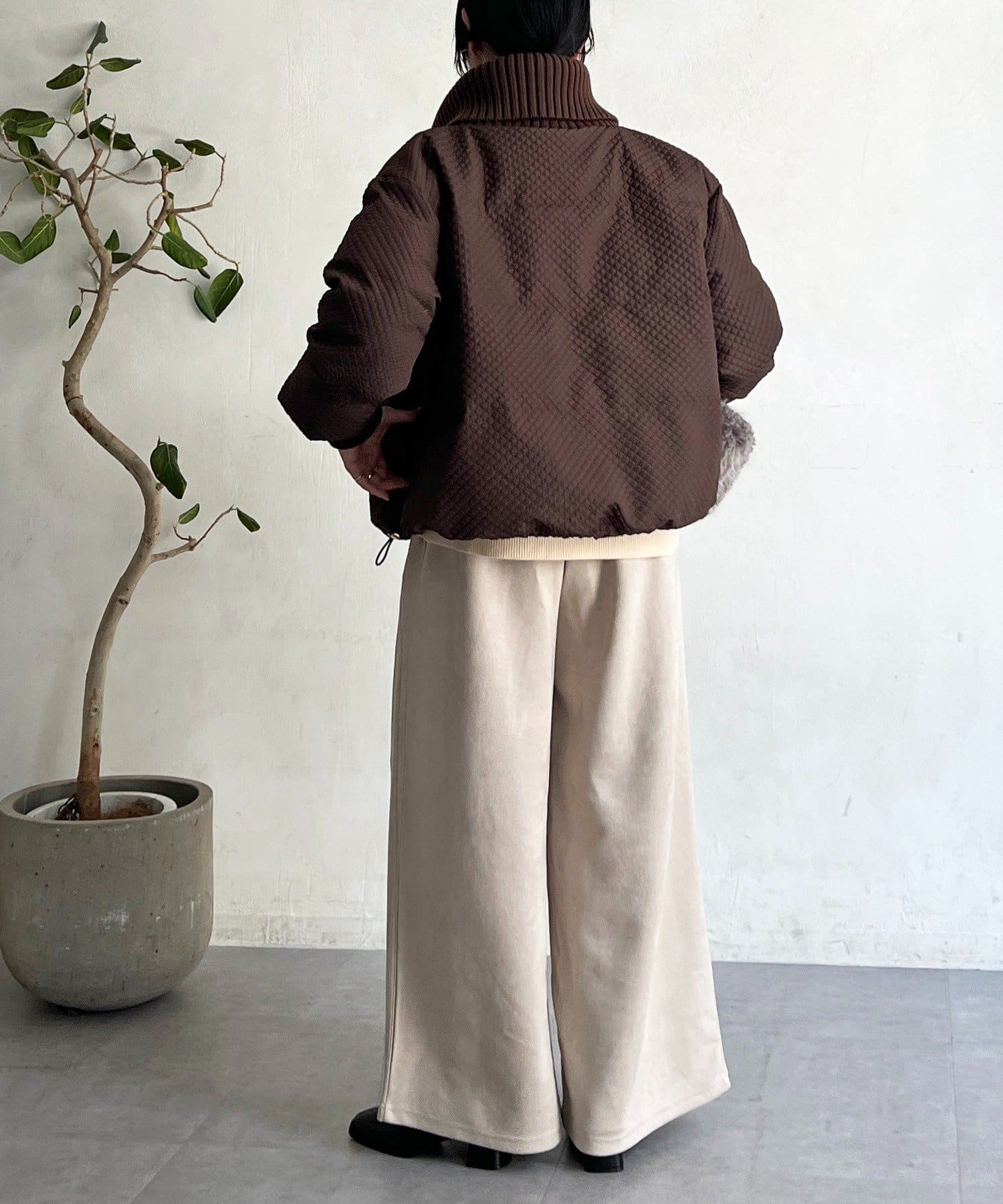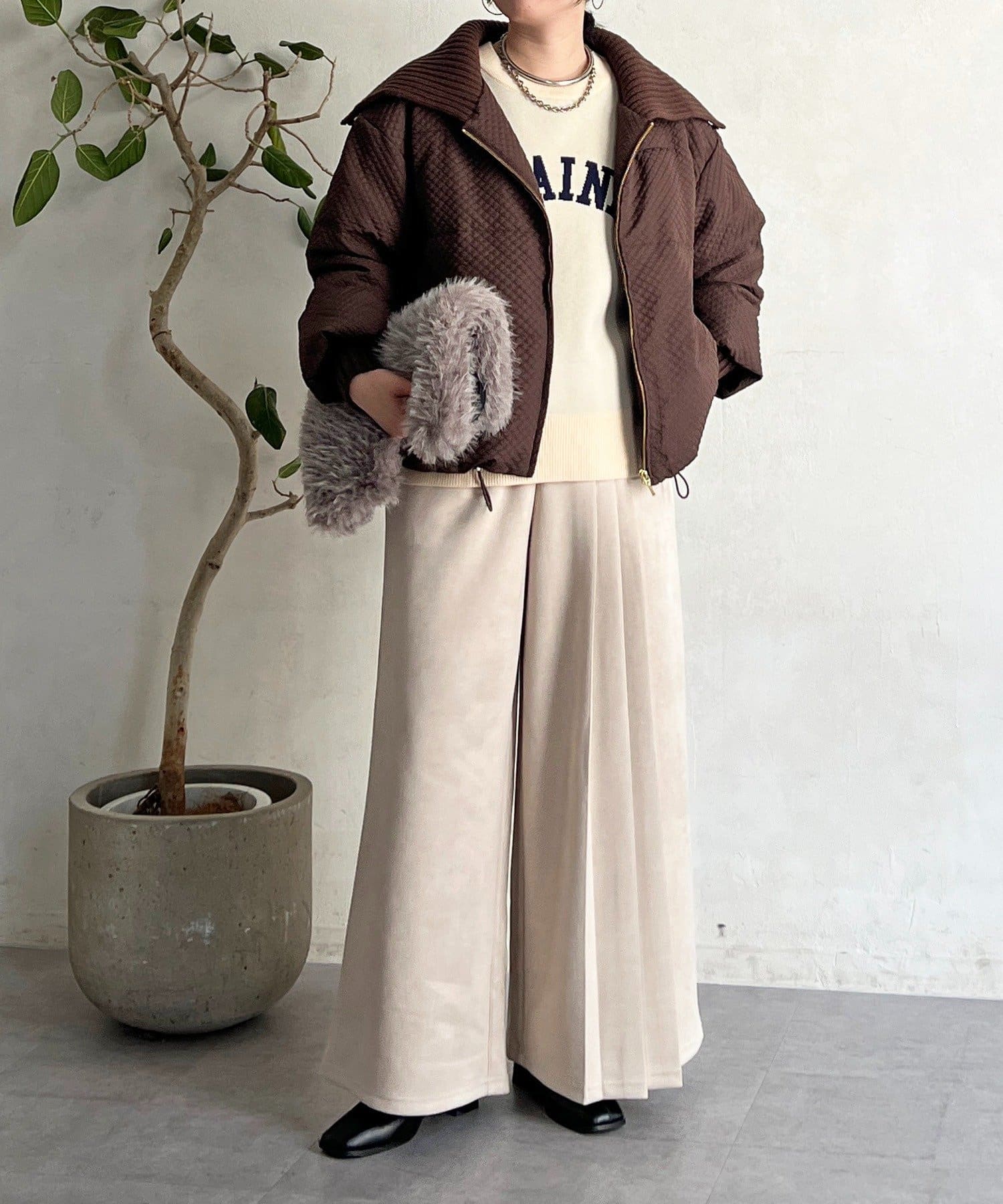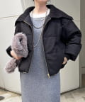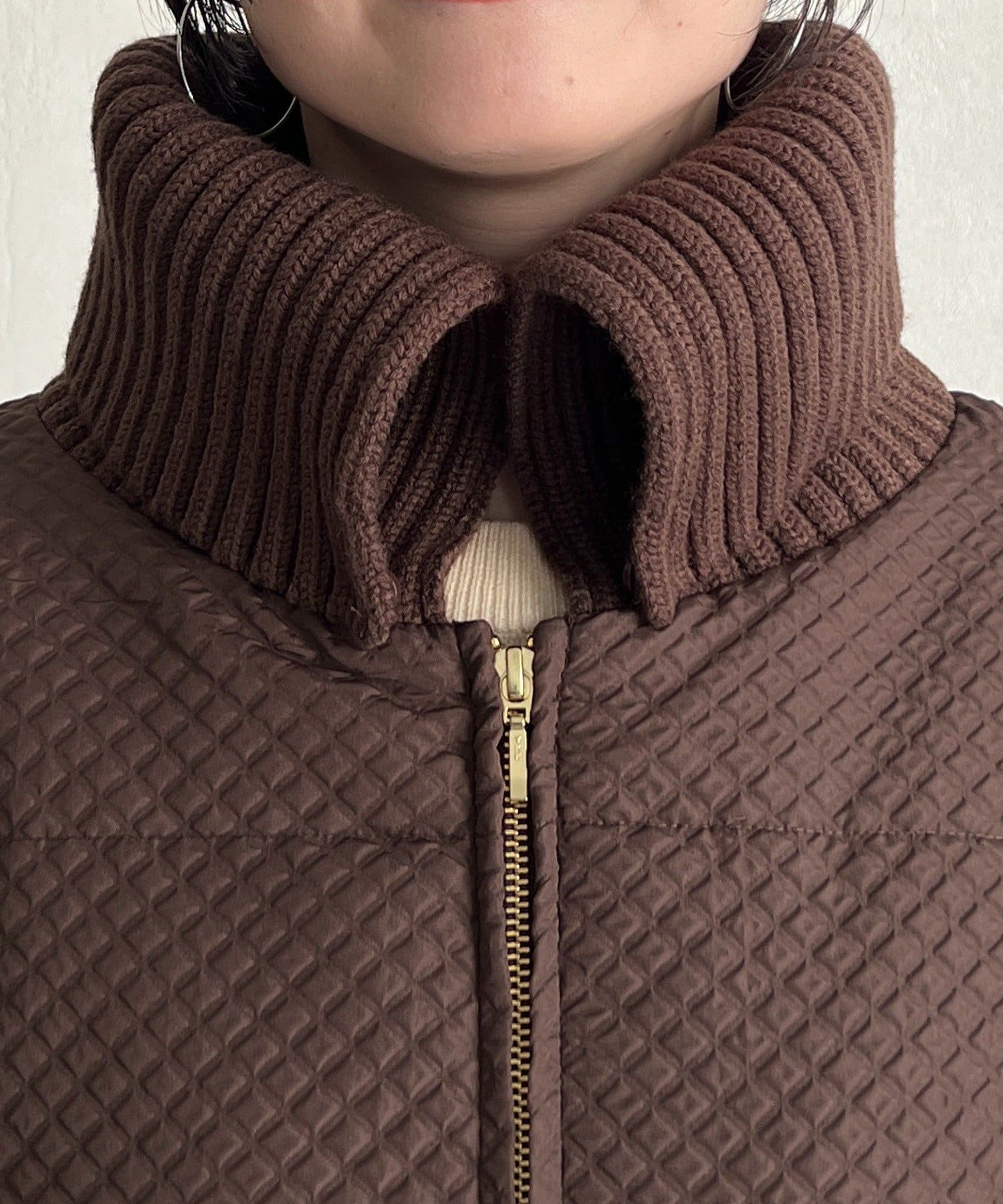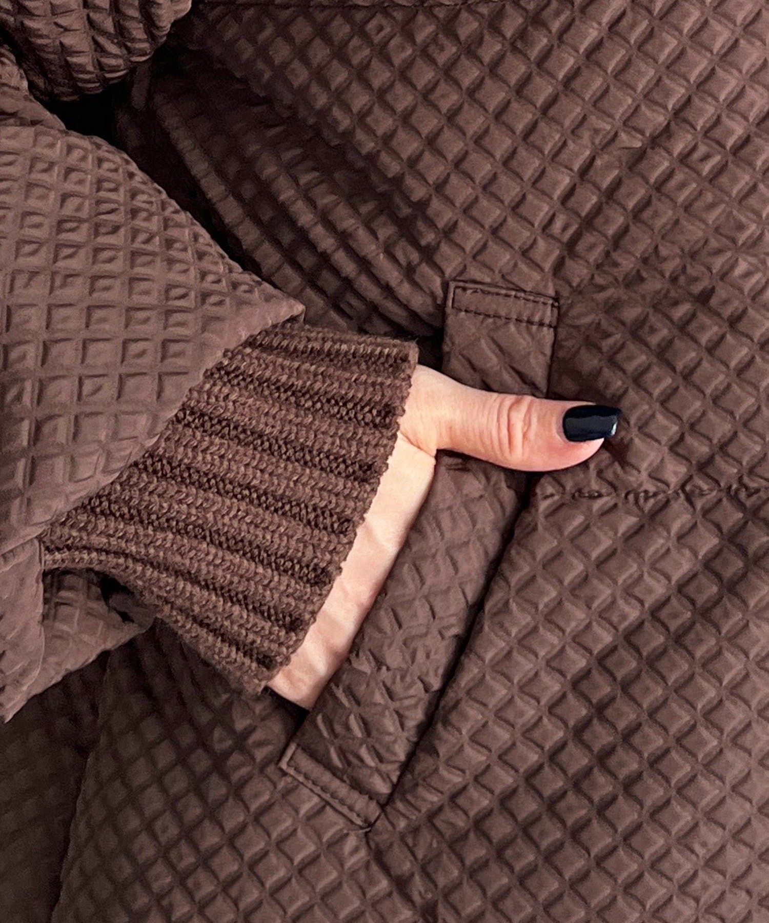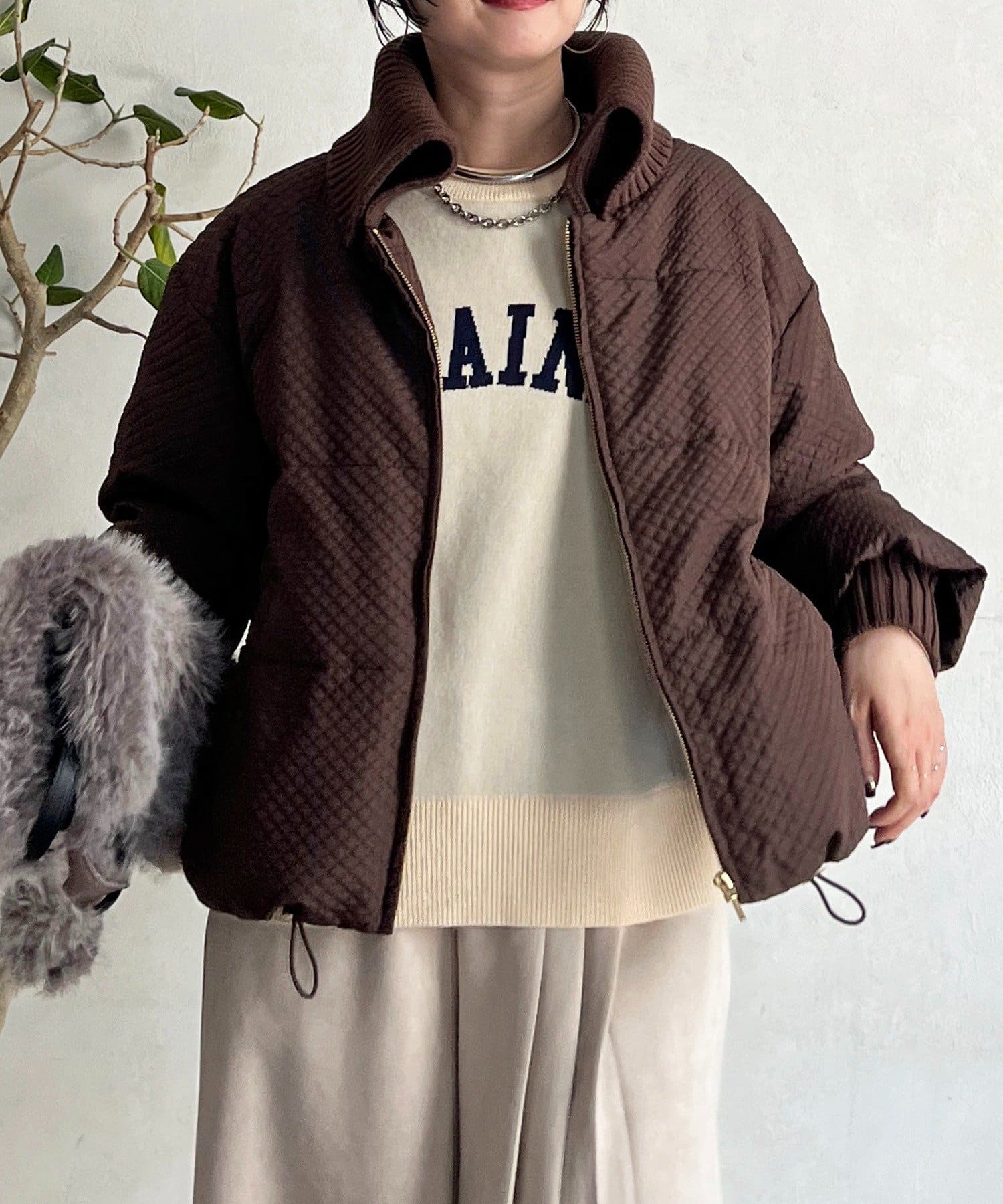 凹凸感のある素材感と2WAY仕様の襟で大人可愛く防寒できるダウン