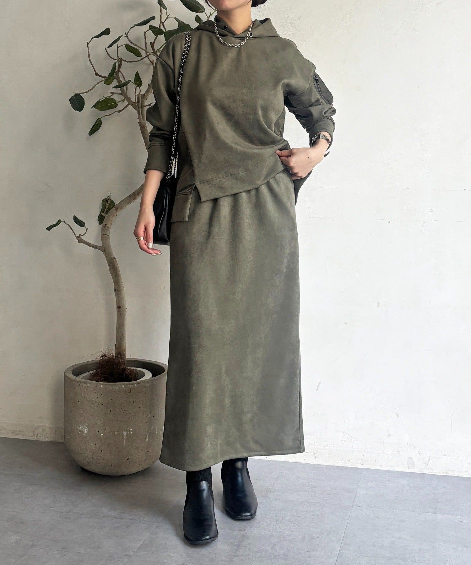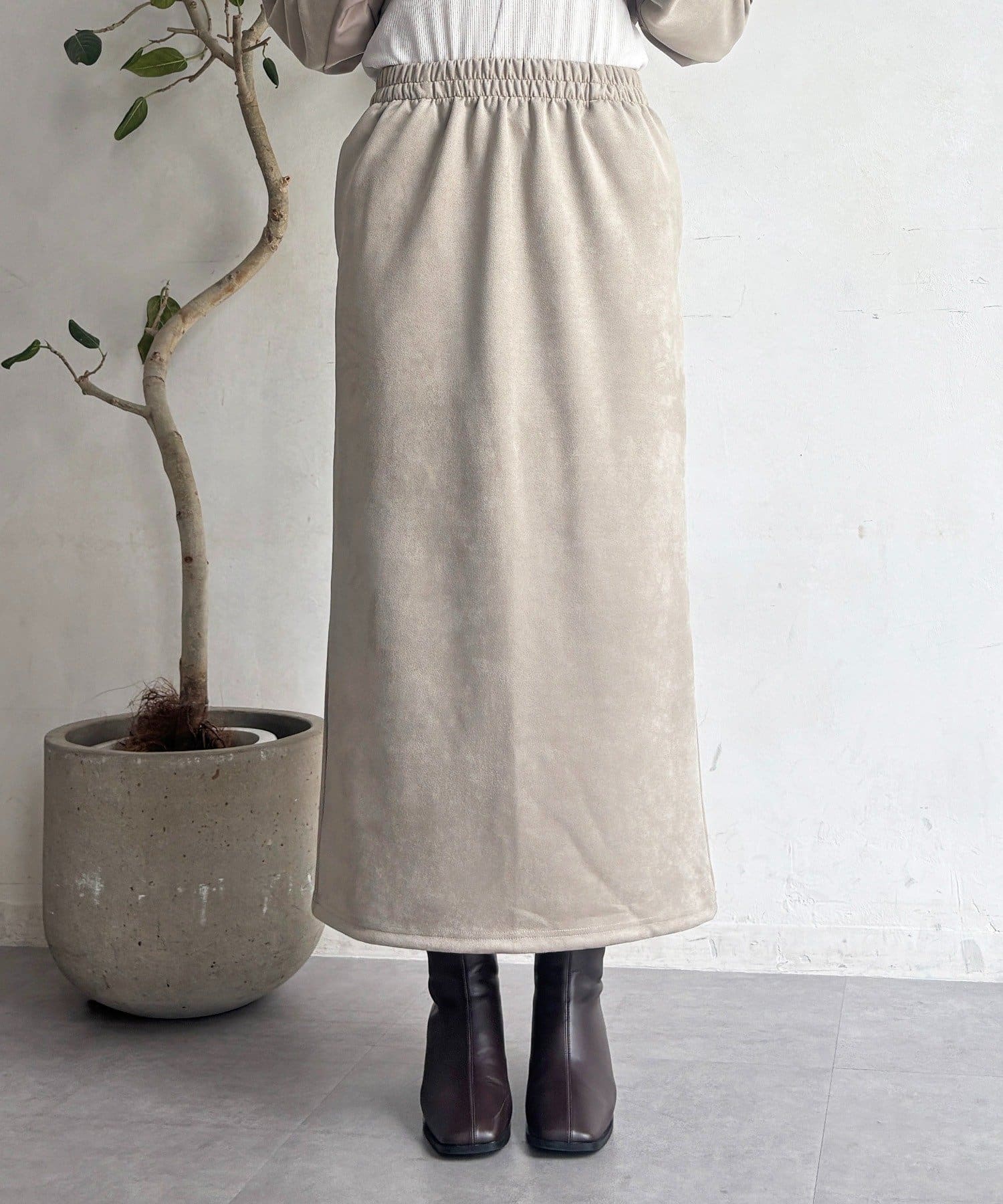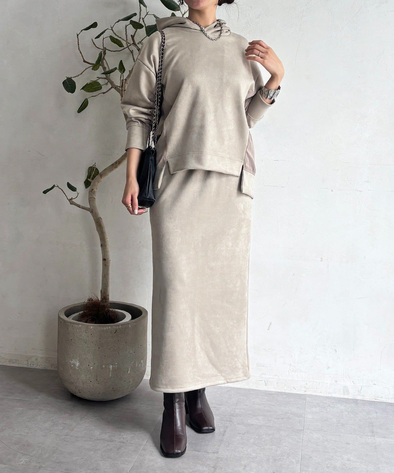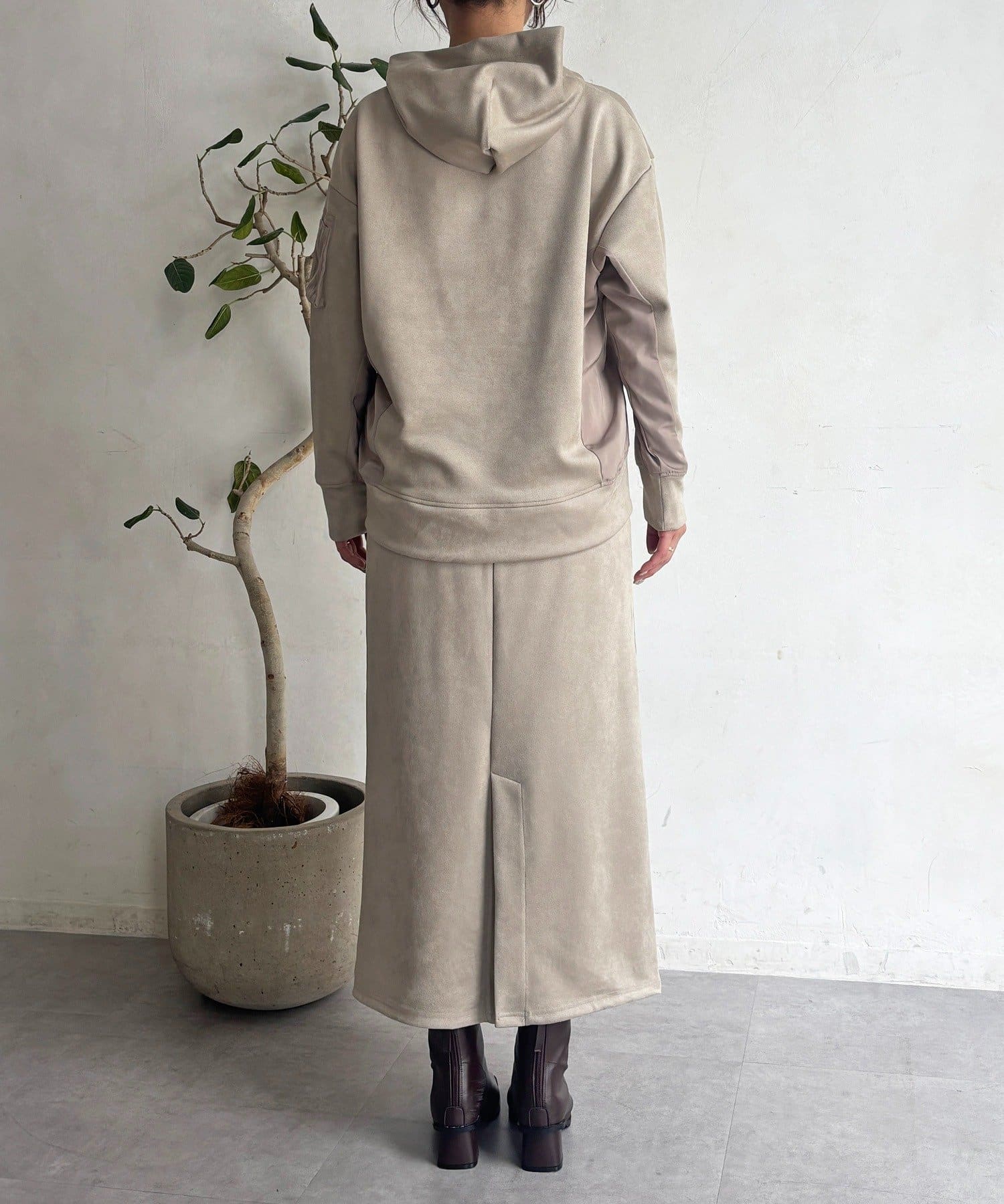 ・今からの季節にピッタリなフェイクスエード素材のトップスとナロースカートのセットアイテム