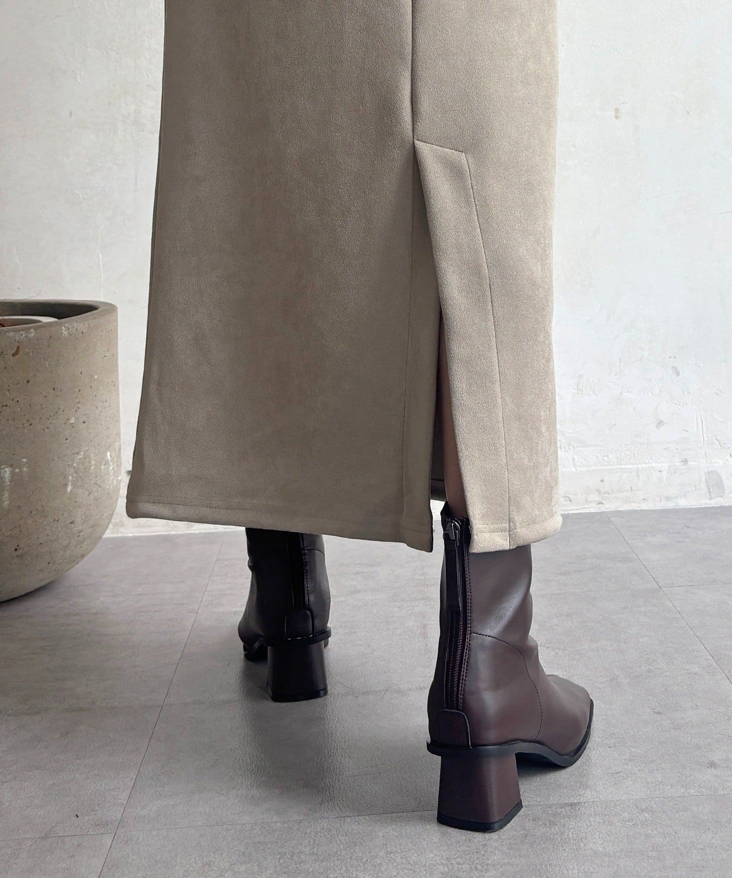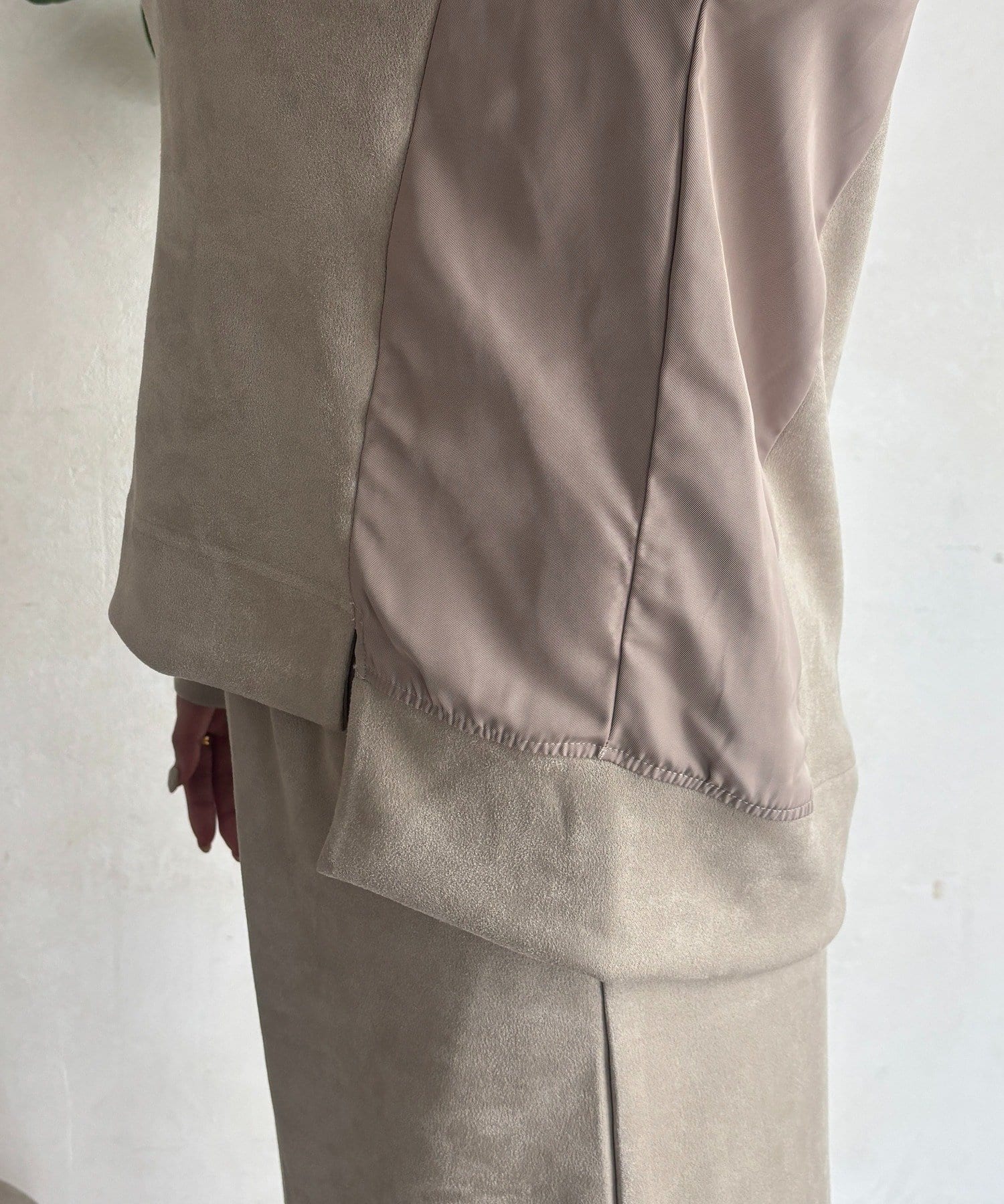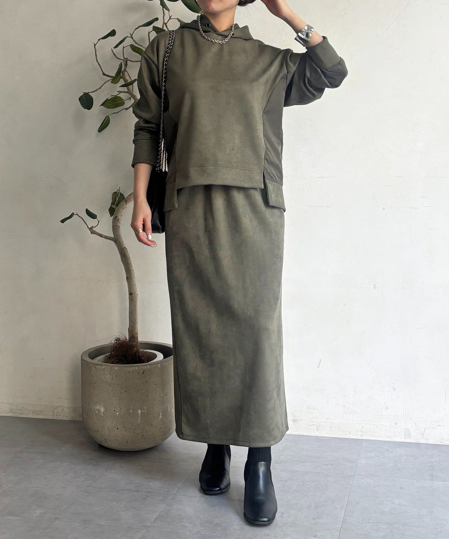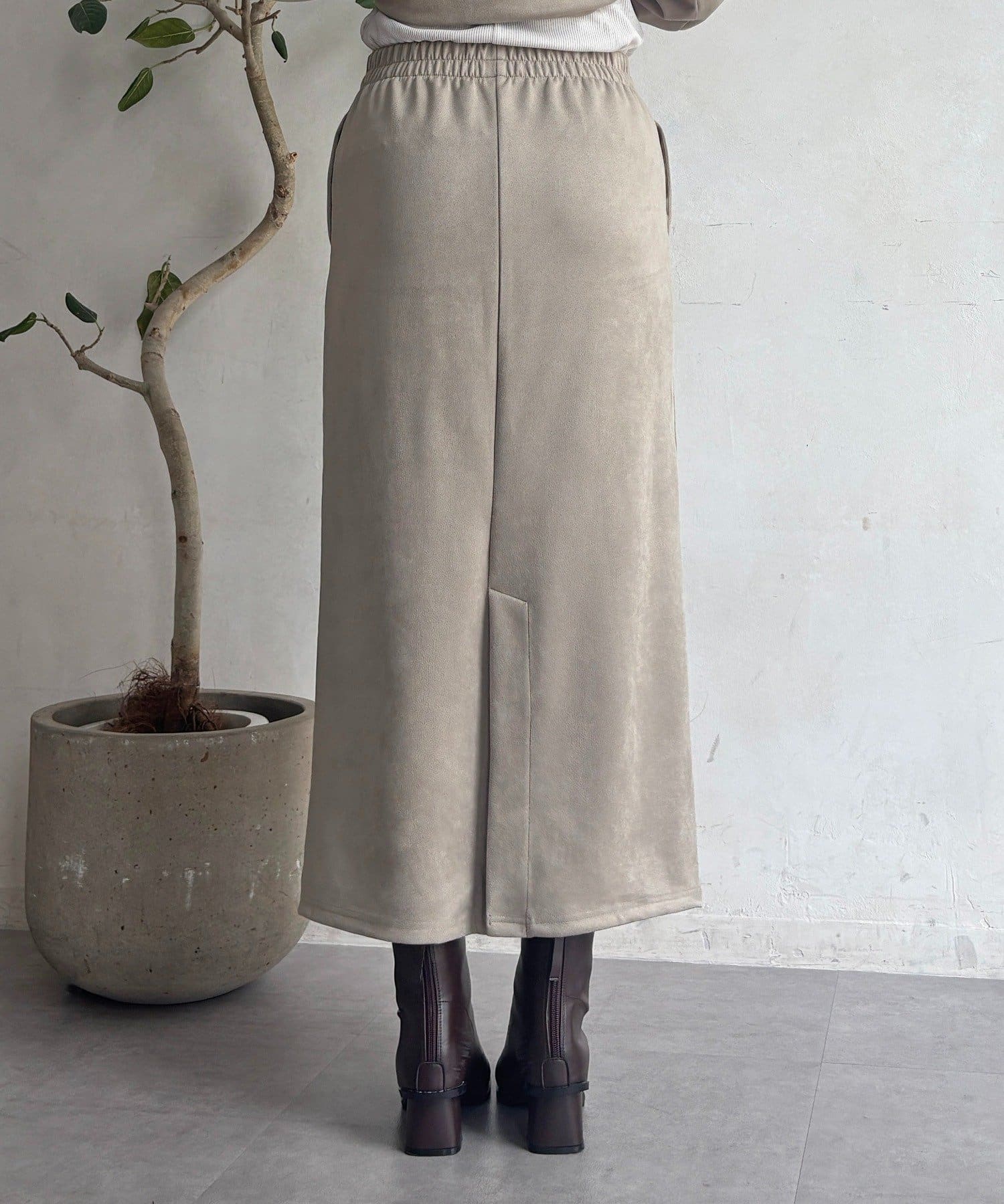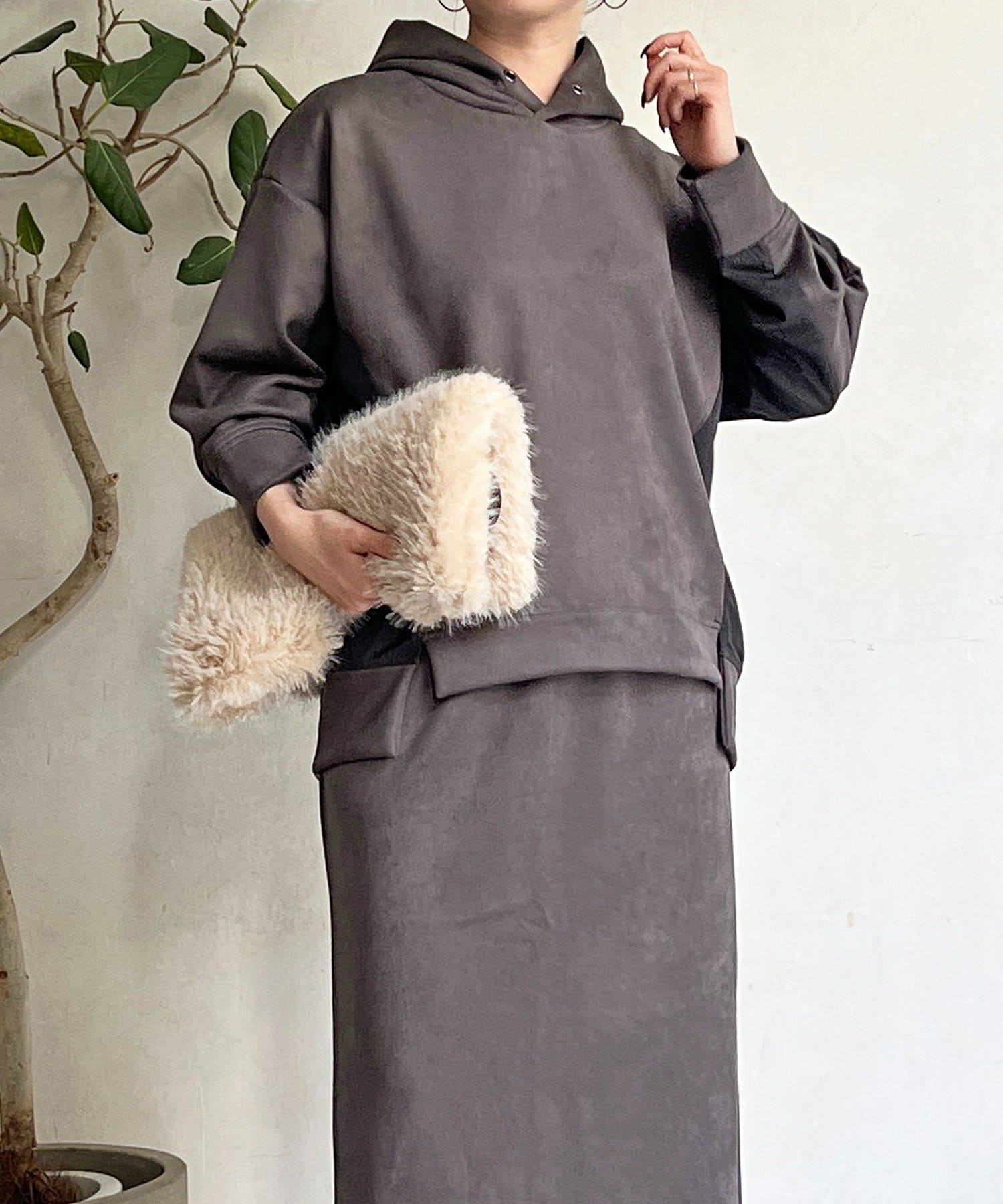 ・今からの季節にピッタリなフェイクスエード素材のトップスとナロースカートのセットアイテム