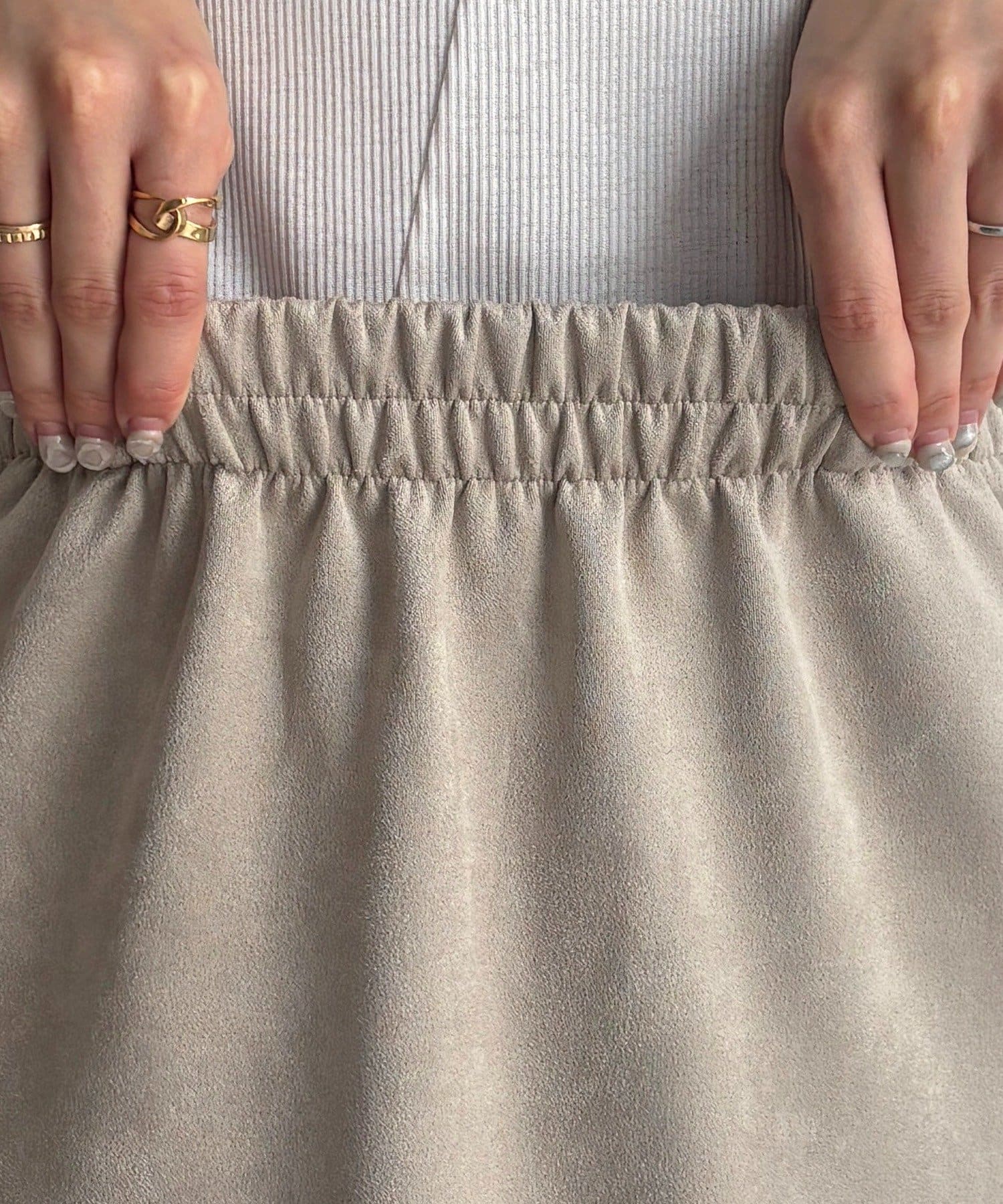 ・スカートはウエストゴム仕様で着脱楽々&Iラインシルエットで細見え効果も◎