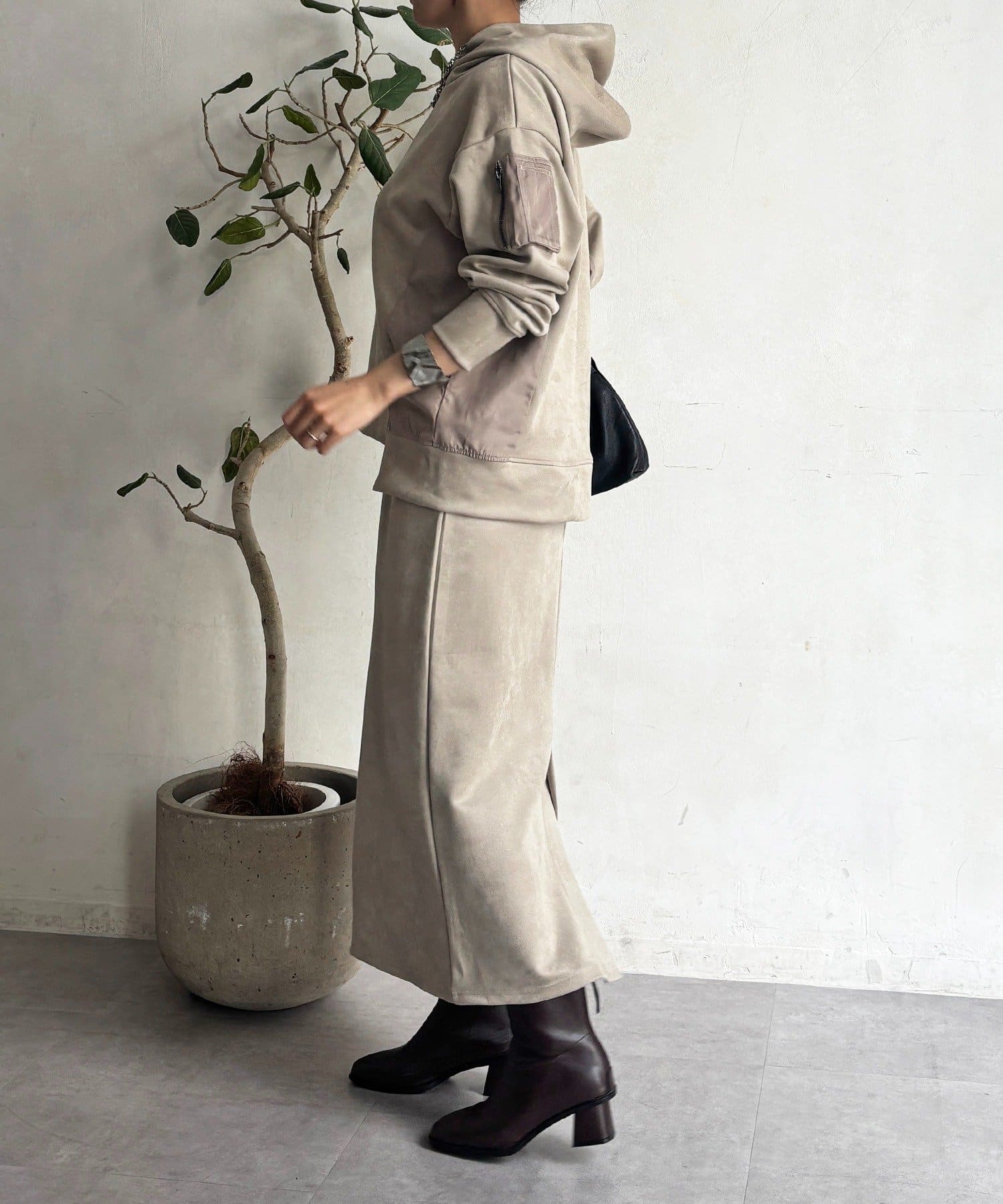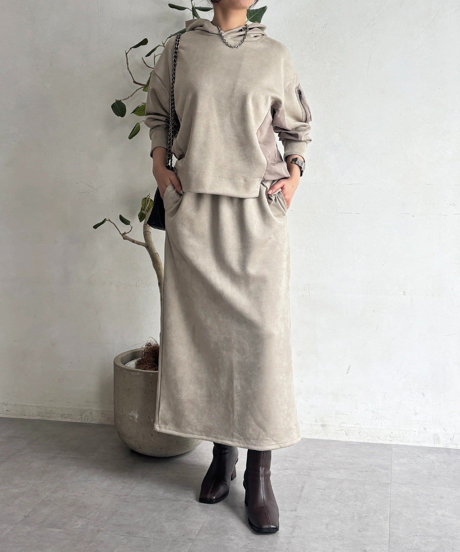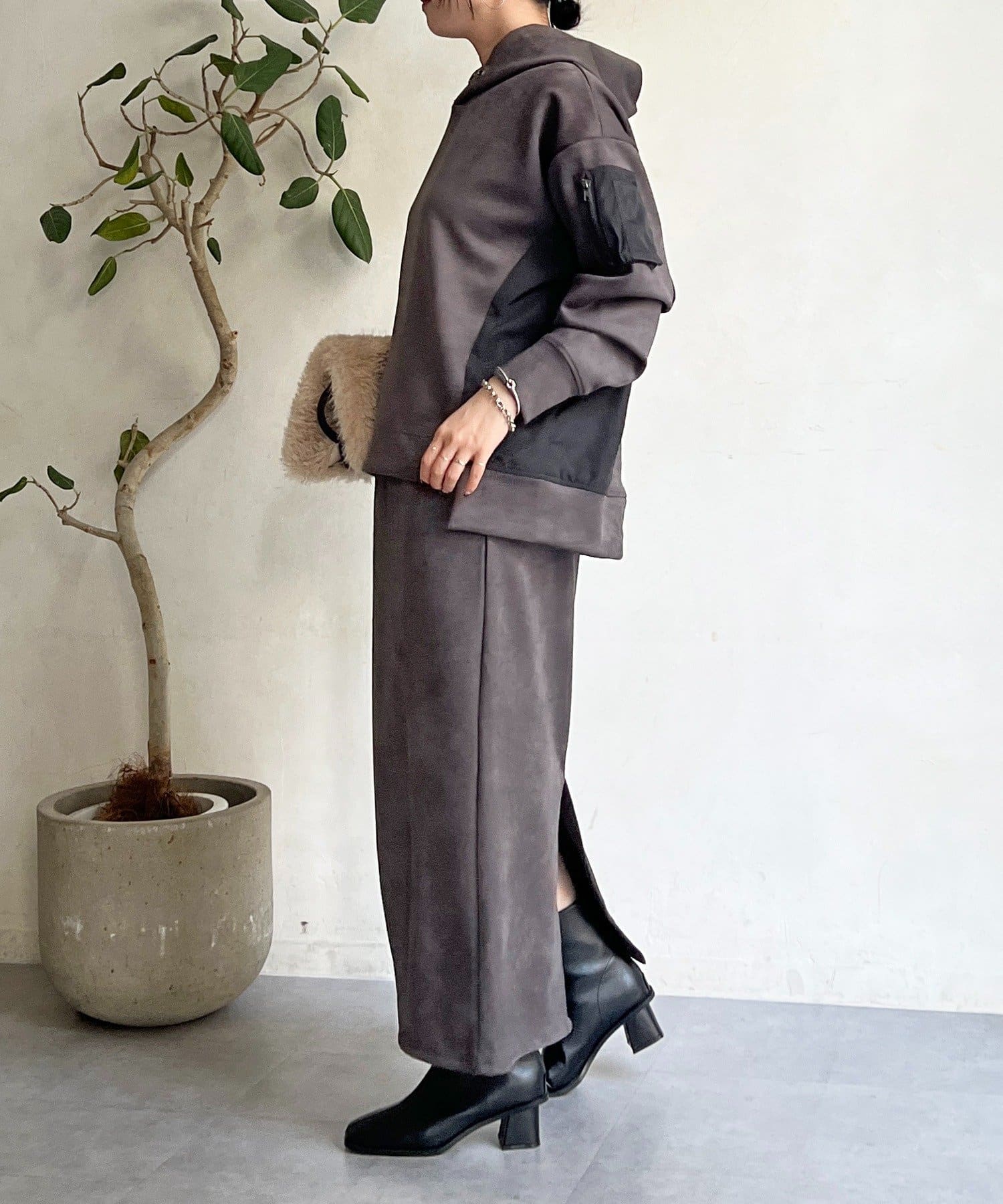 季節感もオシャレ感も兼ね揃えたフェイクスエードセットアップ