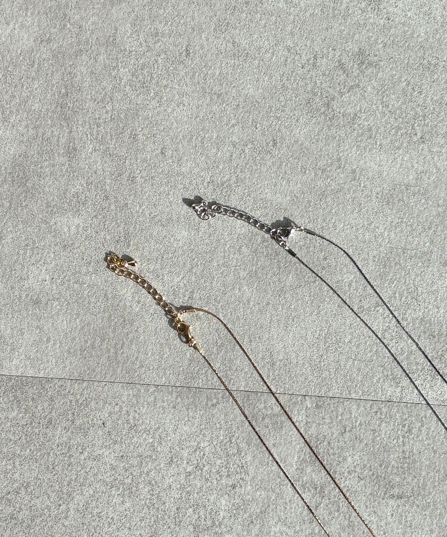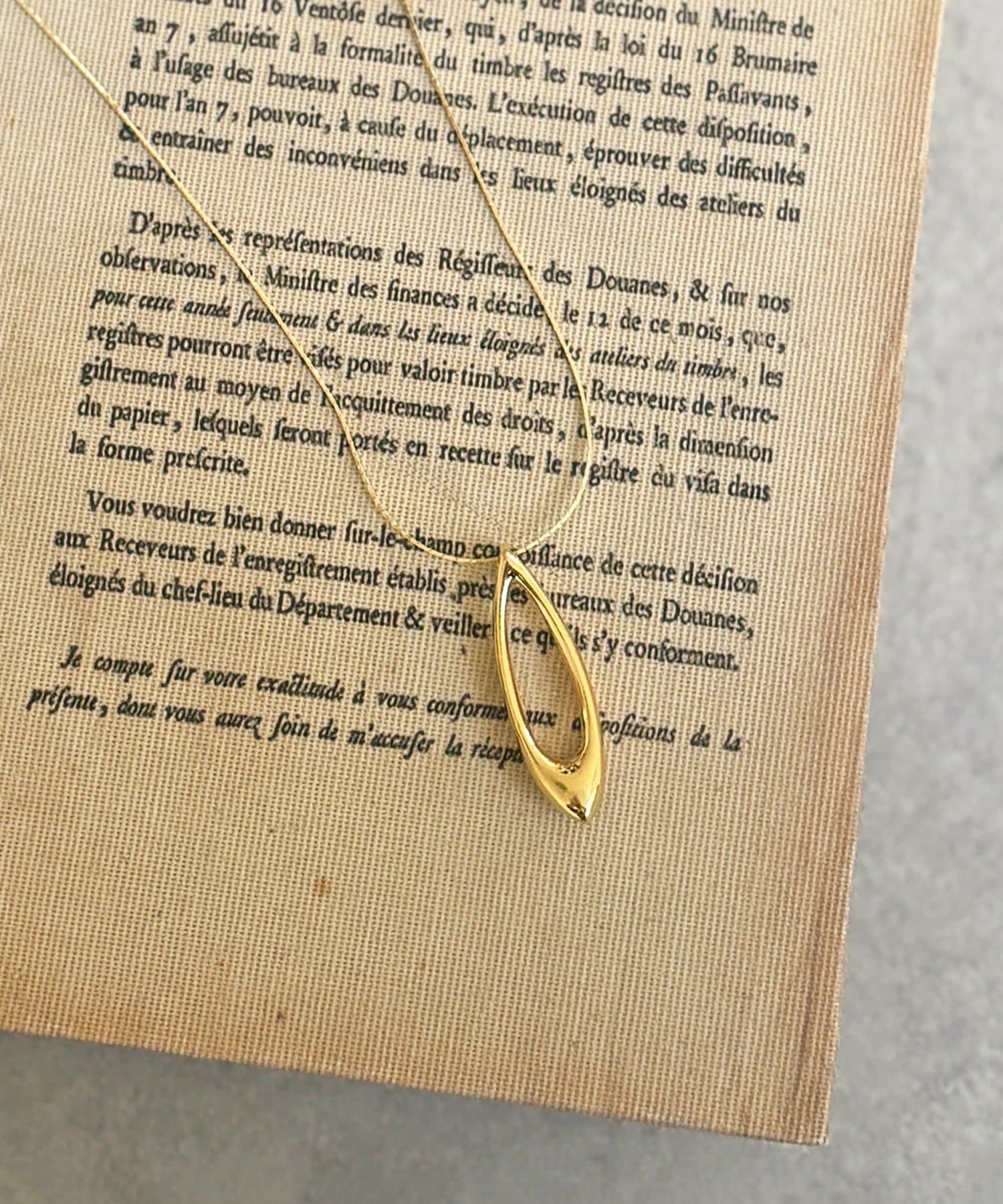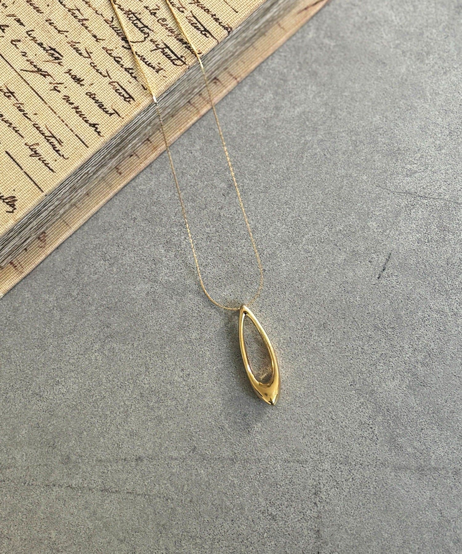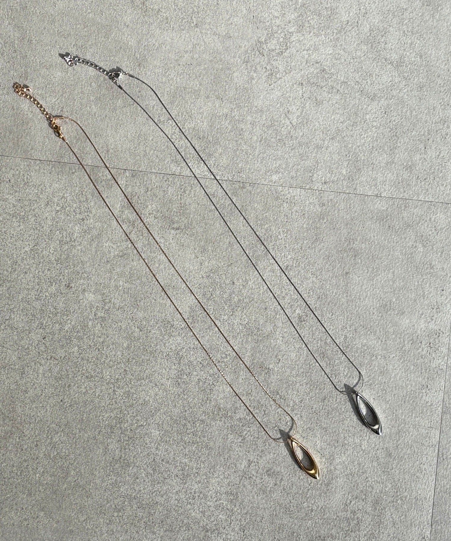 フラットなチェーンに縦長のオーバルパーツが控えめながら程よいアクセントになります。