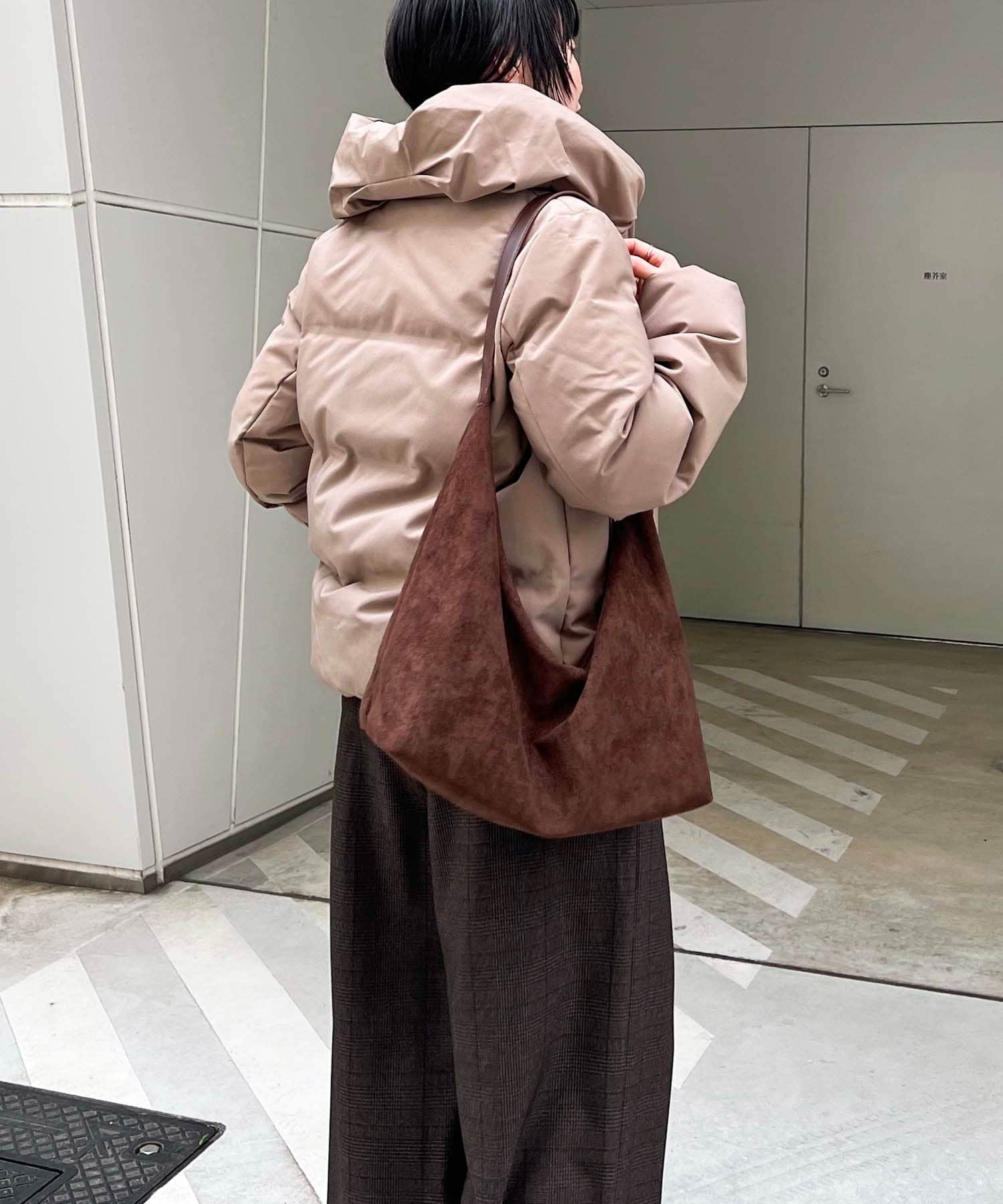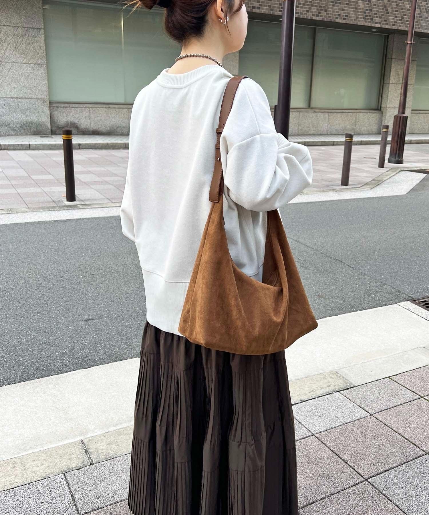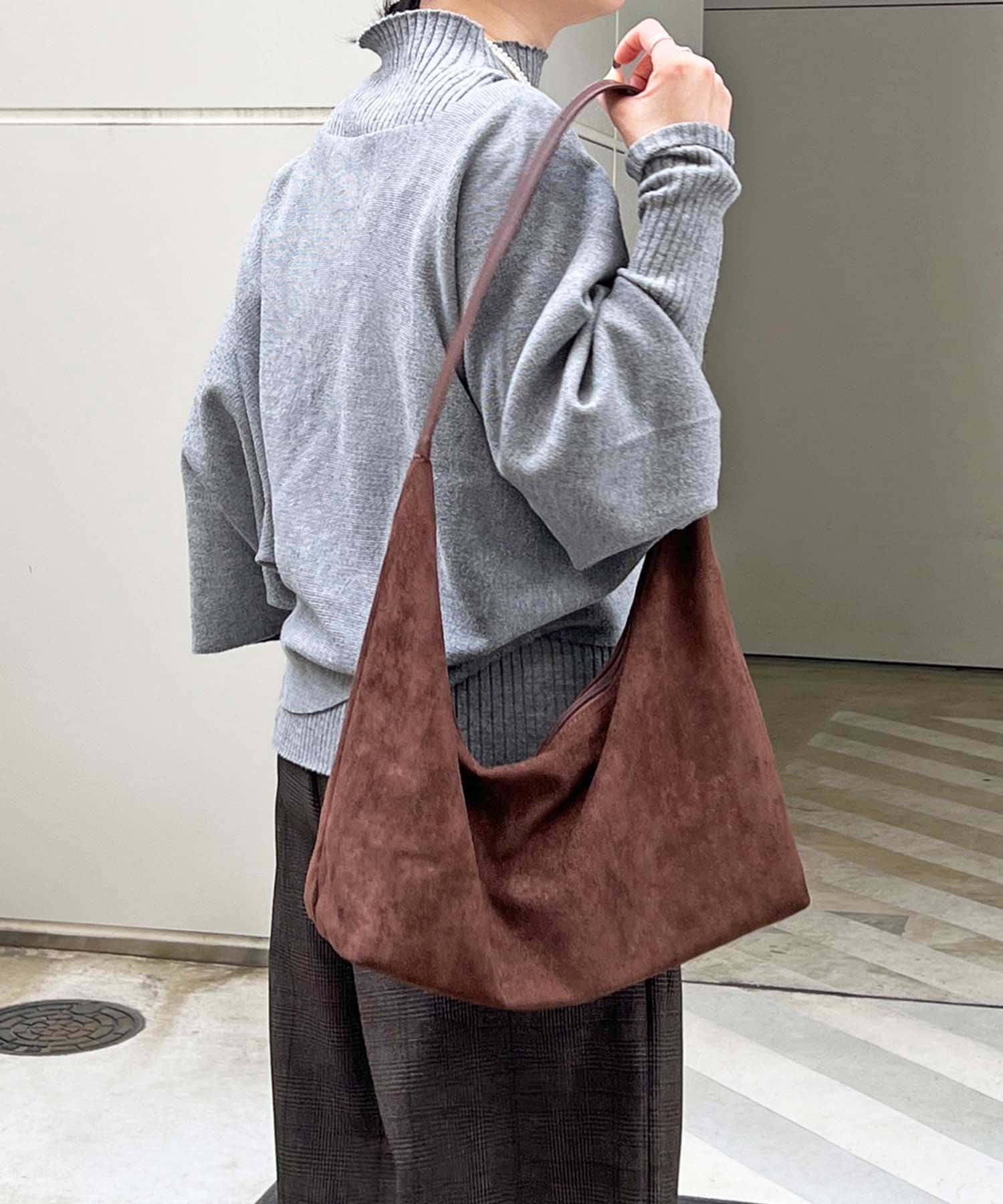 ・今季トレンドの横長フォルムとフェイクスウェード素材がオシャレなショルダーバッグ