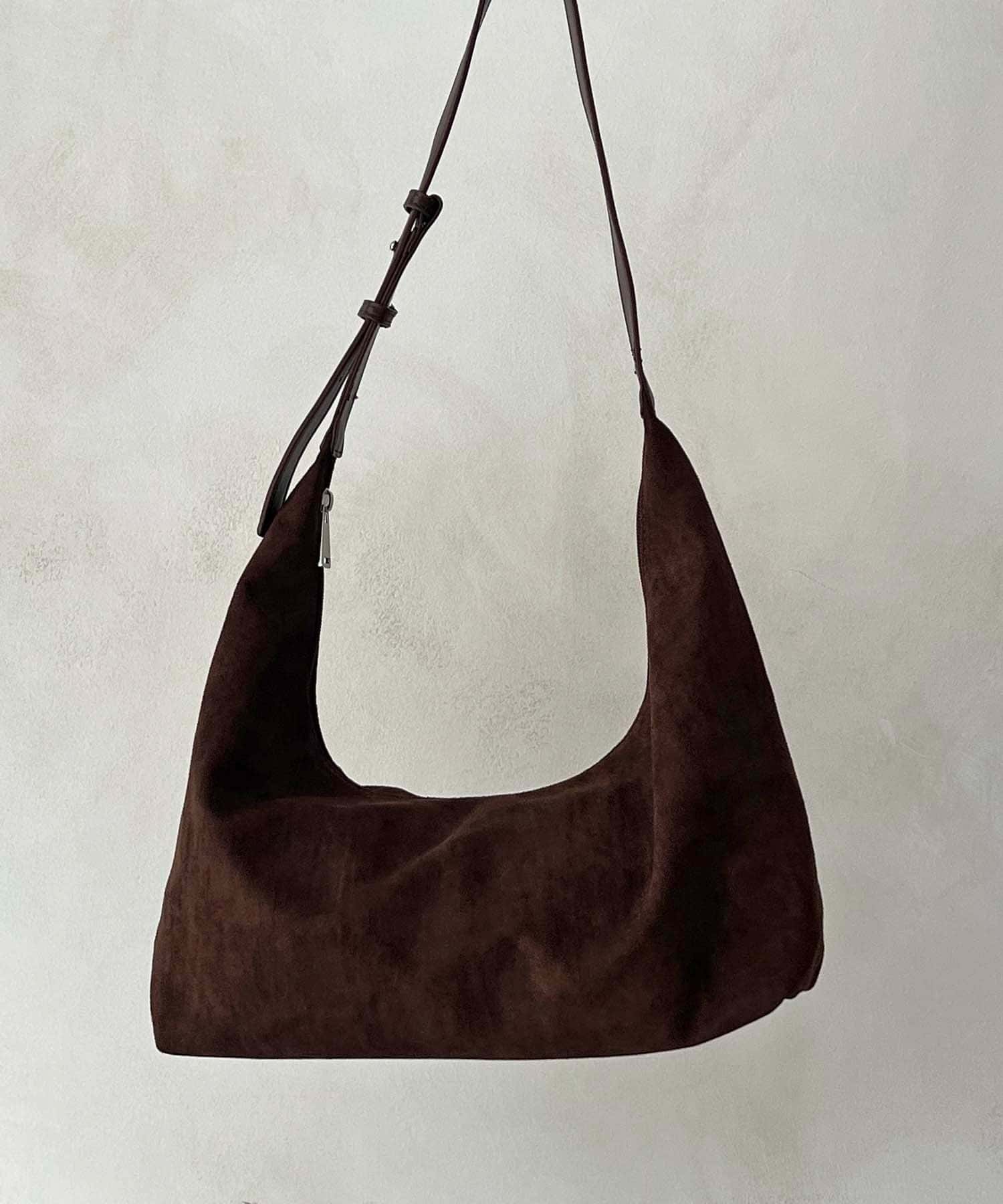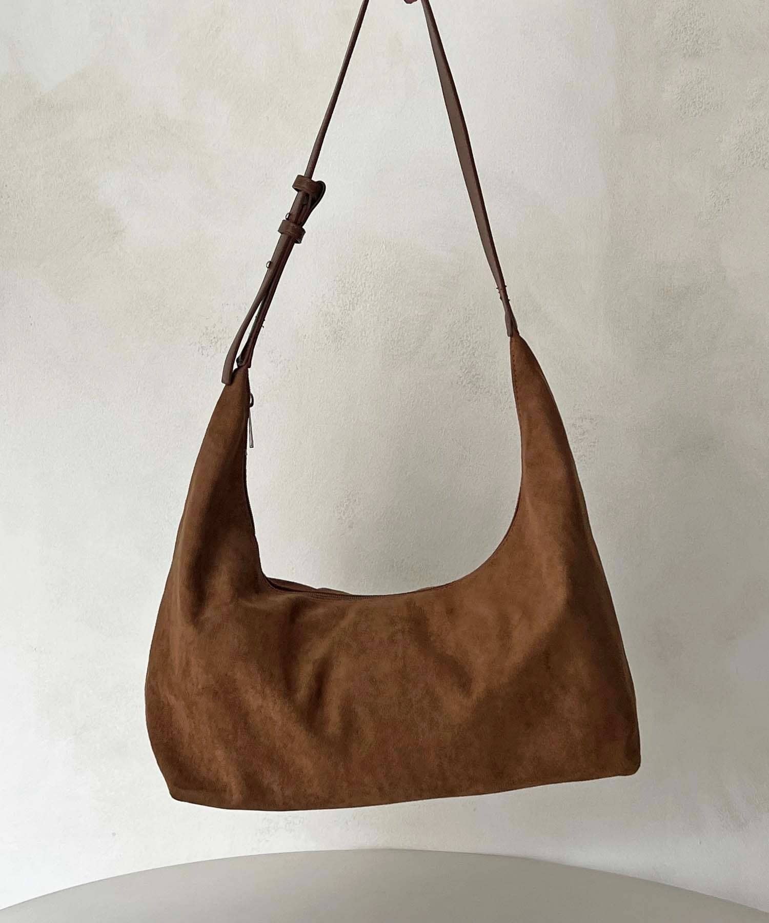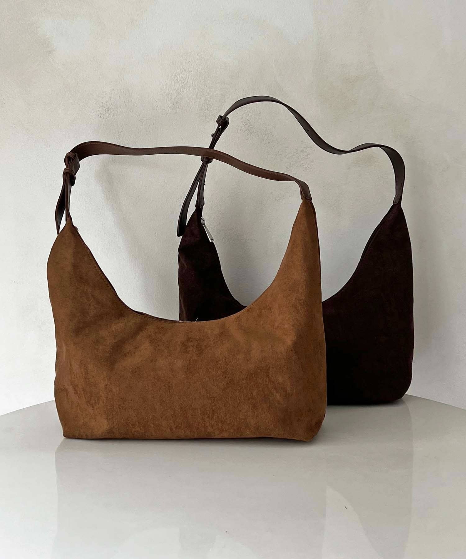 ・今季トレンドの横長フォルムとフェイクスウェード素材がオシャレなショルダーバッグ
