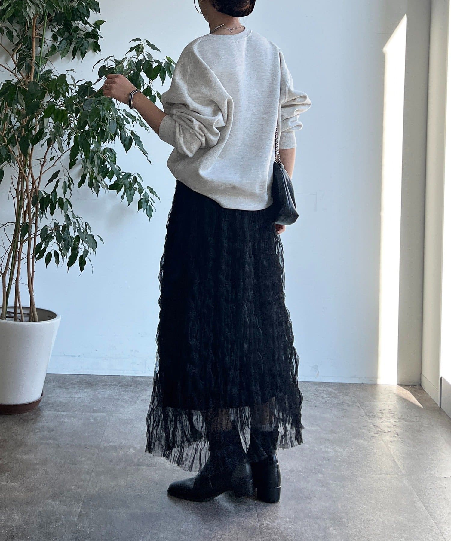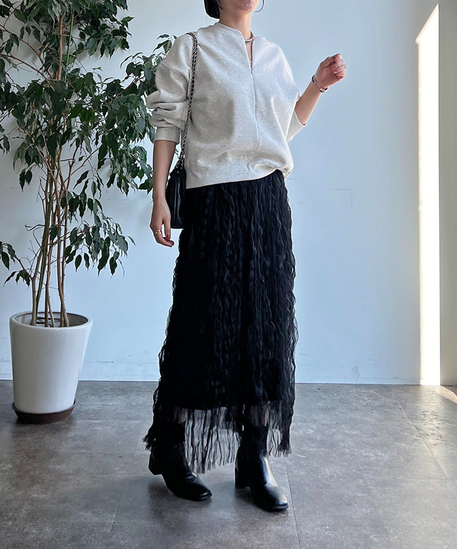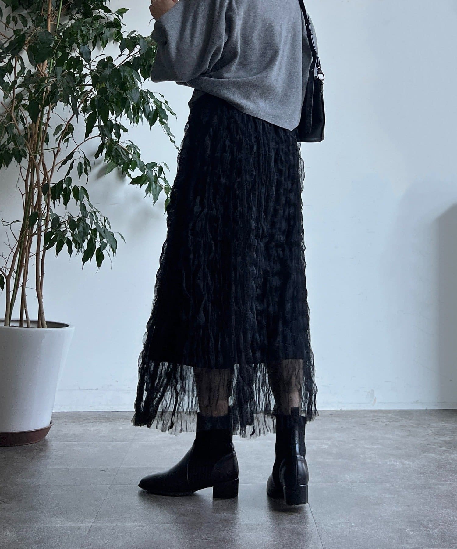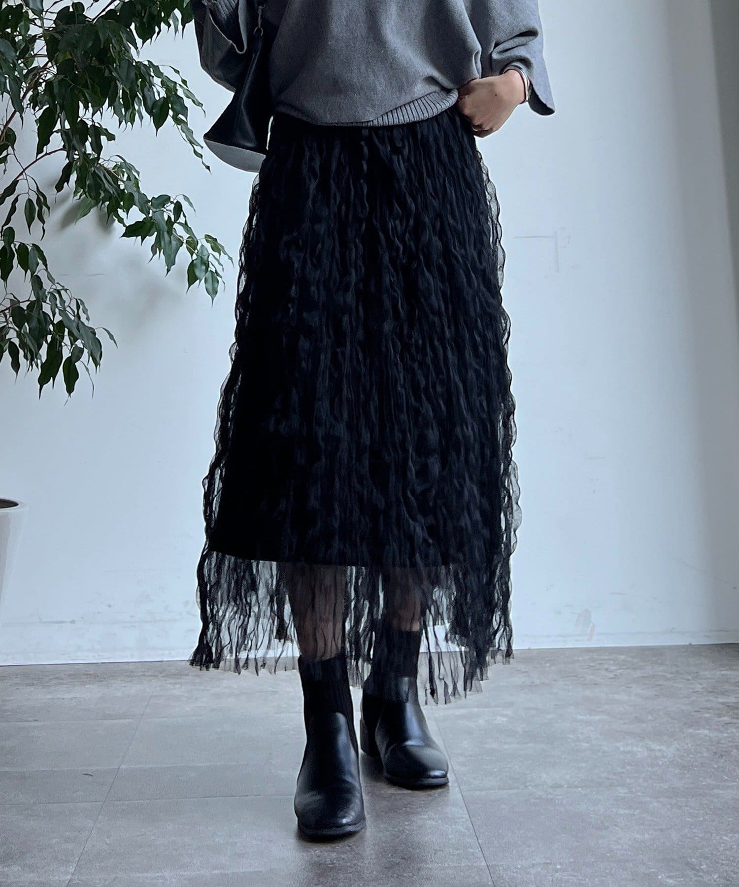 ・コーデを華やかにする、ほどよいボリューム感のチュール素材
