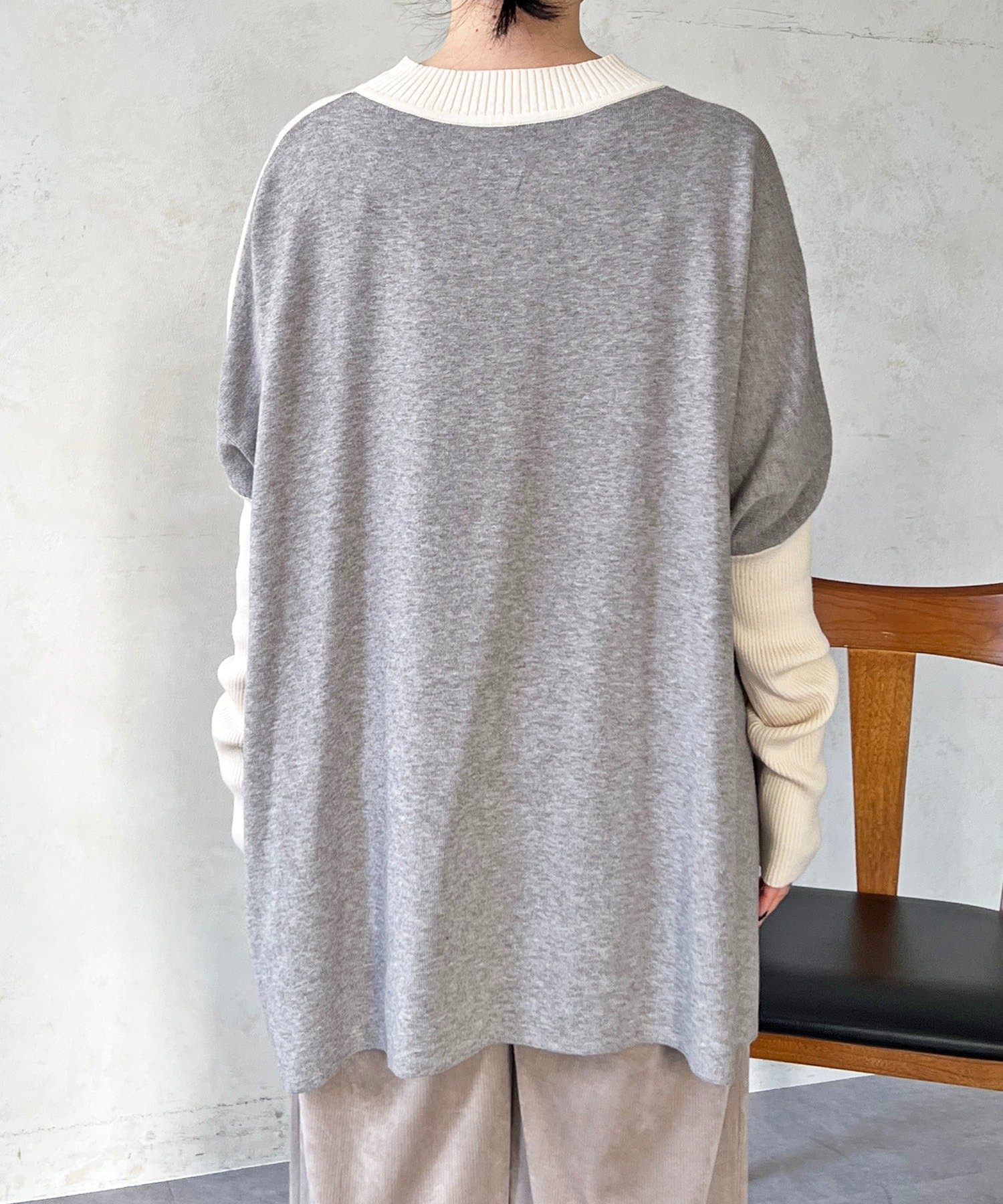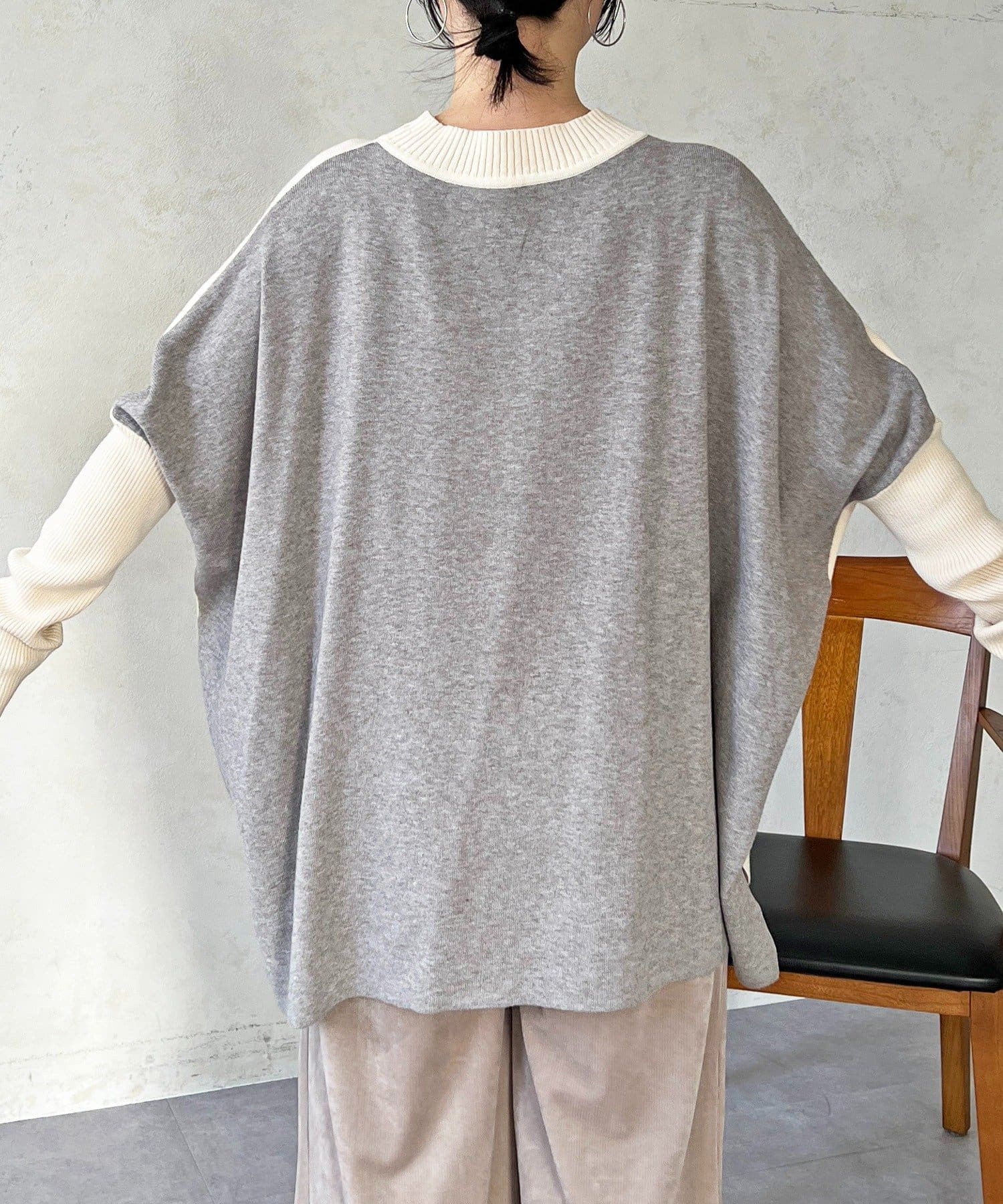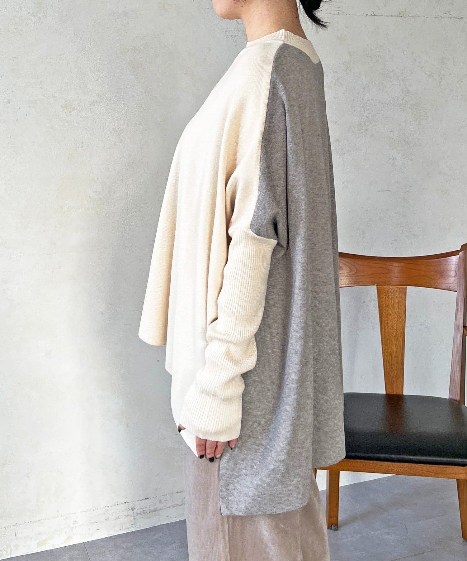 ドルマンスリーブ配色ニットプルオーバー