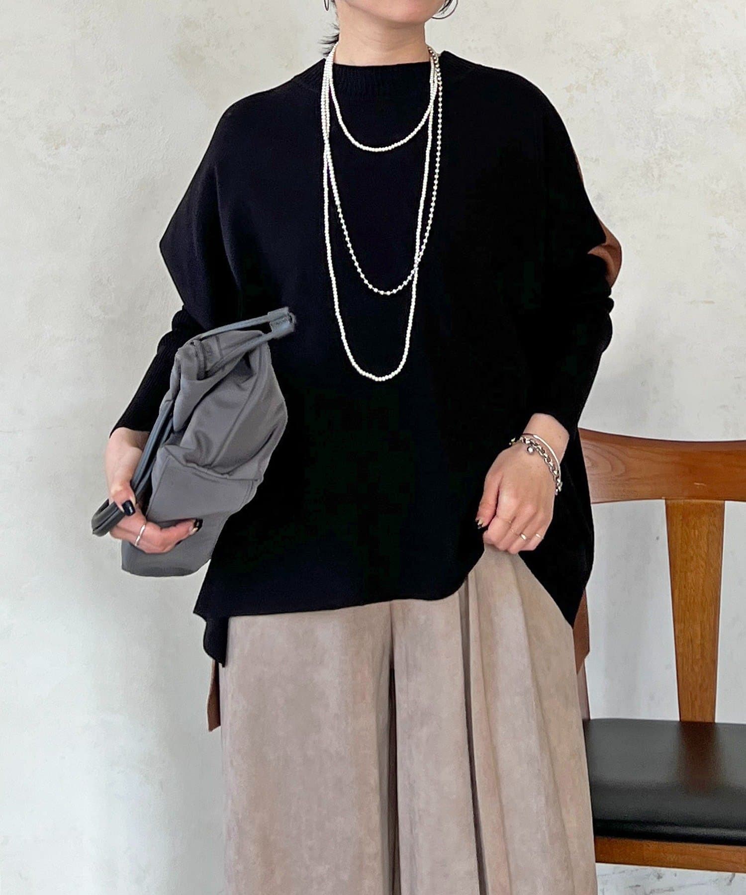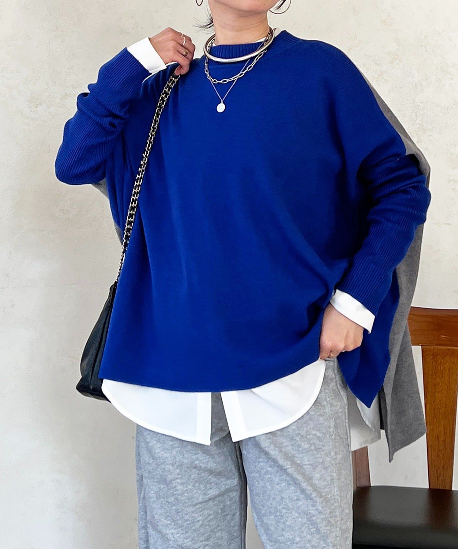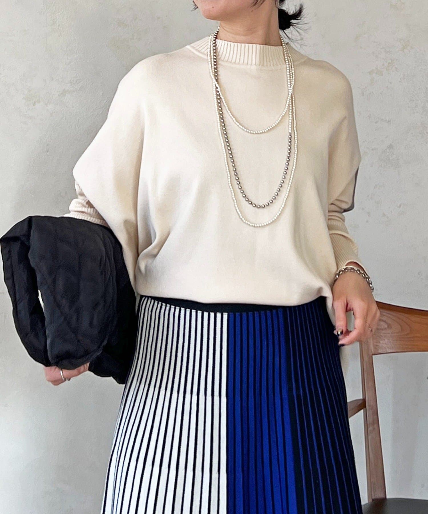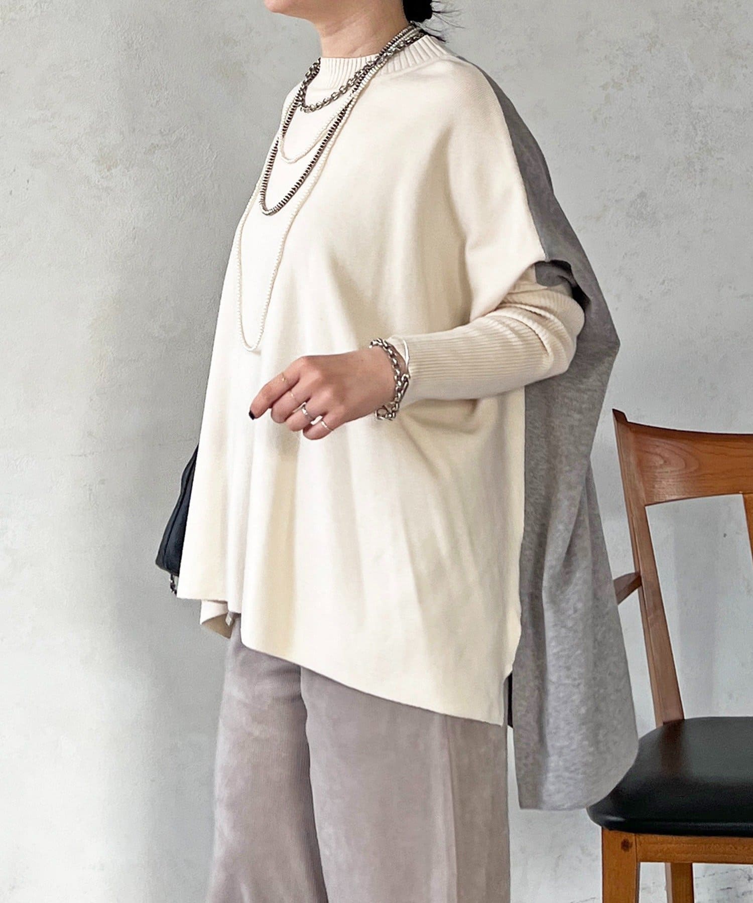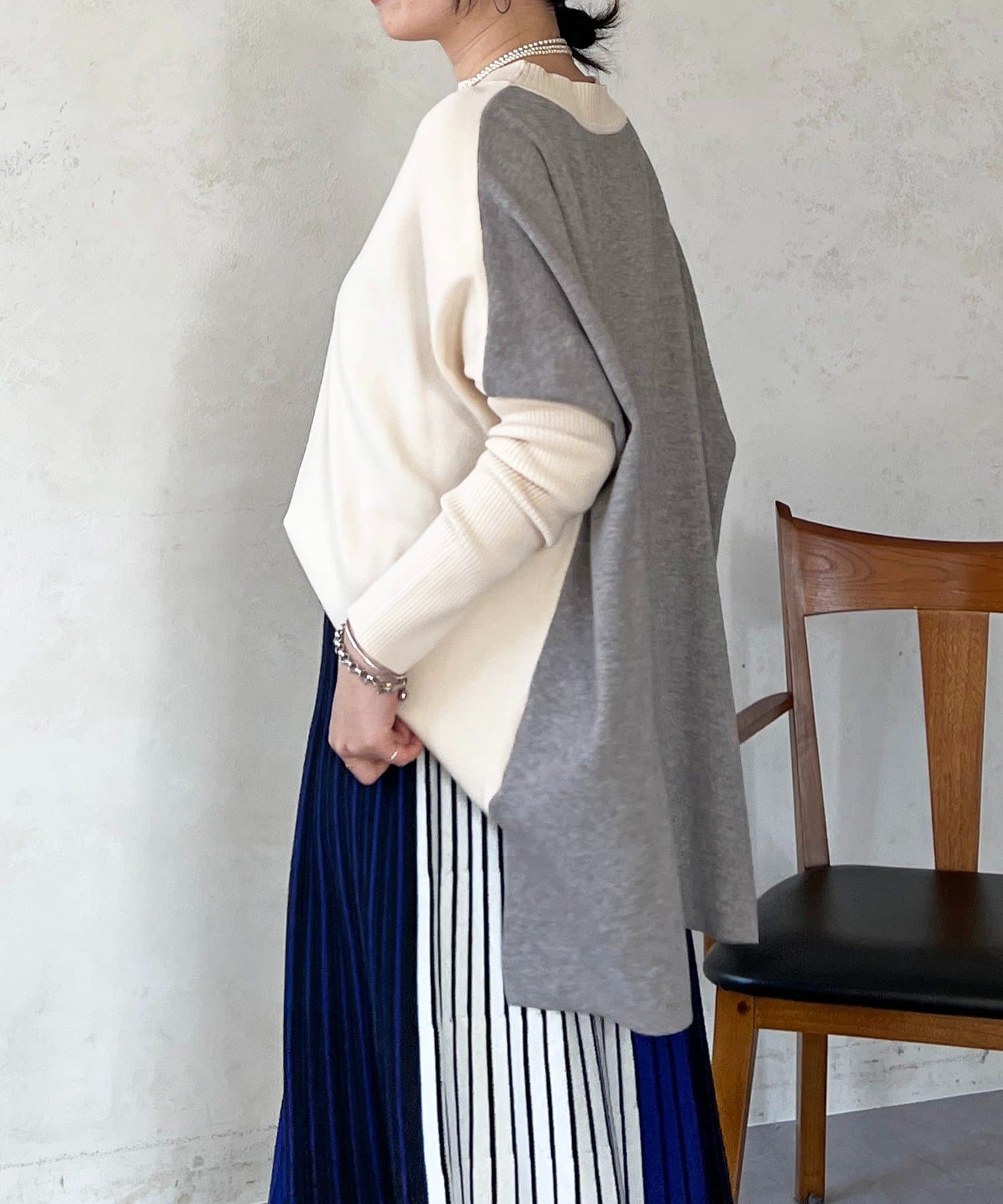 大人のひと癖がオシャレさ際立つ配色ニットプルオーバー