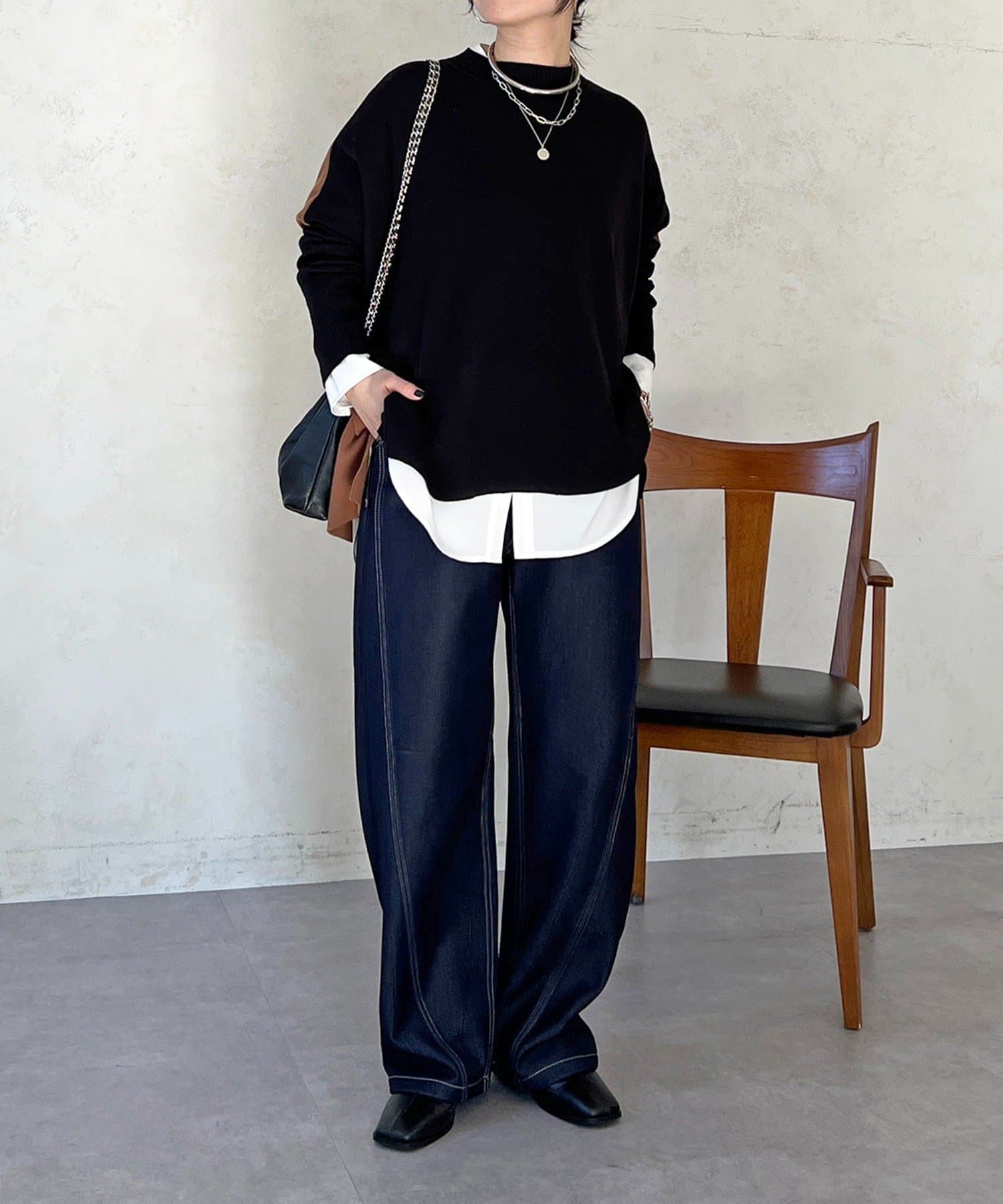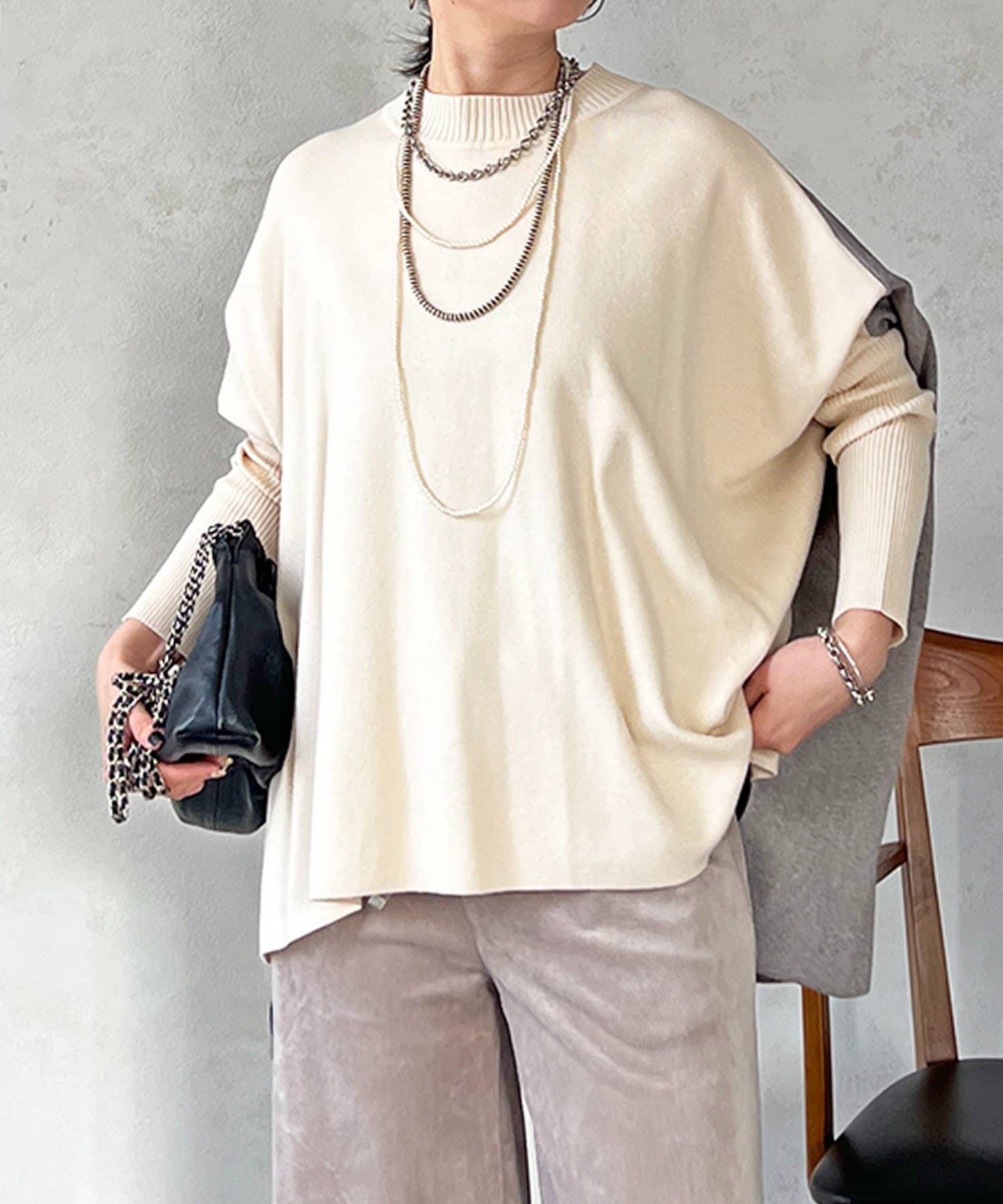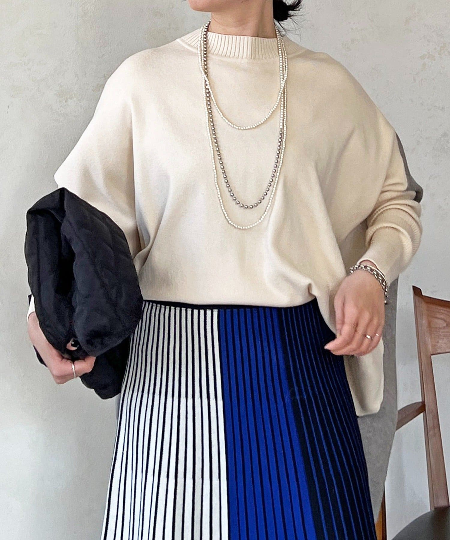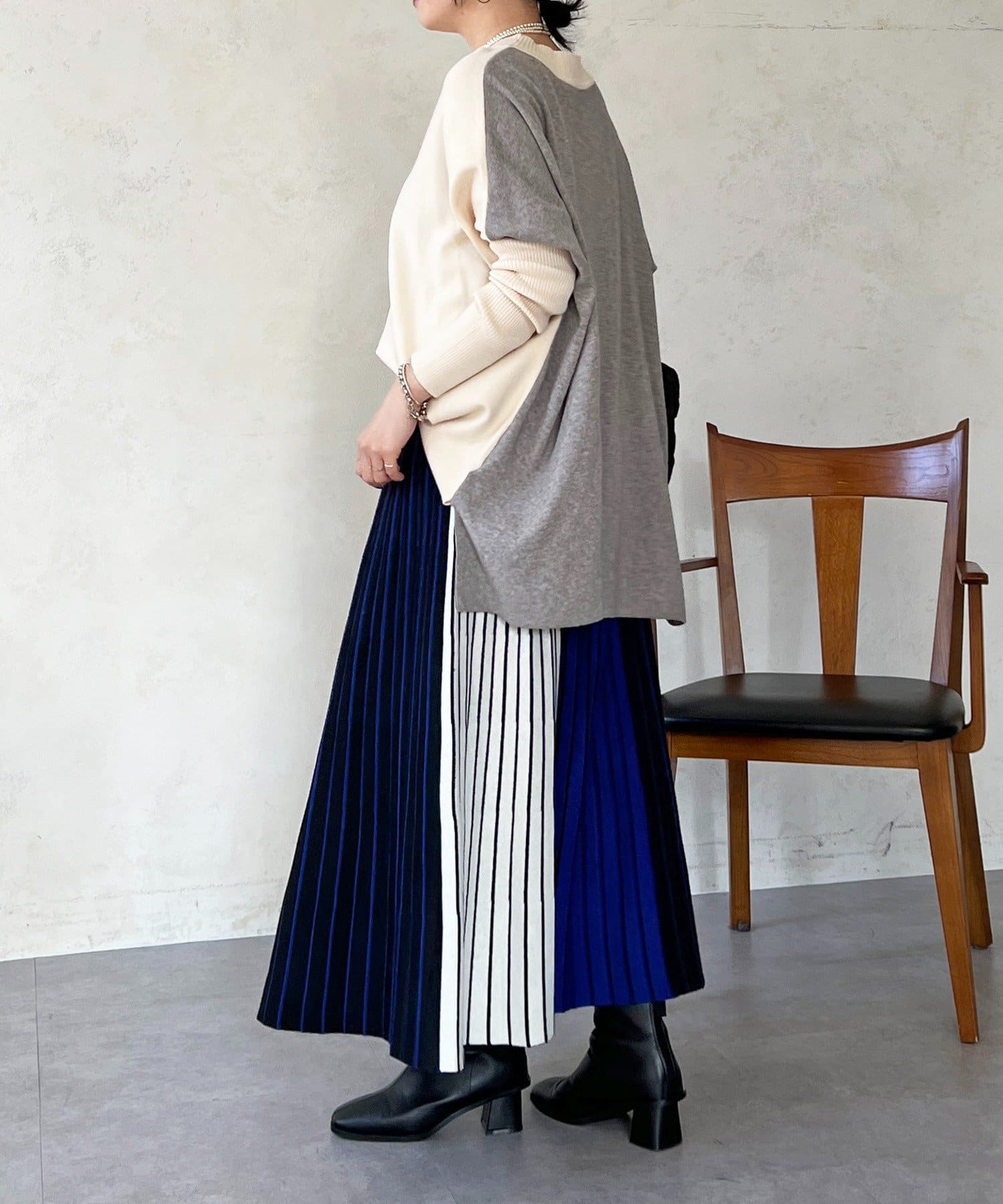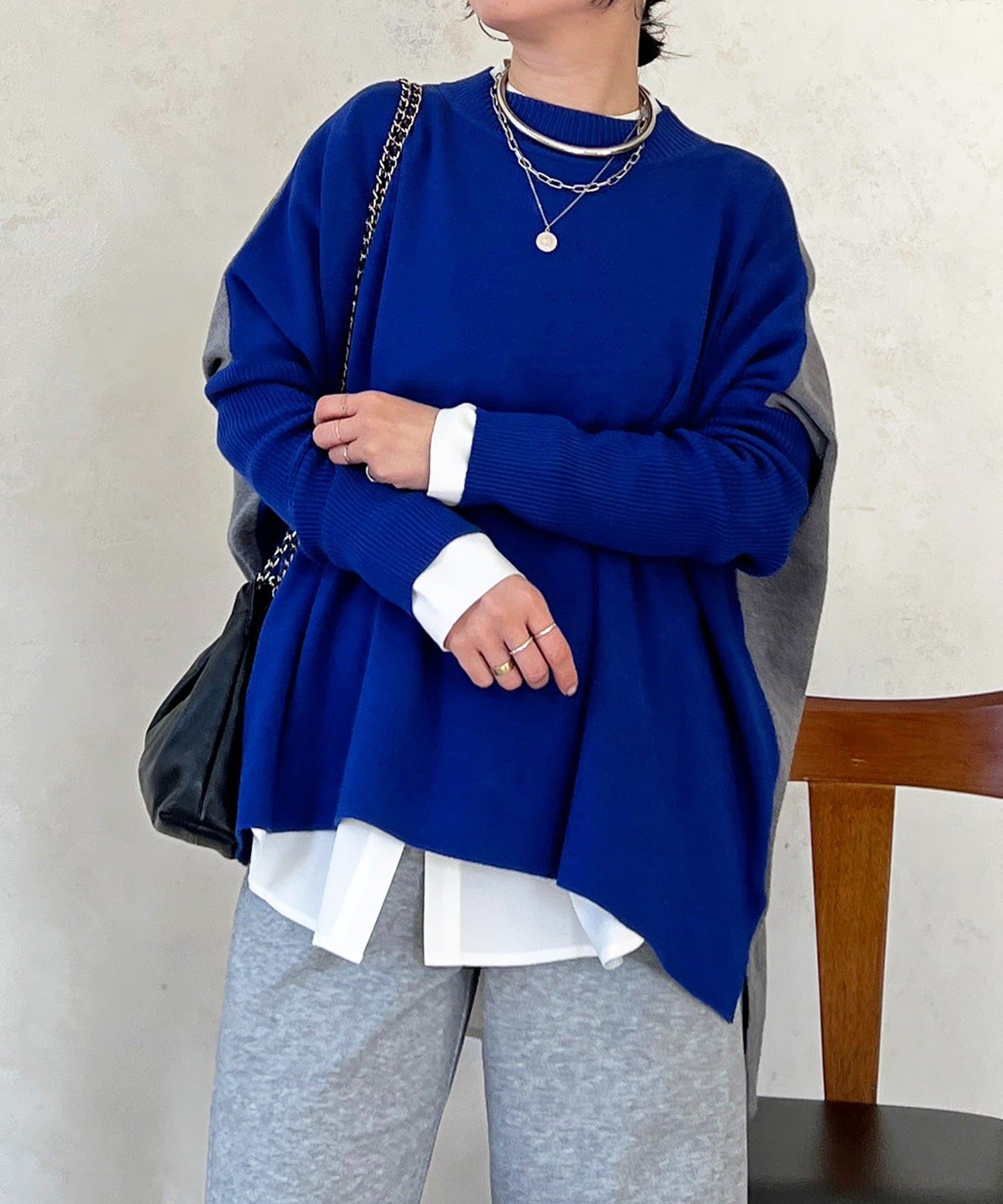 大人のひと癖がオシャレさ際立つ配色ニットプルオーバー