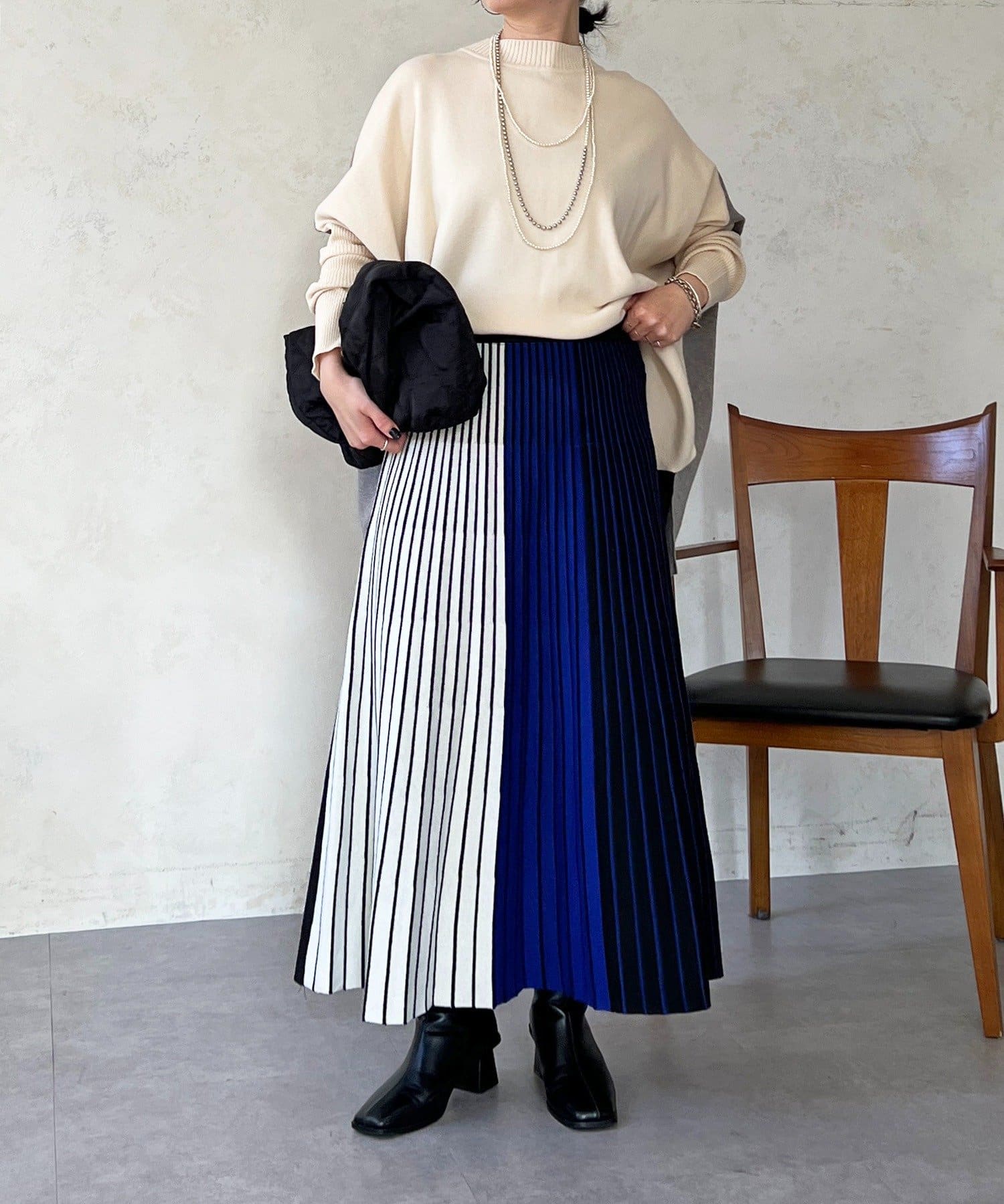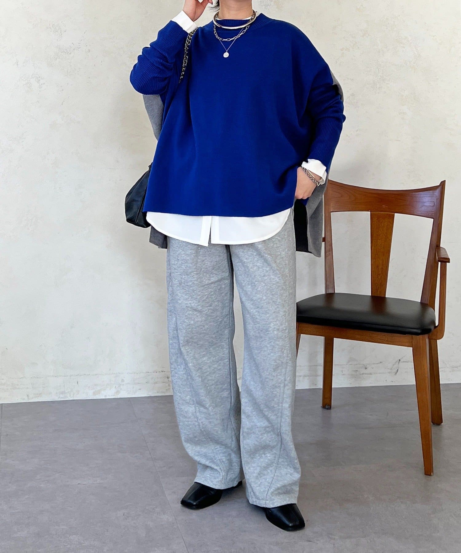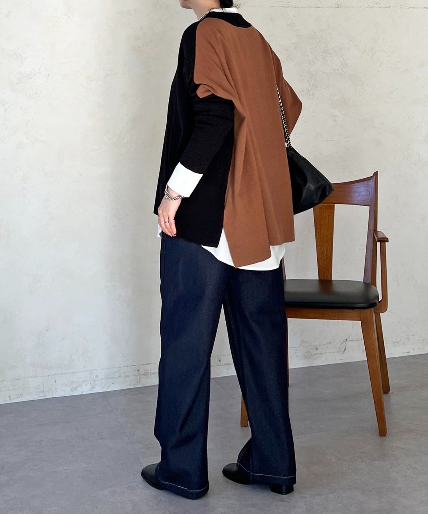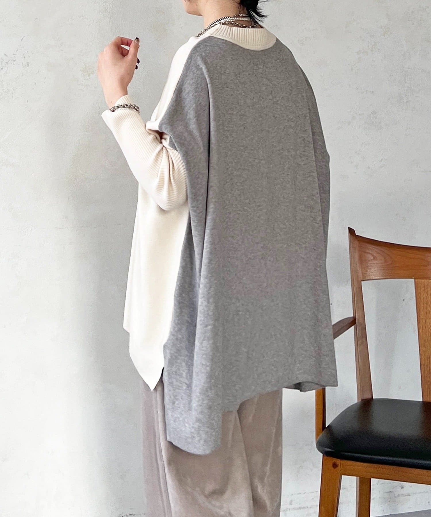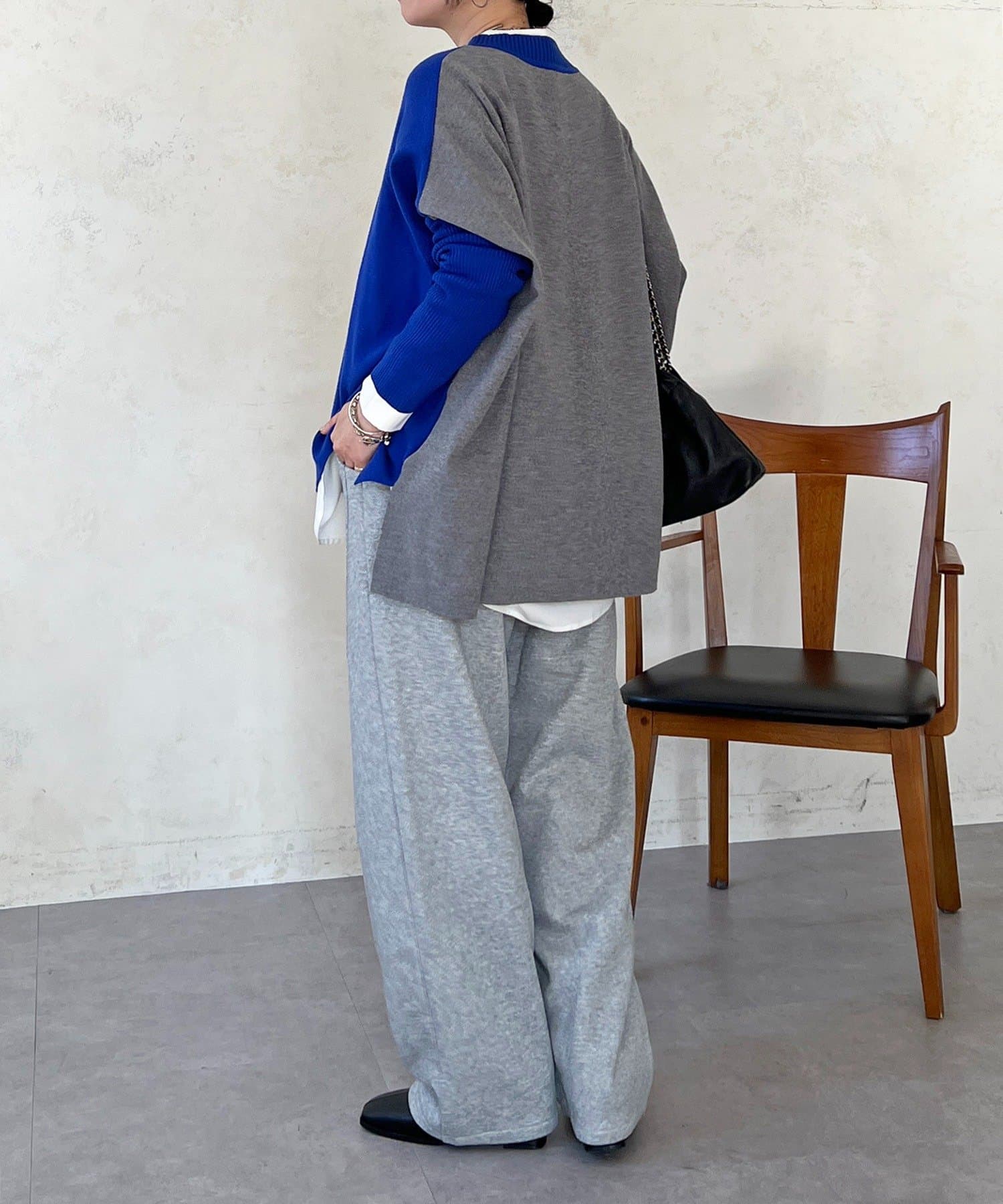 大人のひと癖がオシャレさ際立つ配色ニットプルオーバー