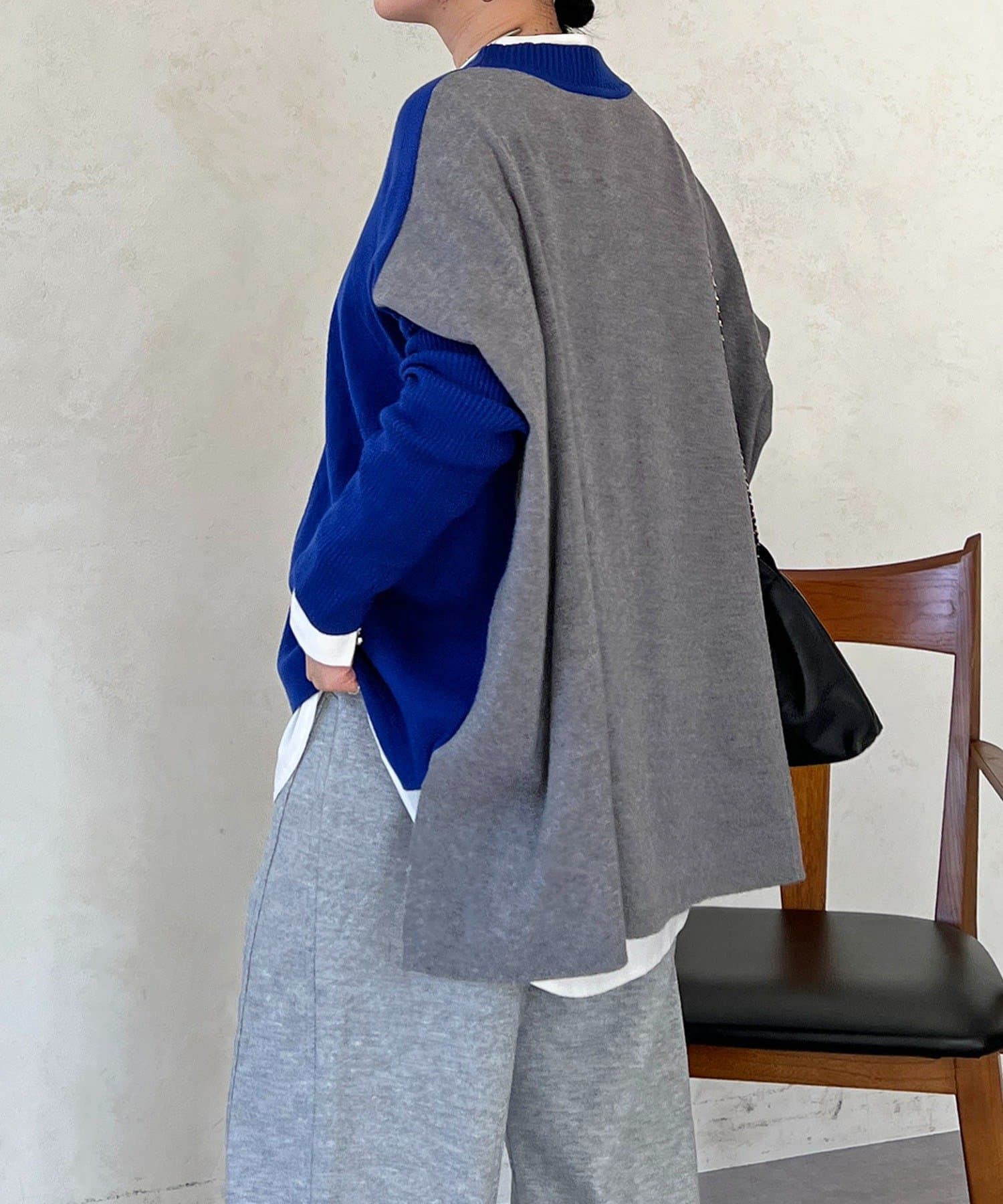 大人のひと癖がオシャレさ際立つ配色ニットプルオーバー