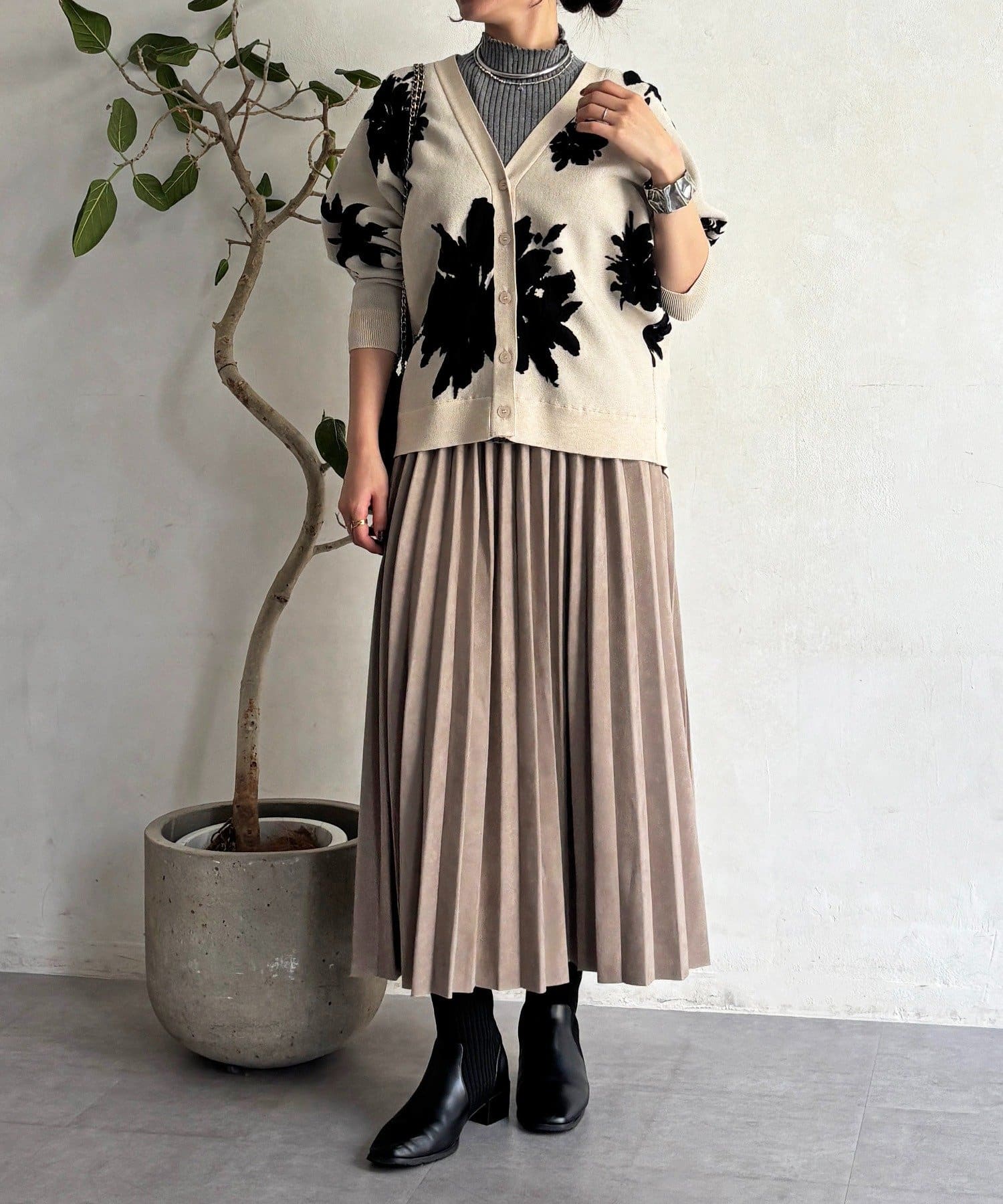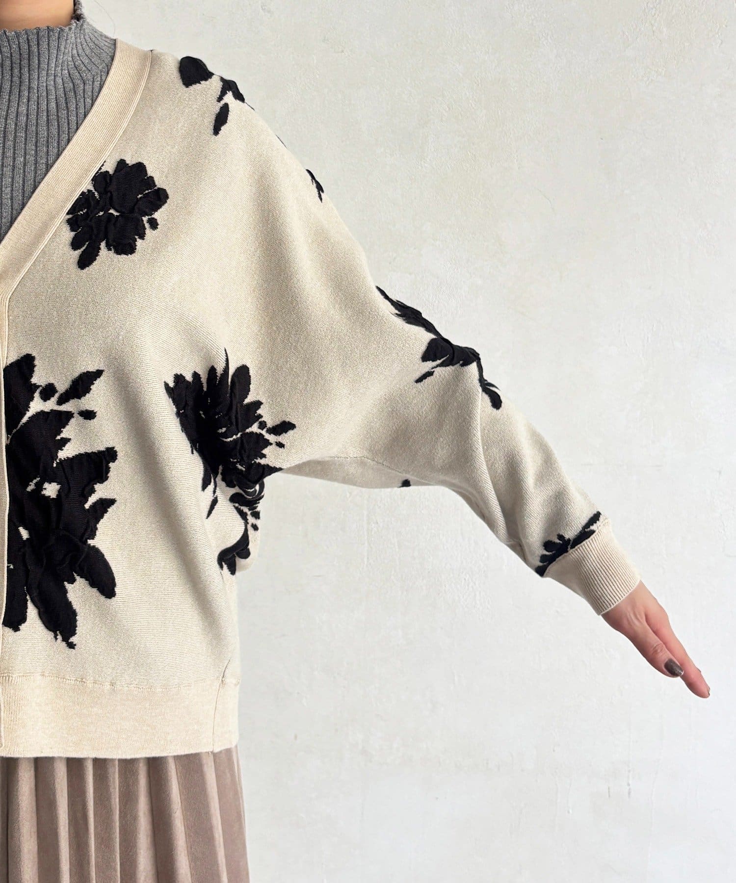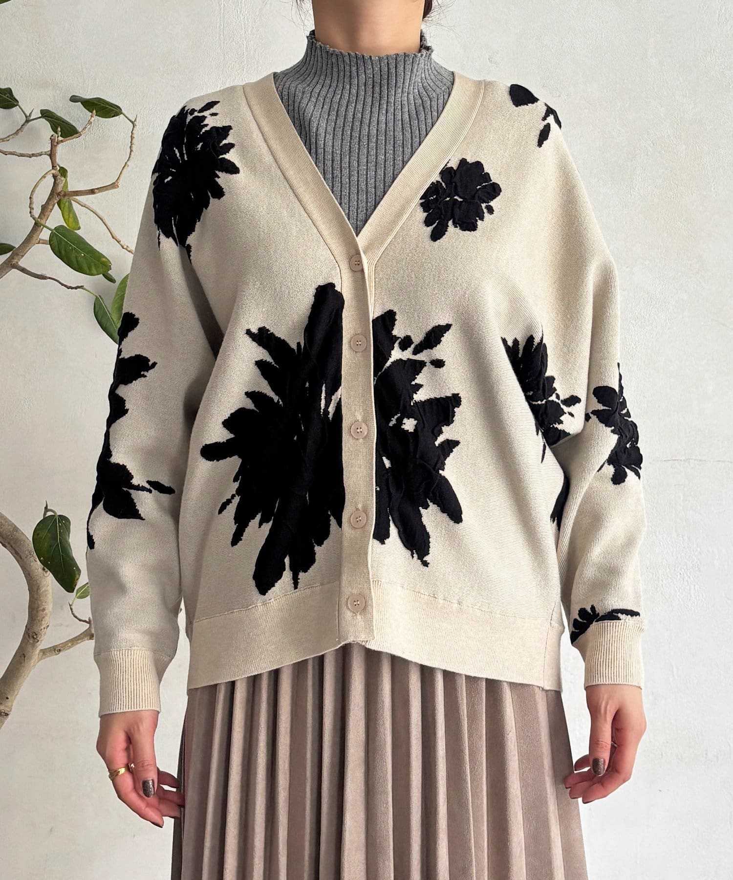 花柄が冬コーデにアクセント!主役級カーディガン