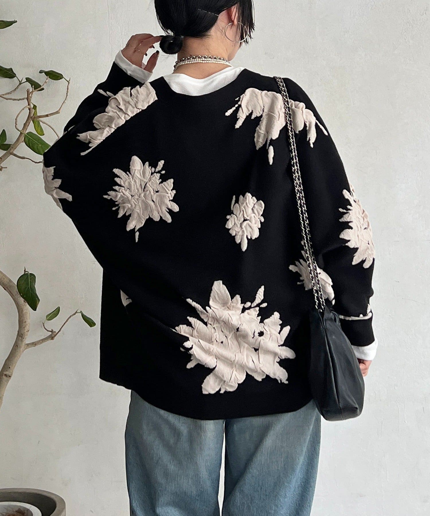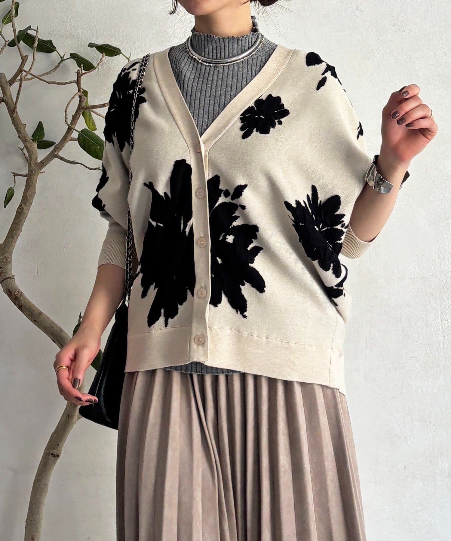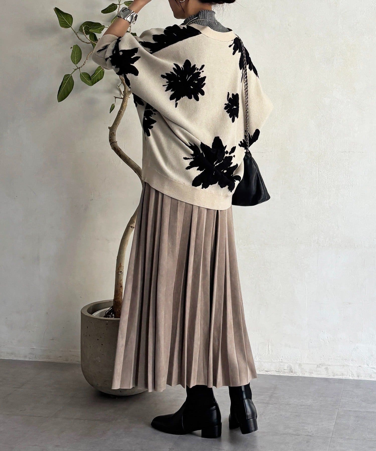 ・大判の花柄が暗くなりがちな冬コーデを華やかに◎