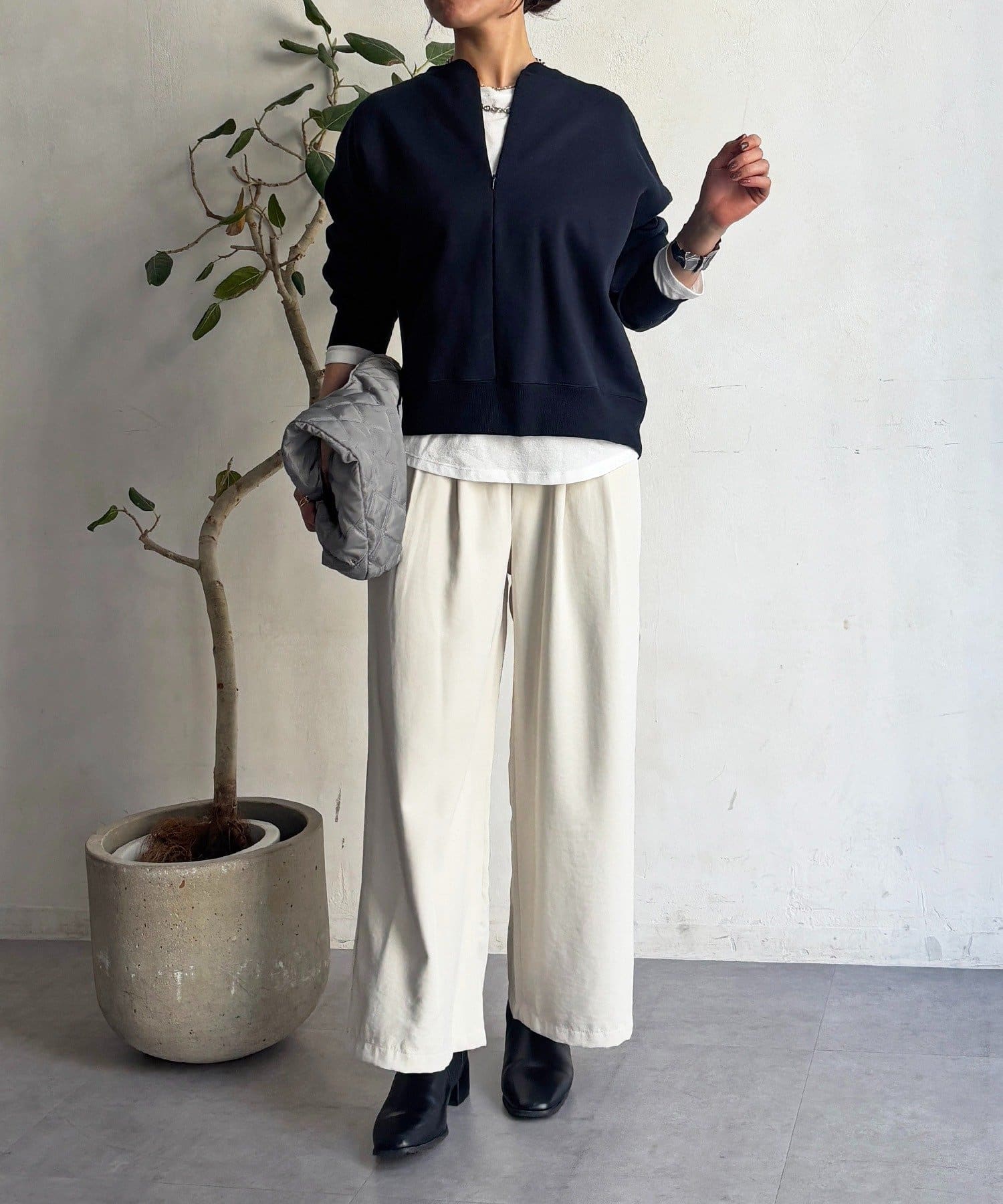 ・ジップの開閉で雰囲気を変えられて着回しパターンが豊富