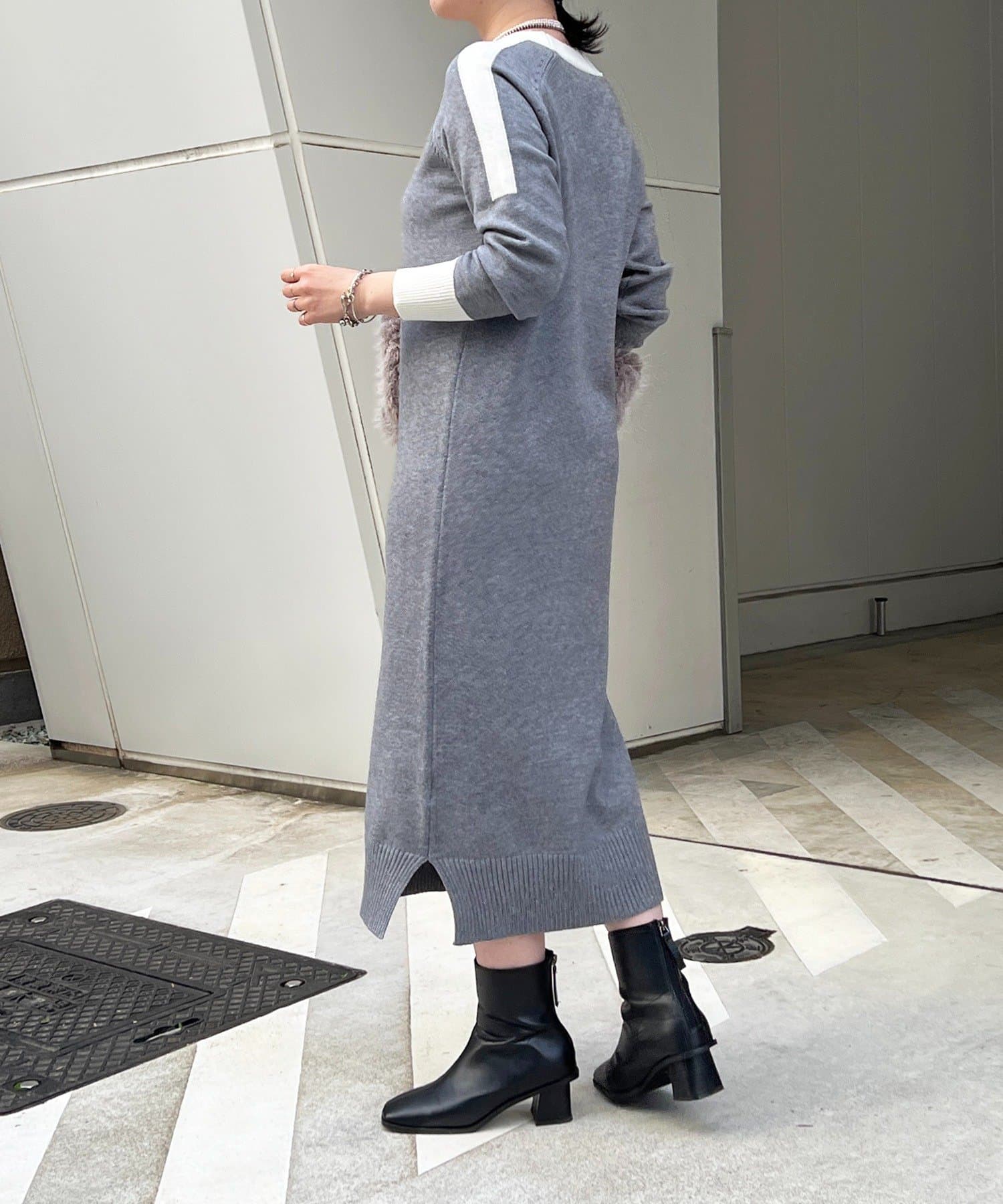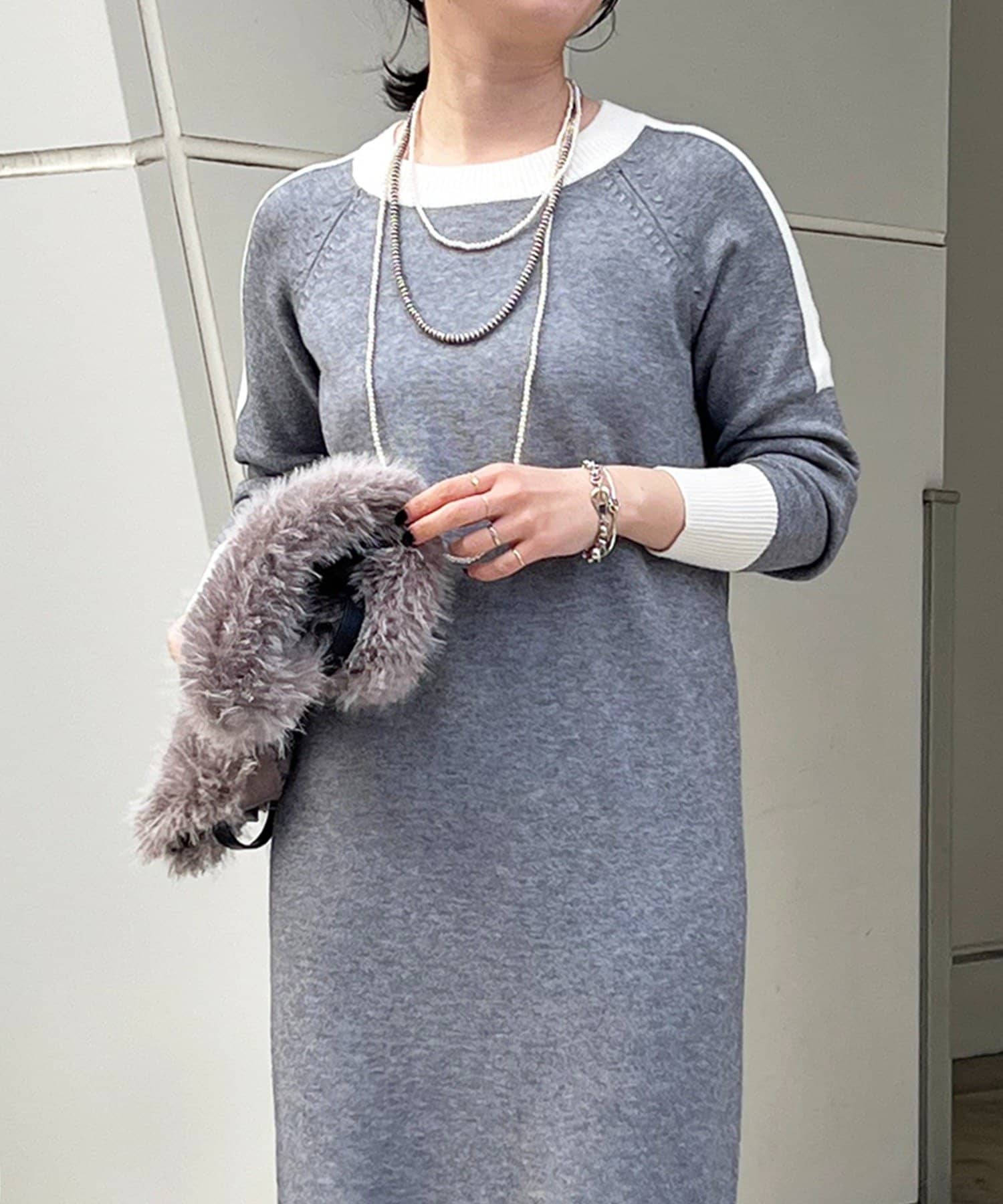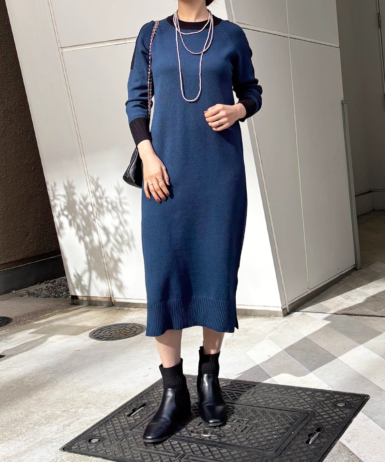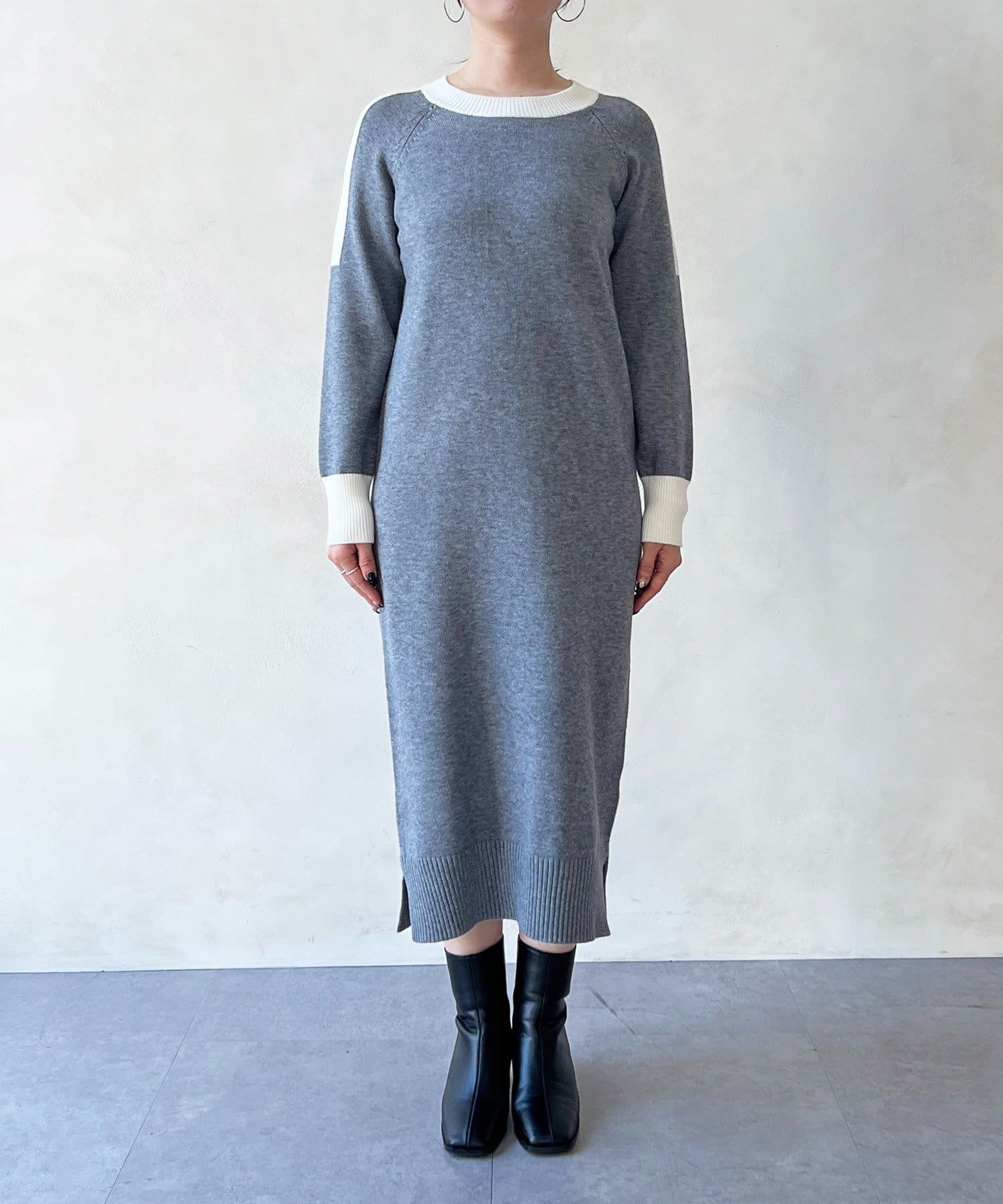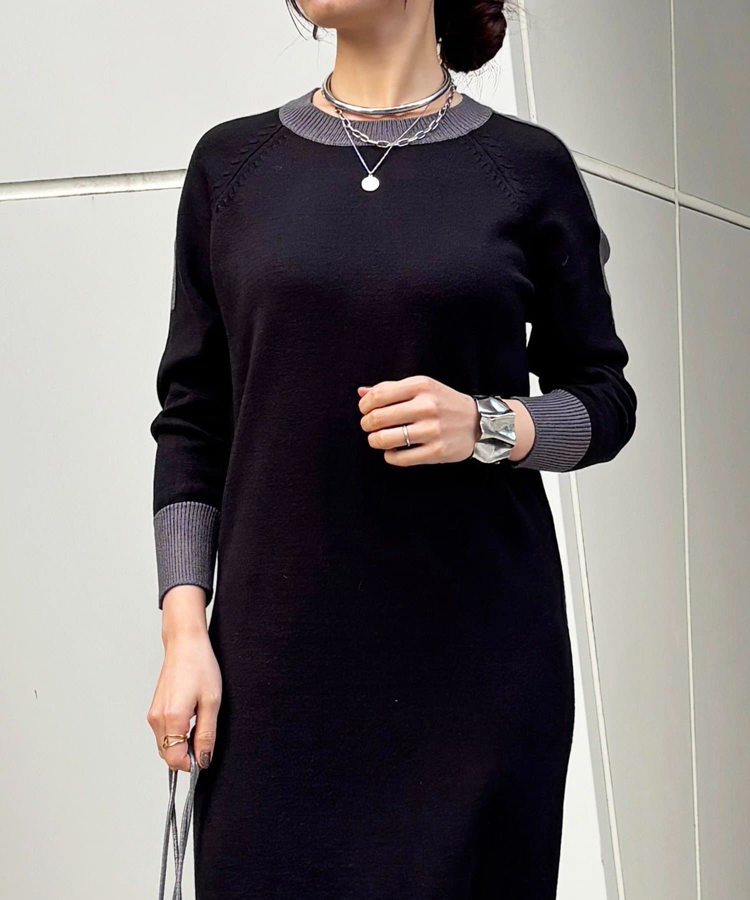 ・肩や袖の配色がこなれ感のあるニットワンピース