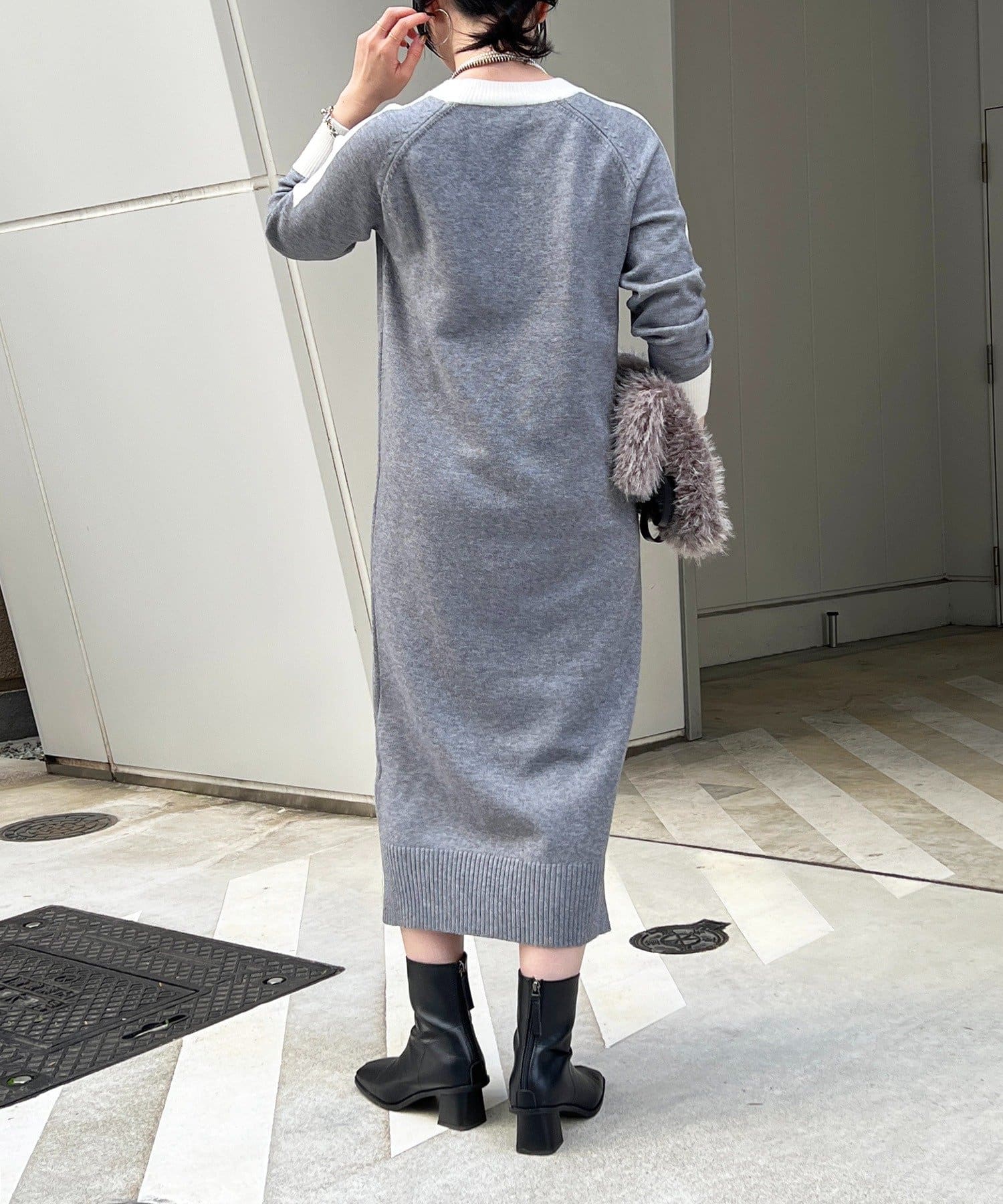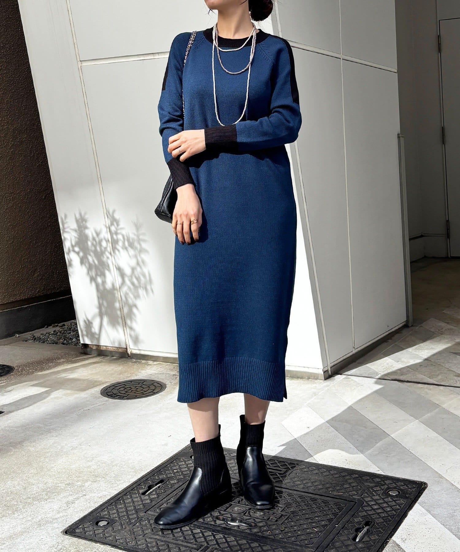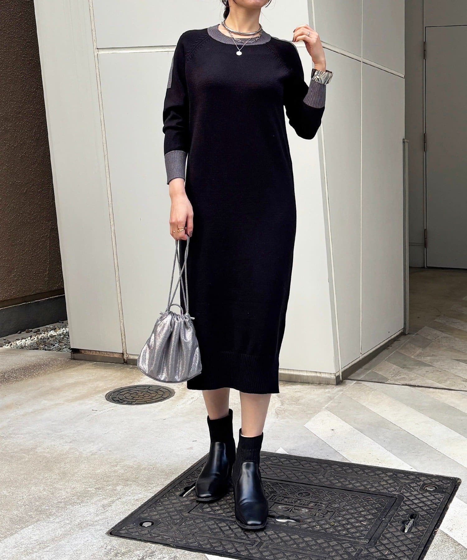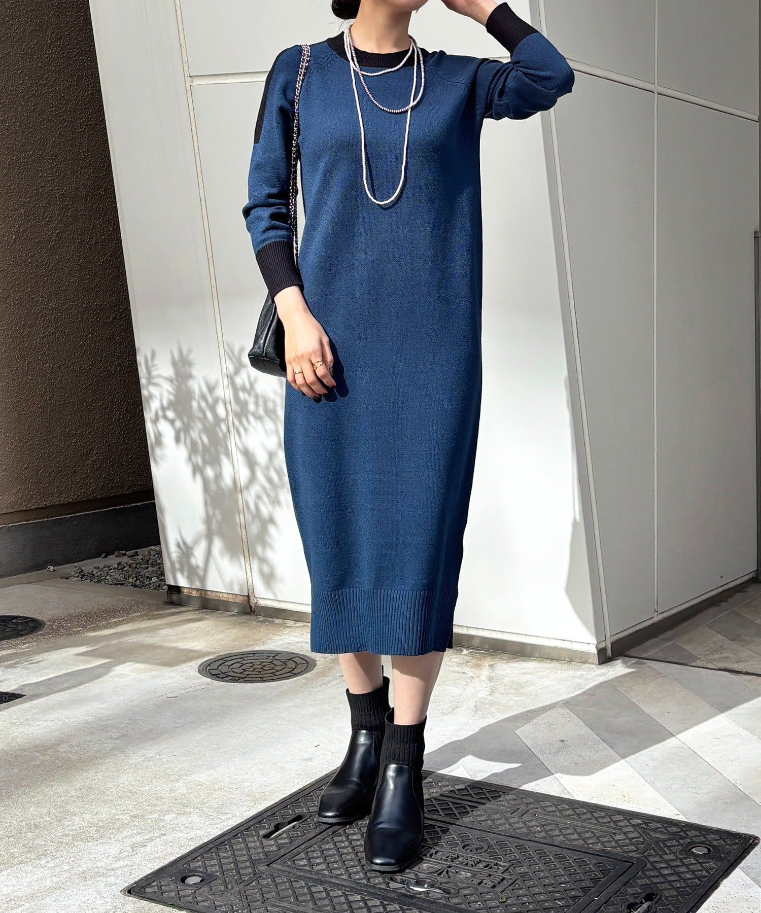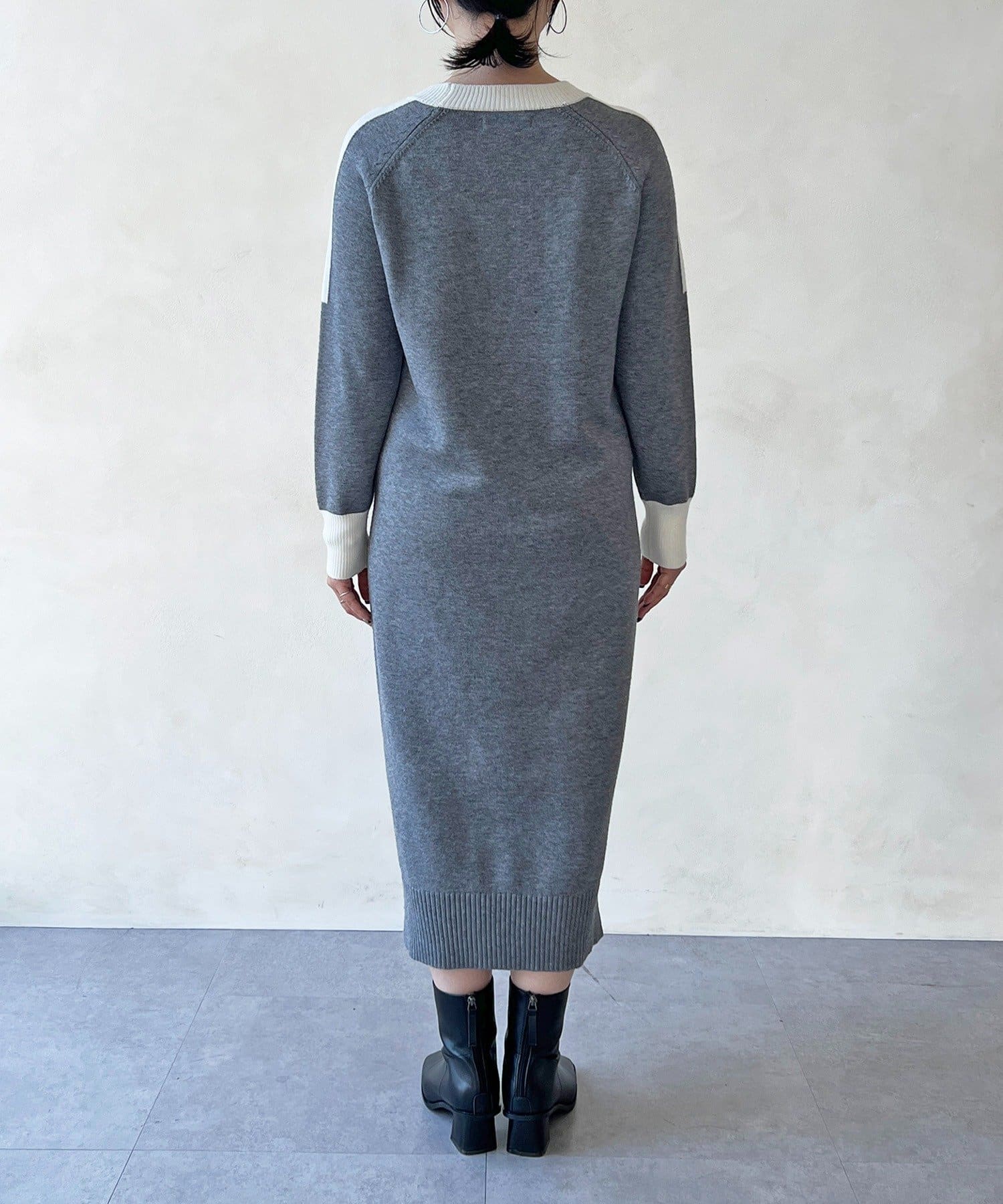 ・肩や袖の配色がこなれ感のあるニットワンピース
