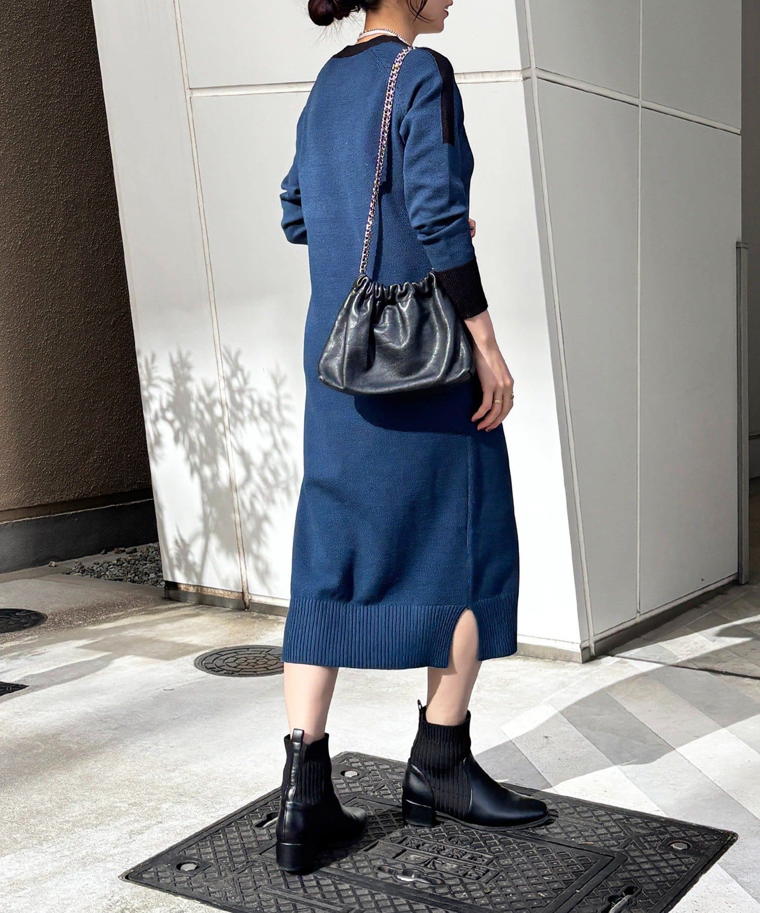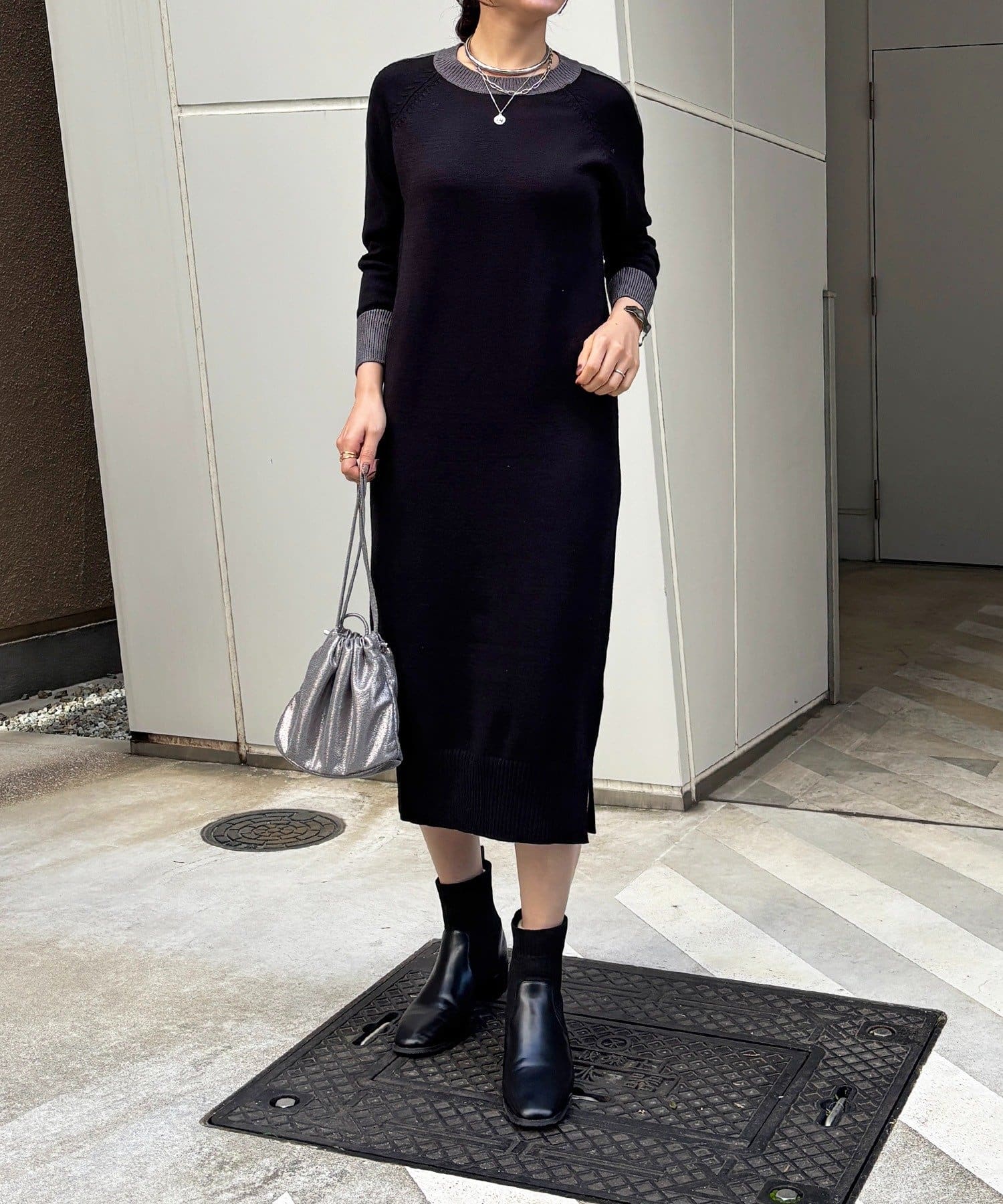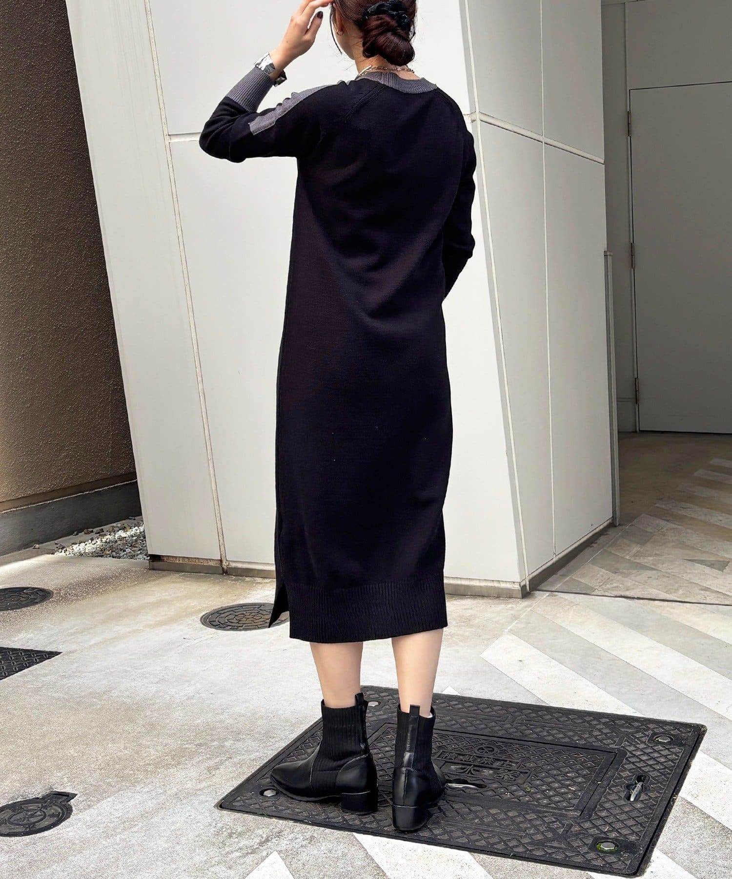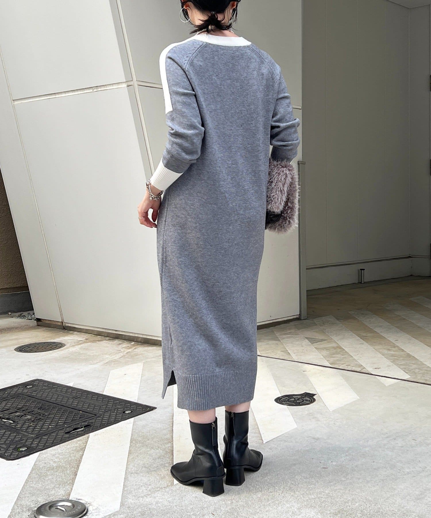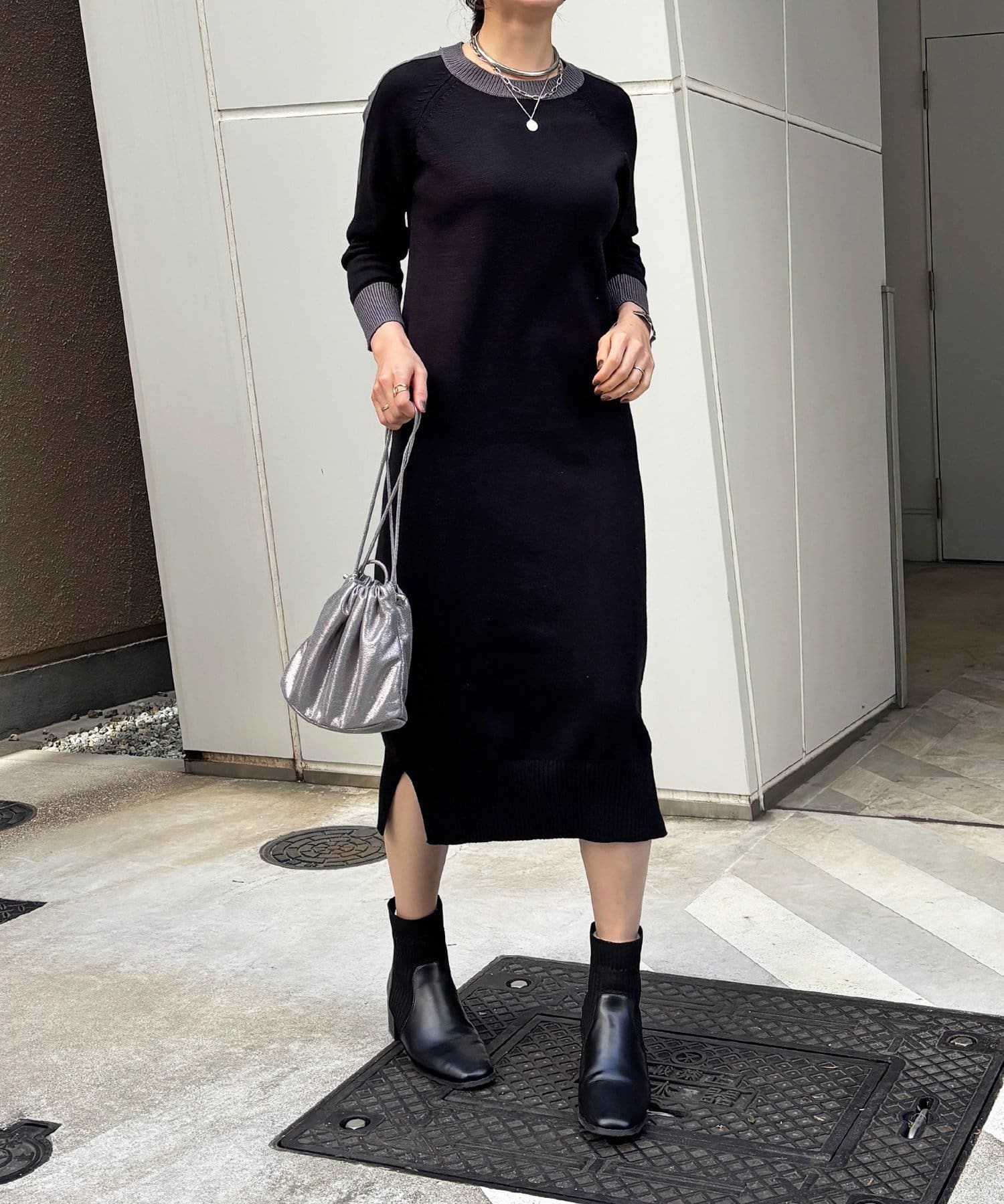 ・肩や袖の配色がこなれ感のあるニットワンピース