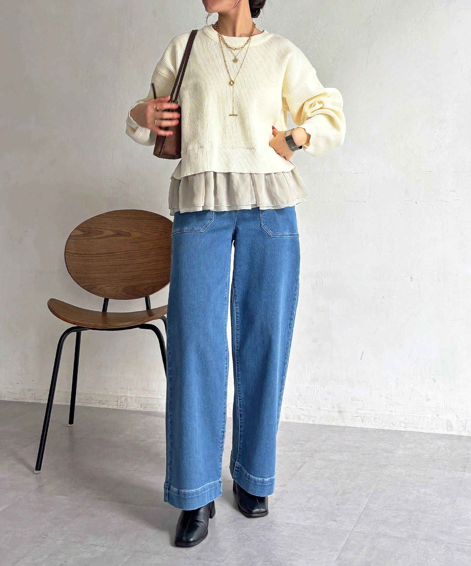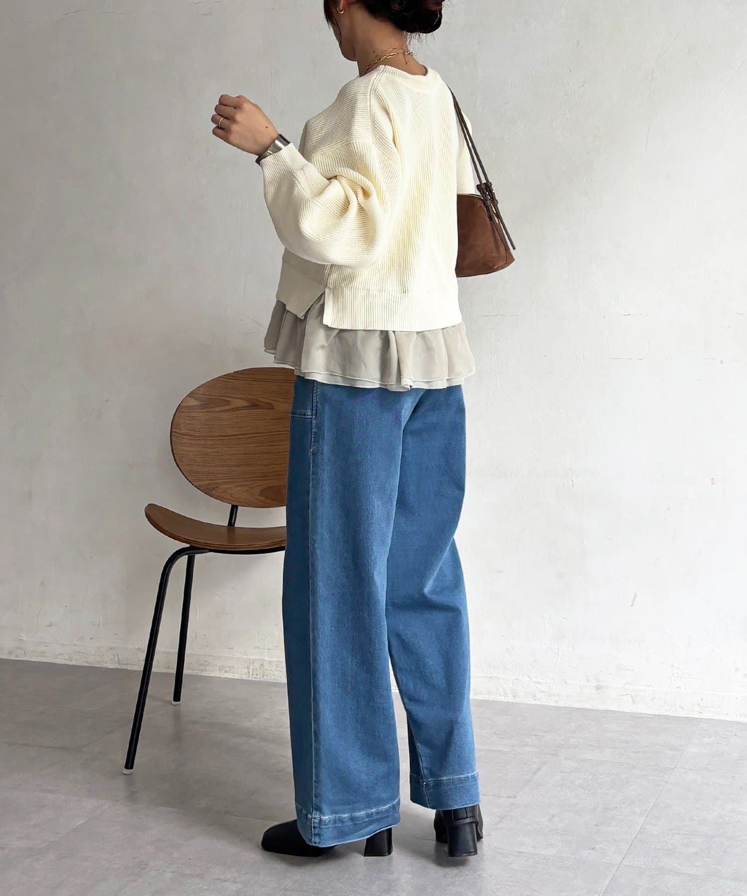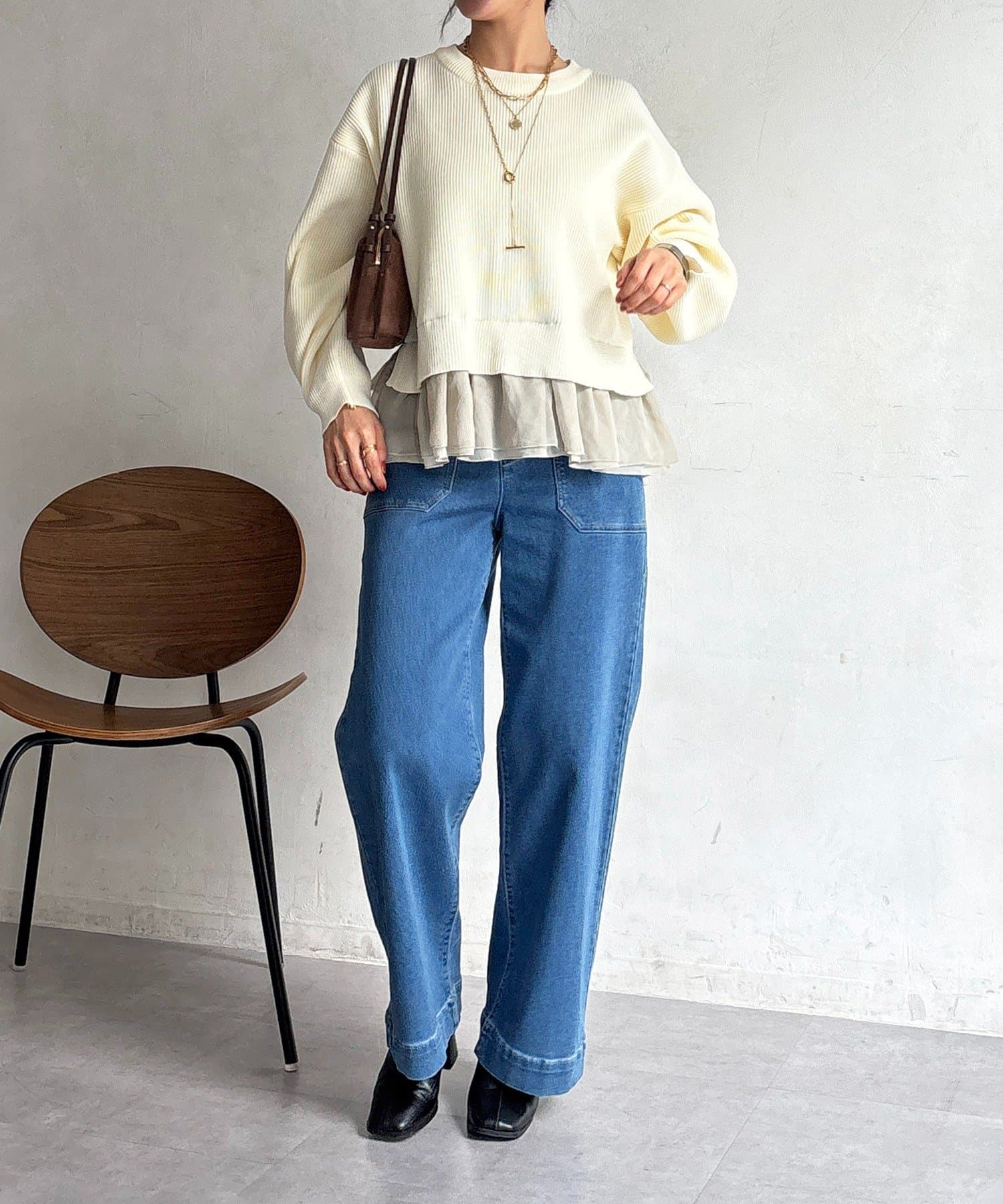 裾のレイヤード風デザインがトレンドムードたっぷりのプルオーバー