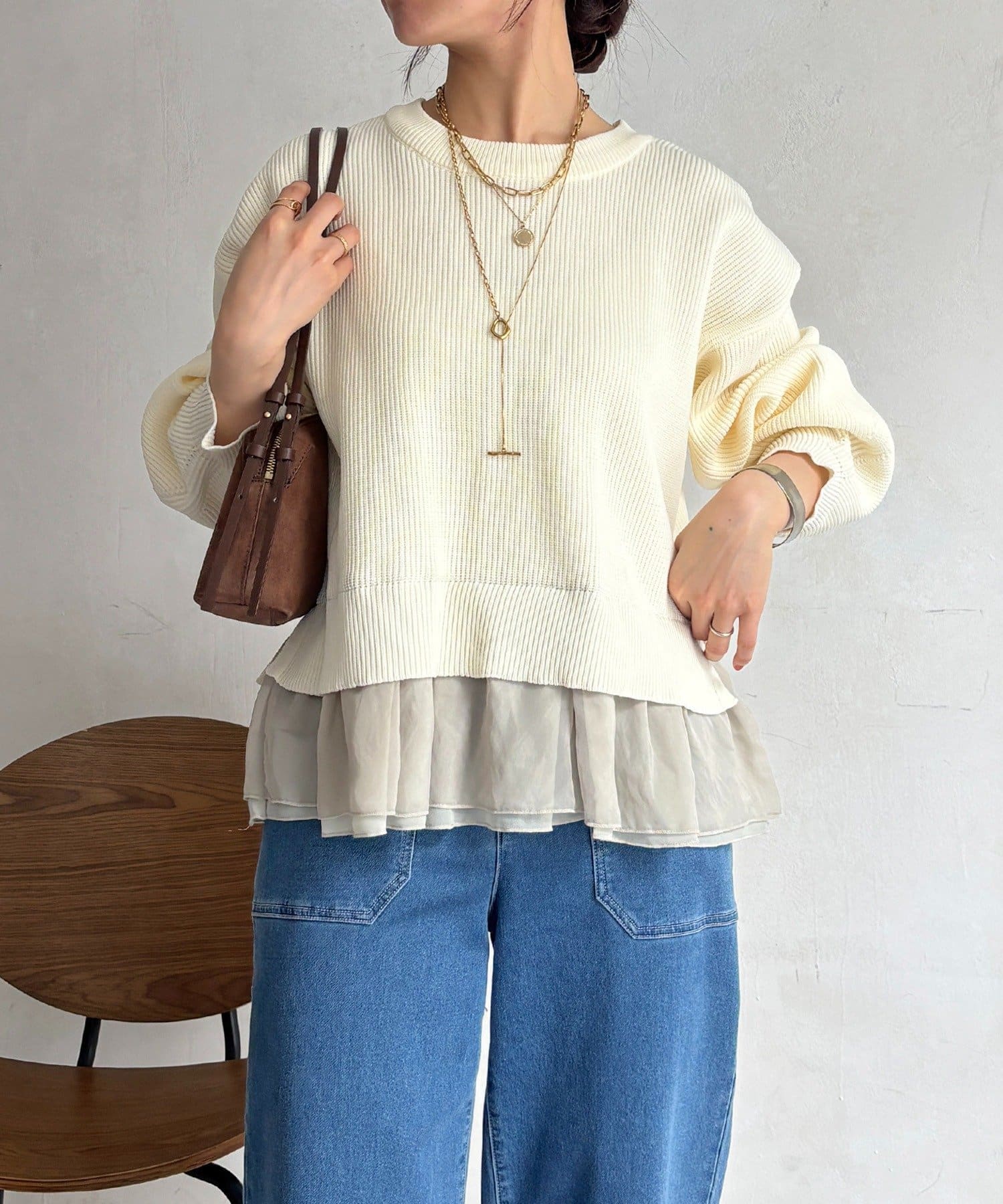 TOP > Croisiere > レディース > トップス > ニット/セーター > 裾レースニットレイヤードプルオーバー