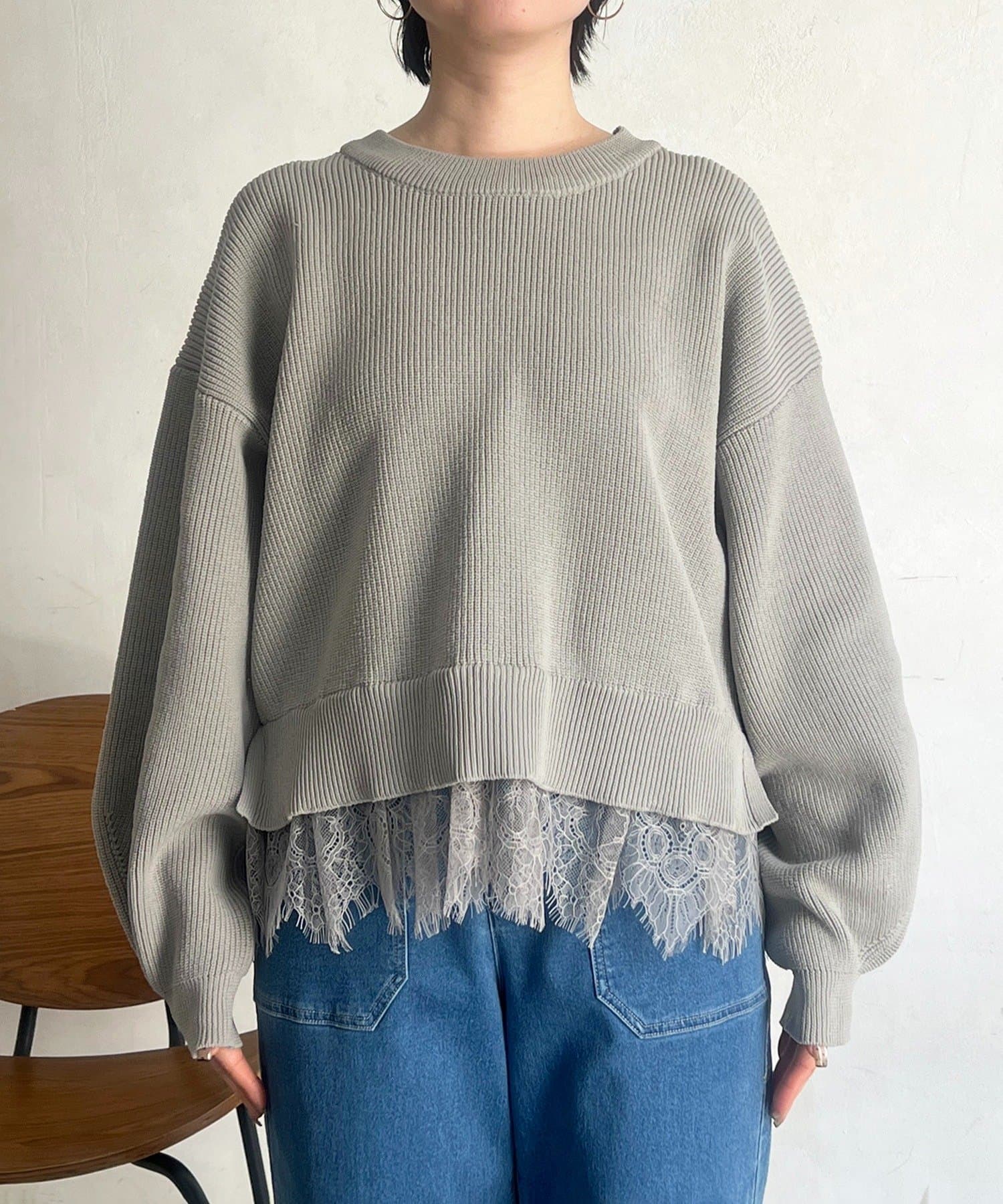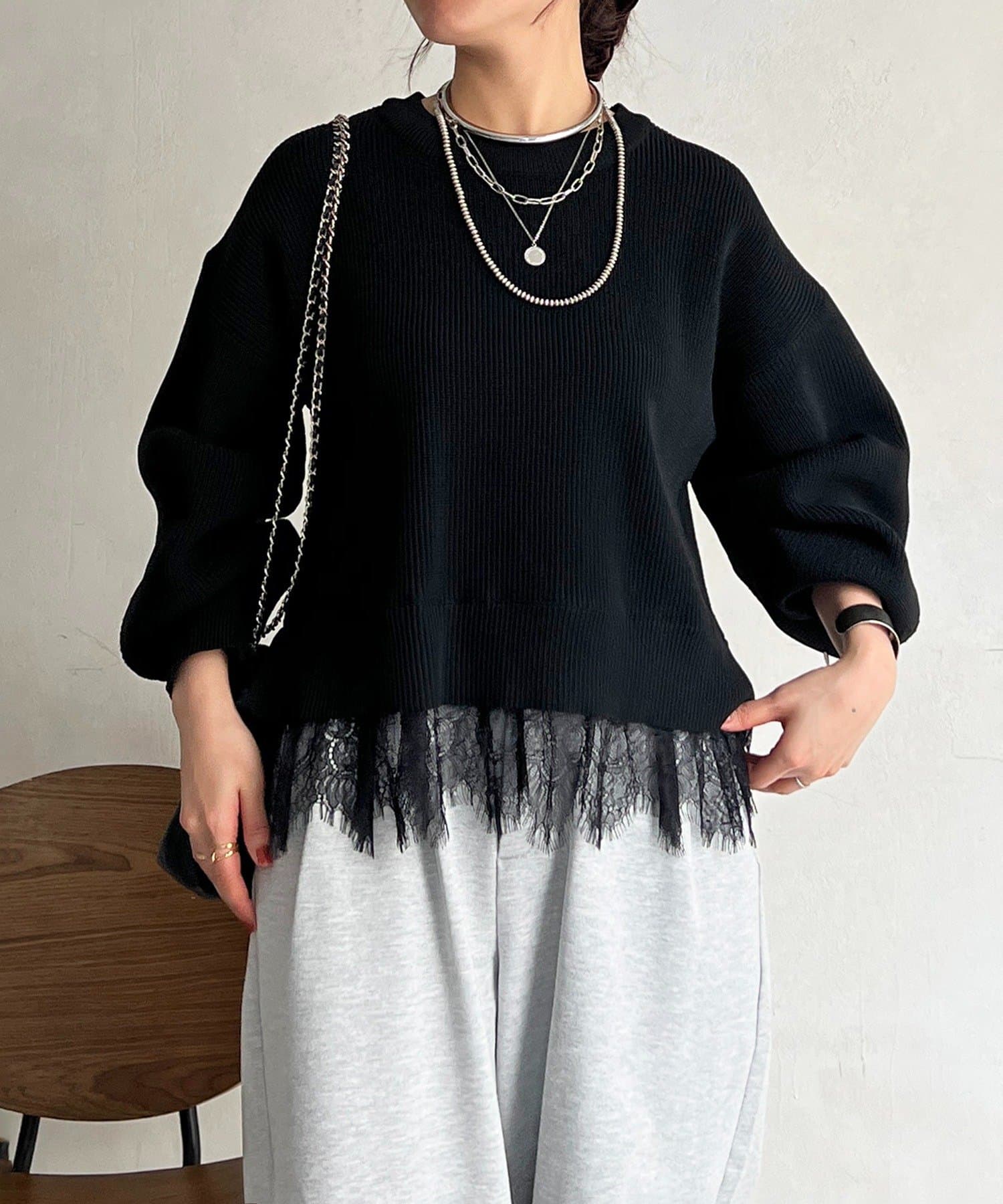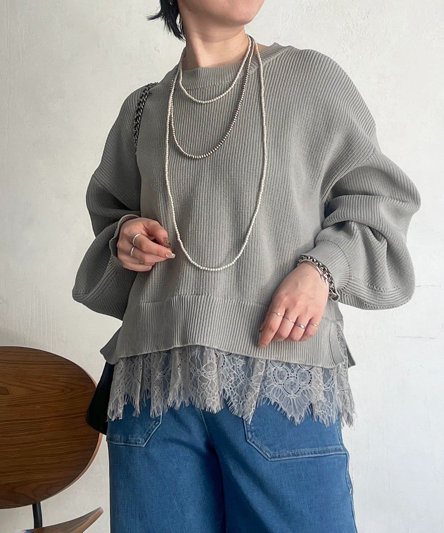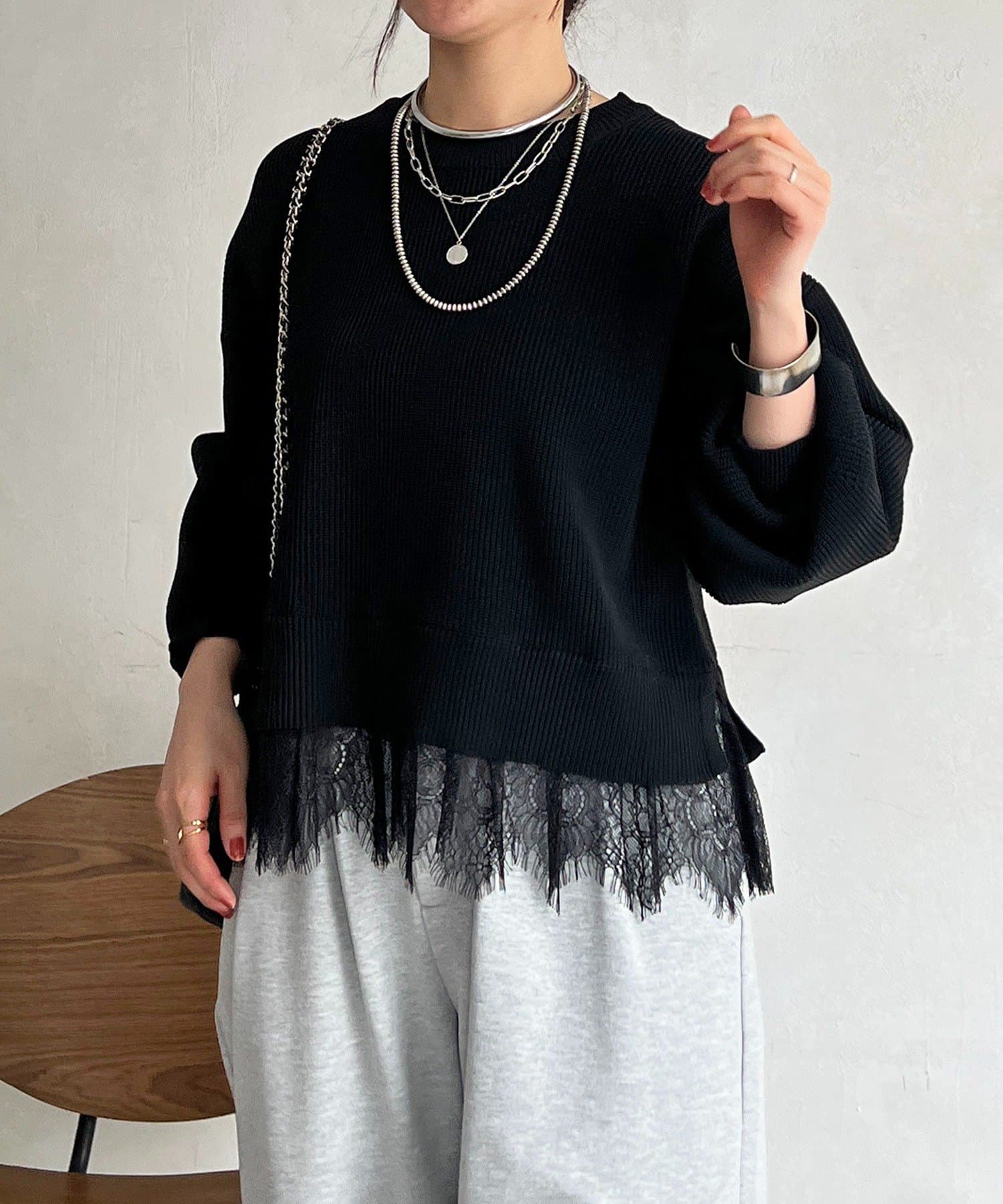 Croisiere(クロジエール) 裾レースニットレイヤードプルオーバー