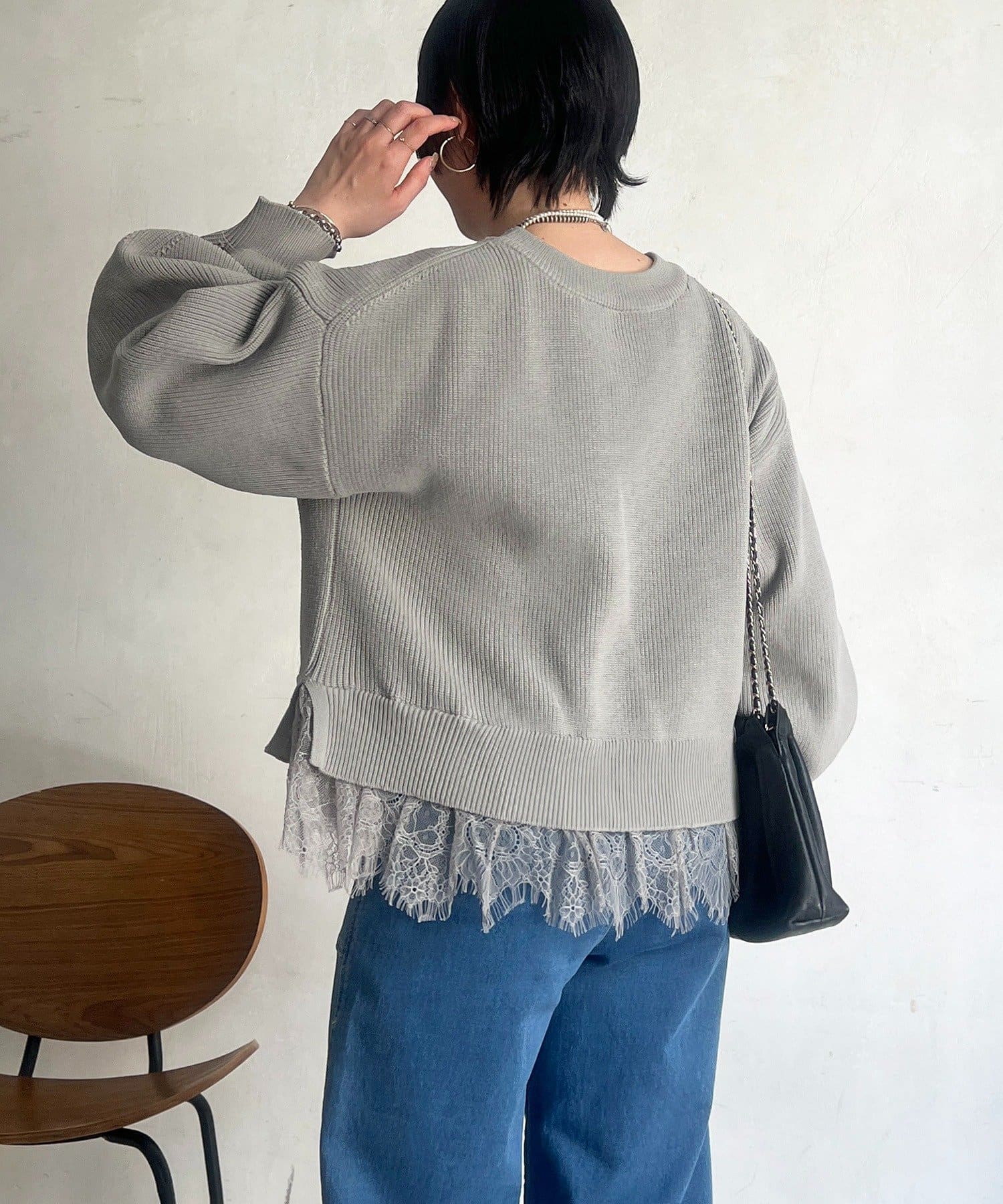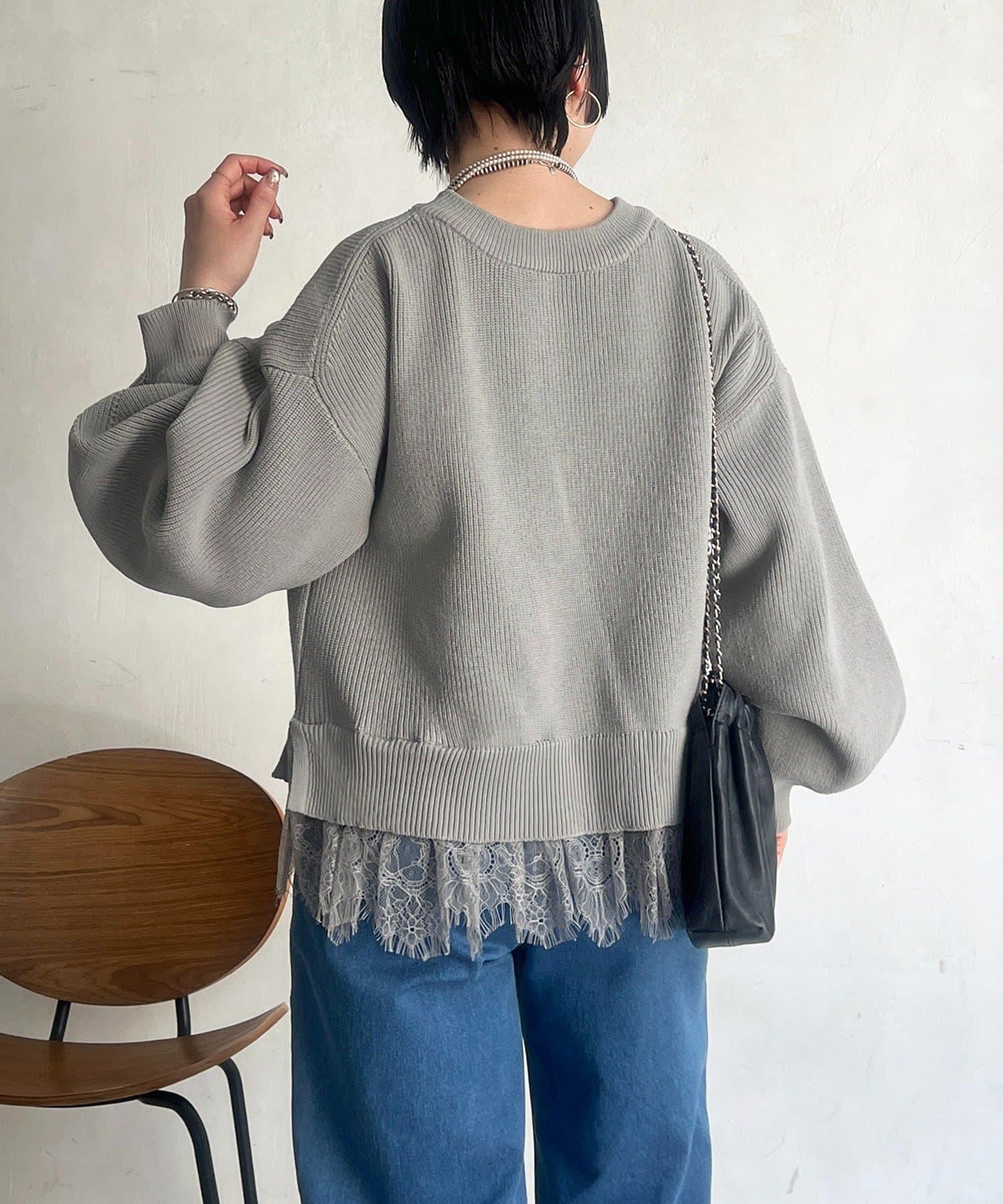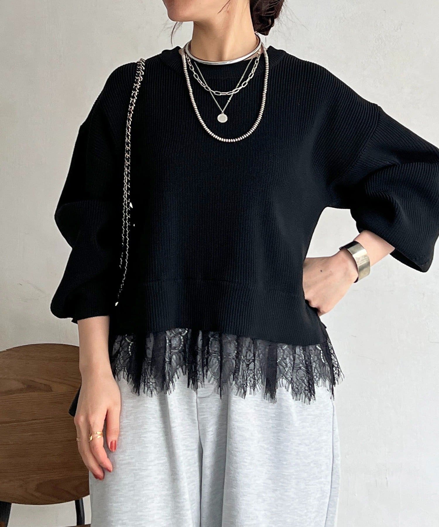 Croisiere(クロジエール) 裾レースニットレイヤードプルオーバー