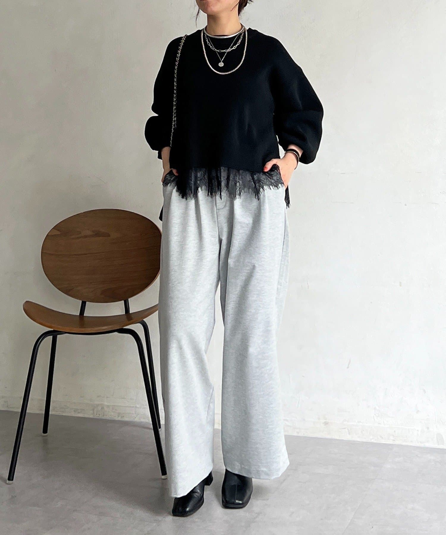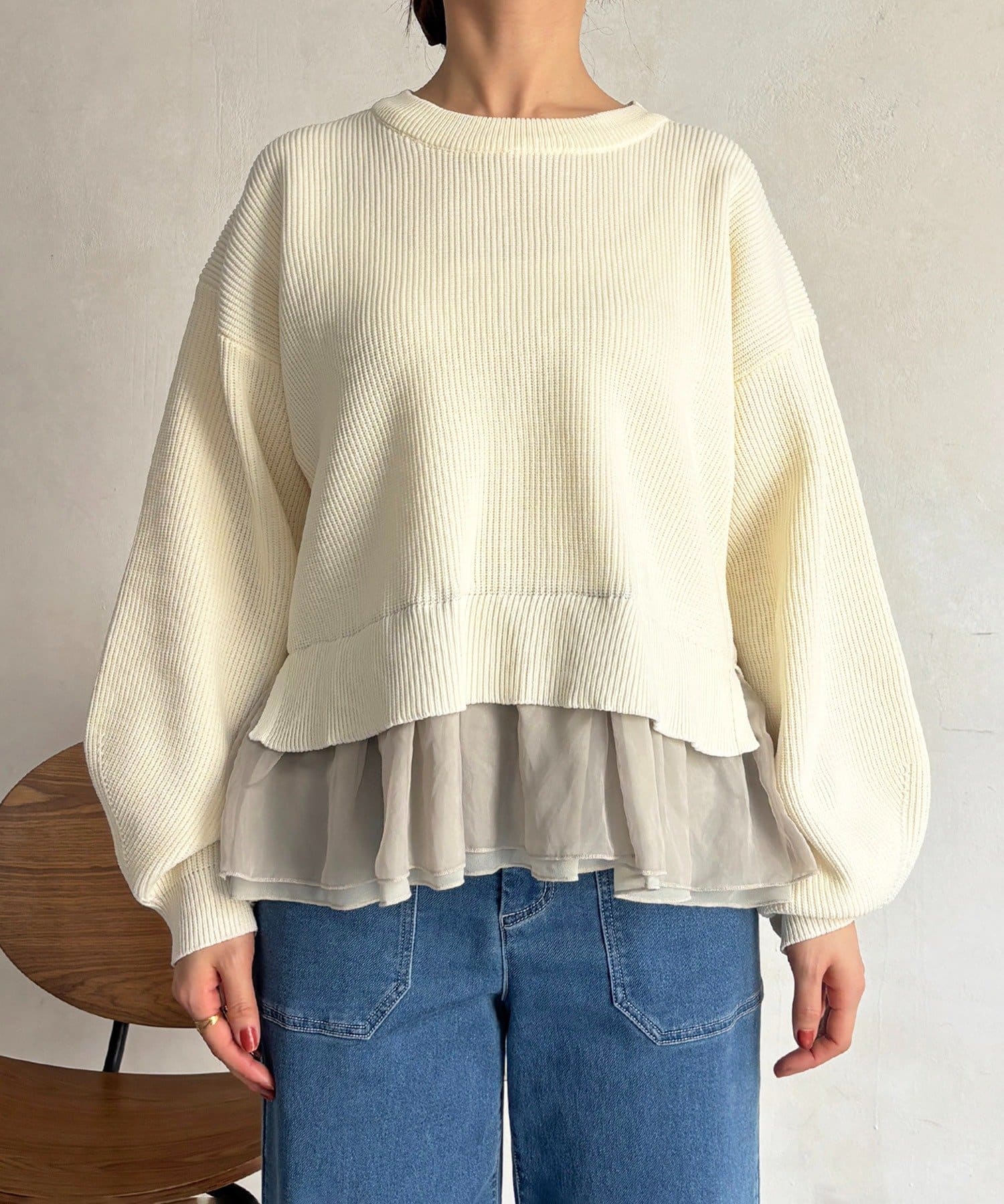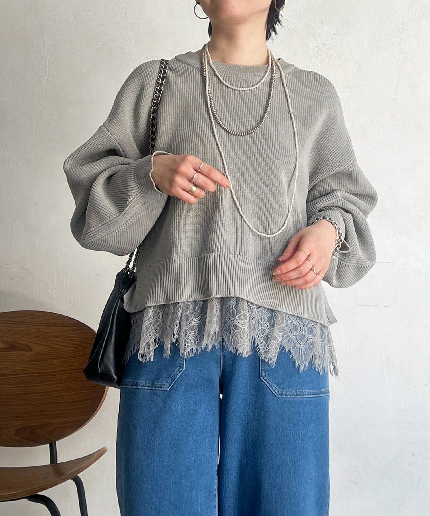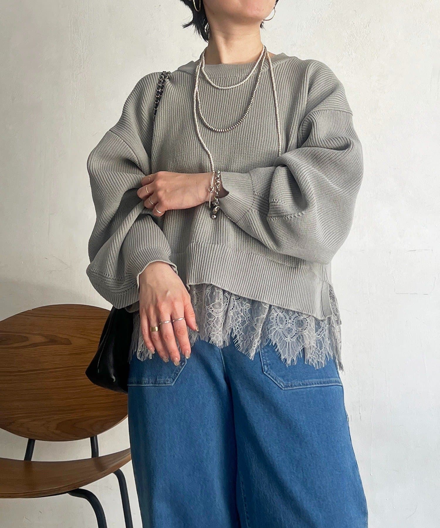 Croisiere(クロジエール) 裾レースニットレイヤードプルオーバー