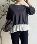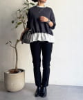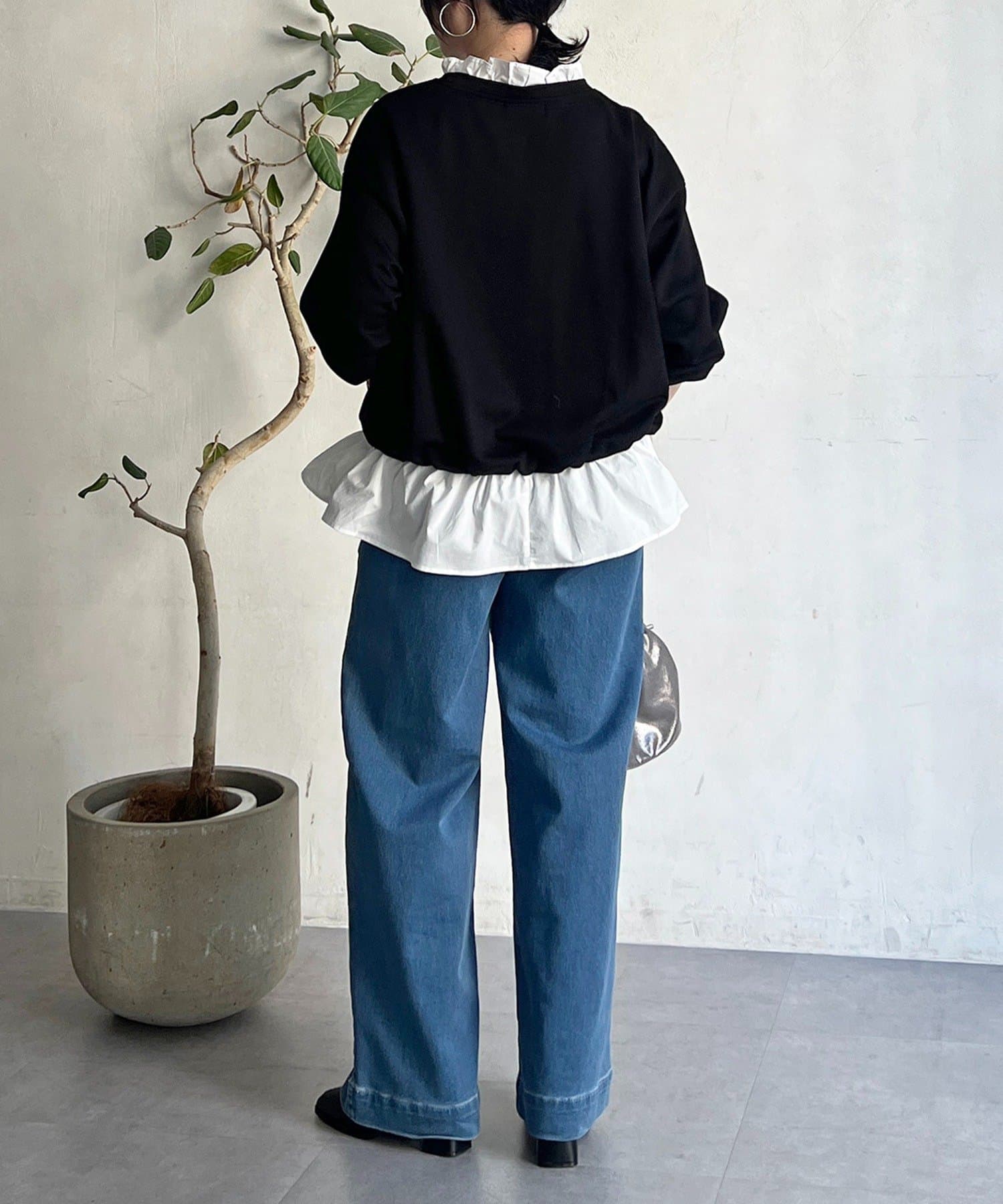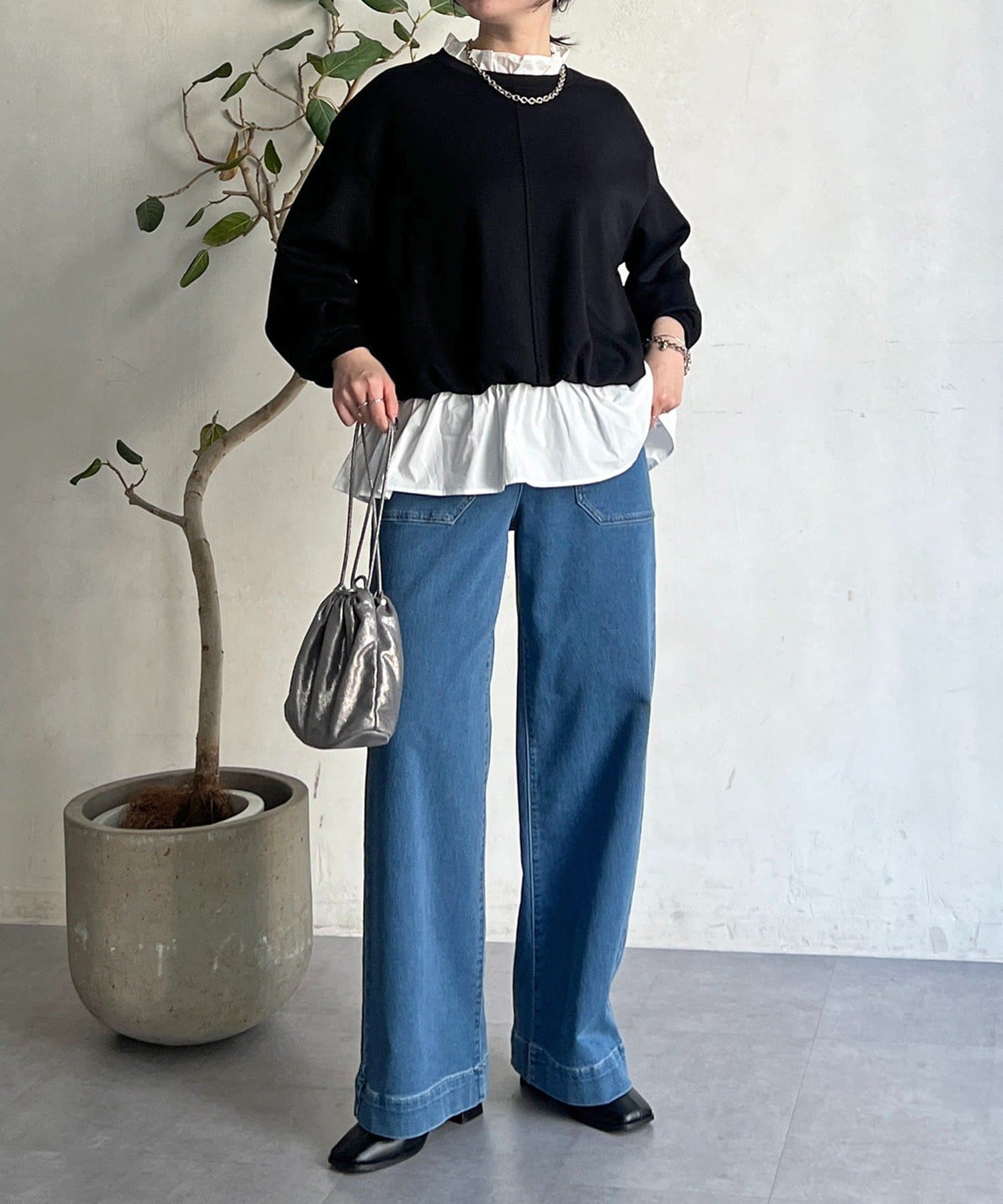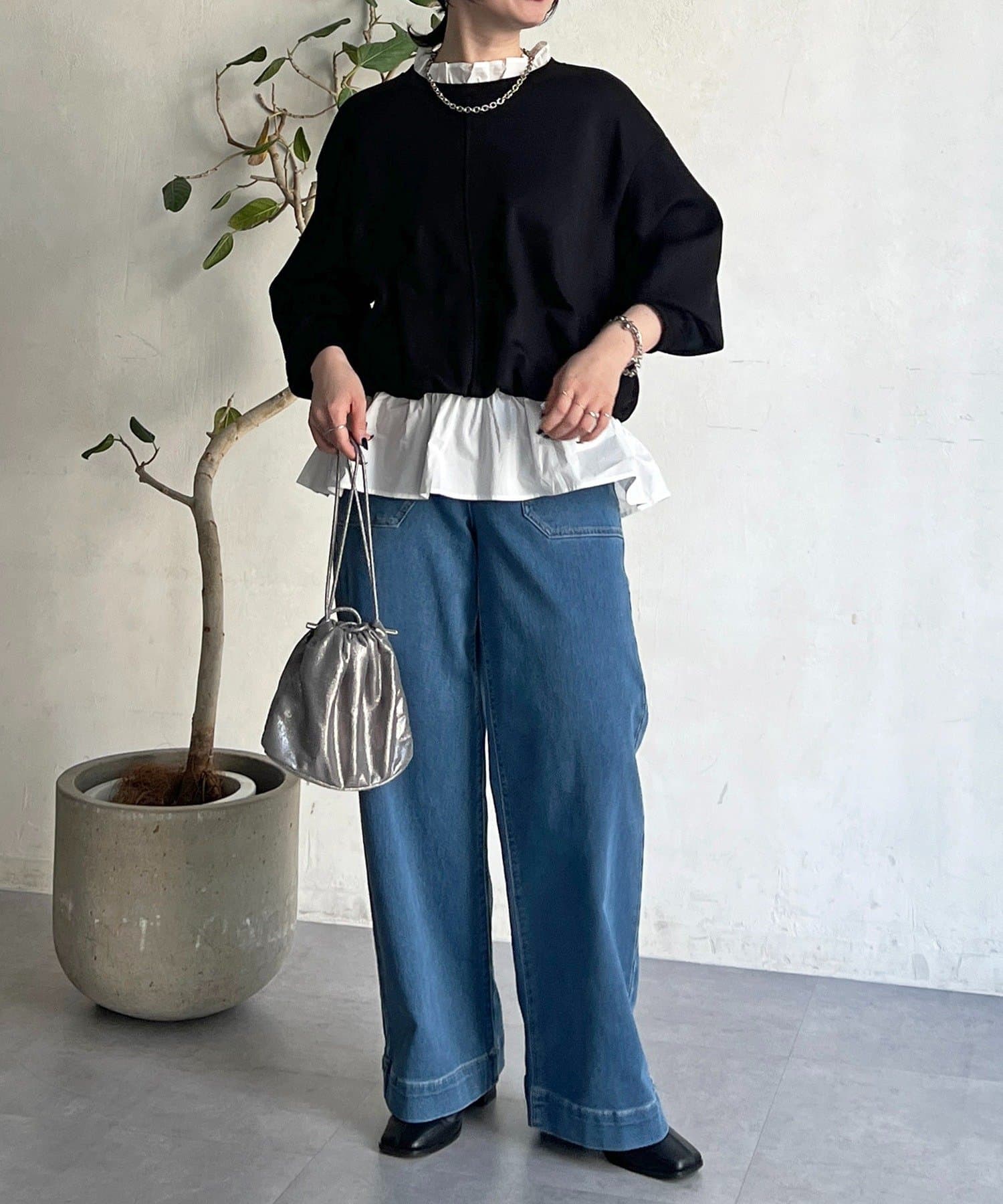 ・フリルの女性らしさとカジュアル素材が絶妙な大人フェミニンに◎