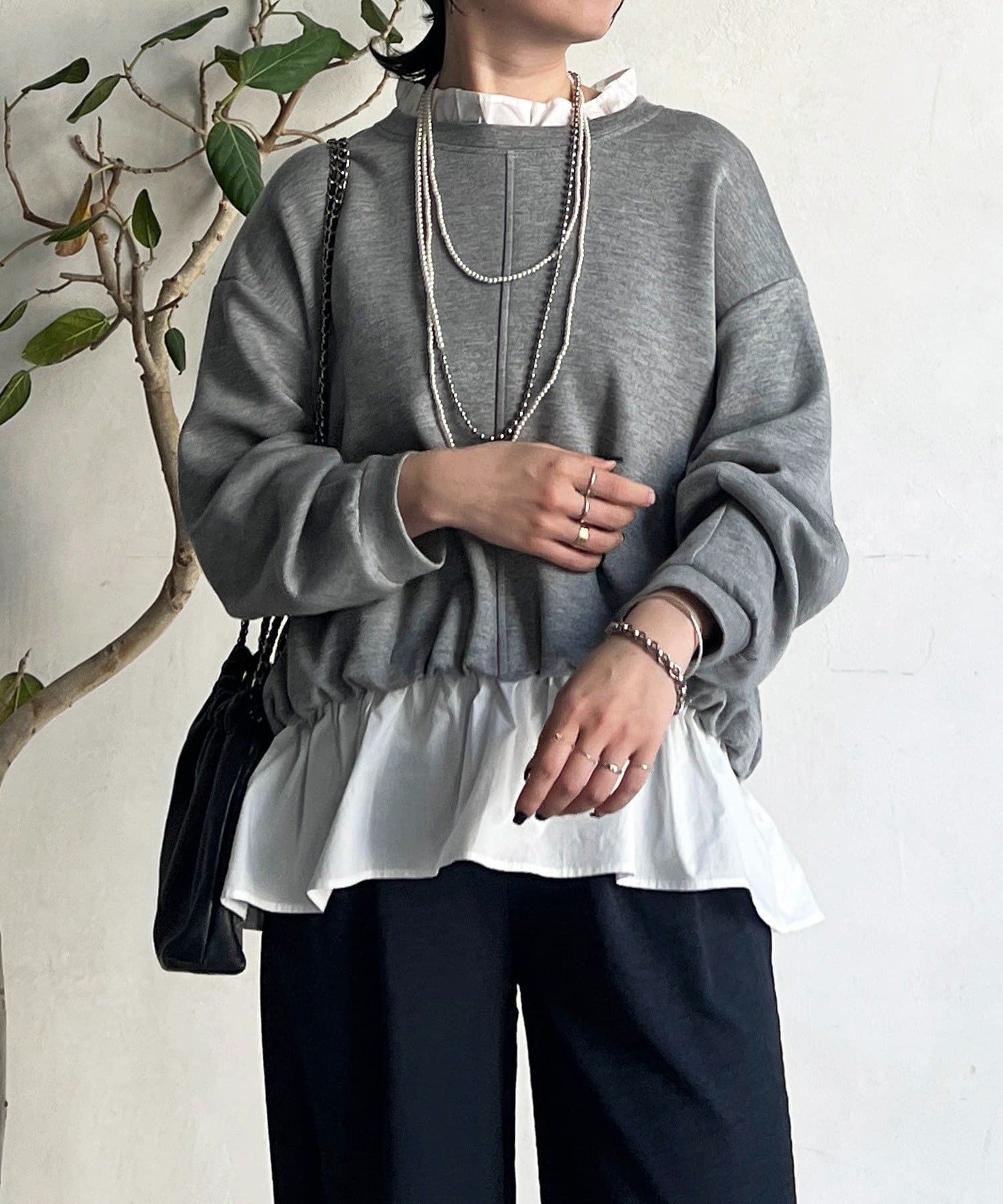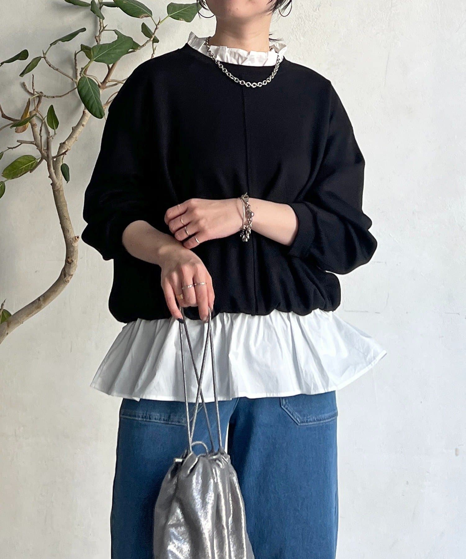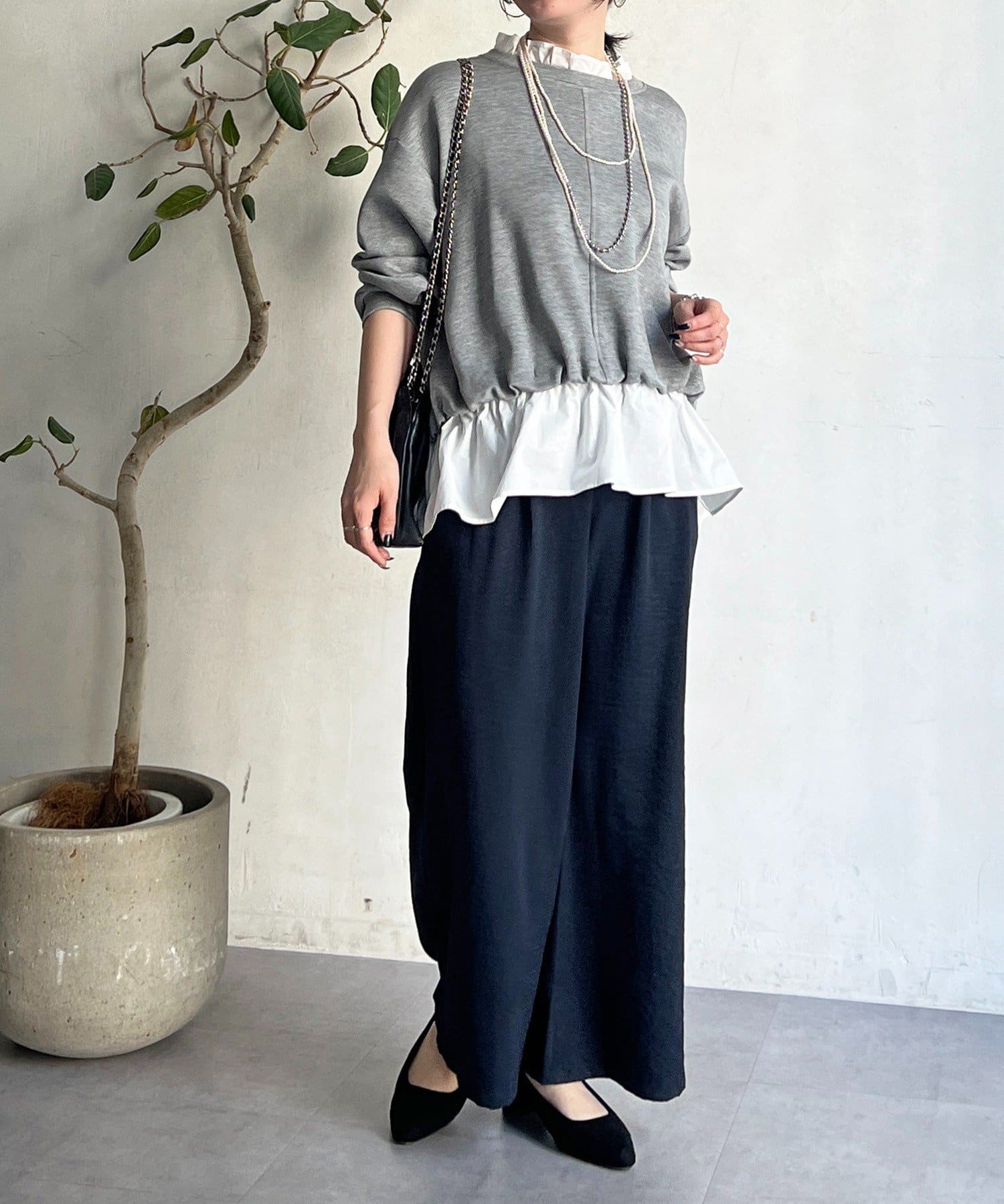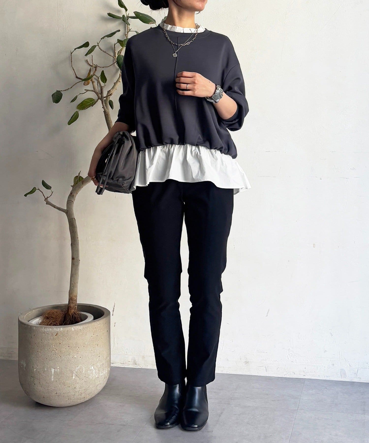・トレンド感のある異素材レイヤードスタイルが1枚で完成