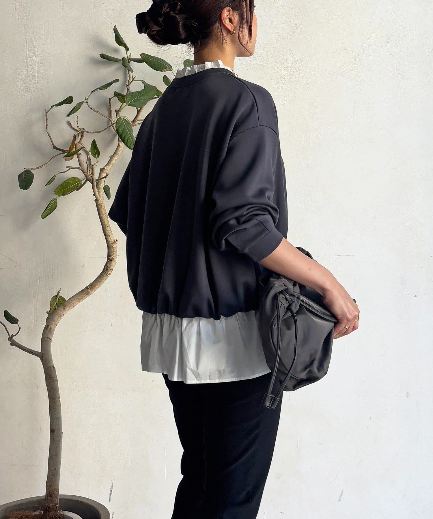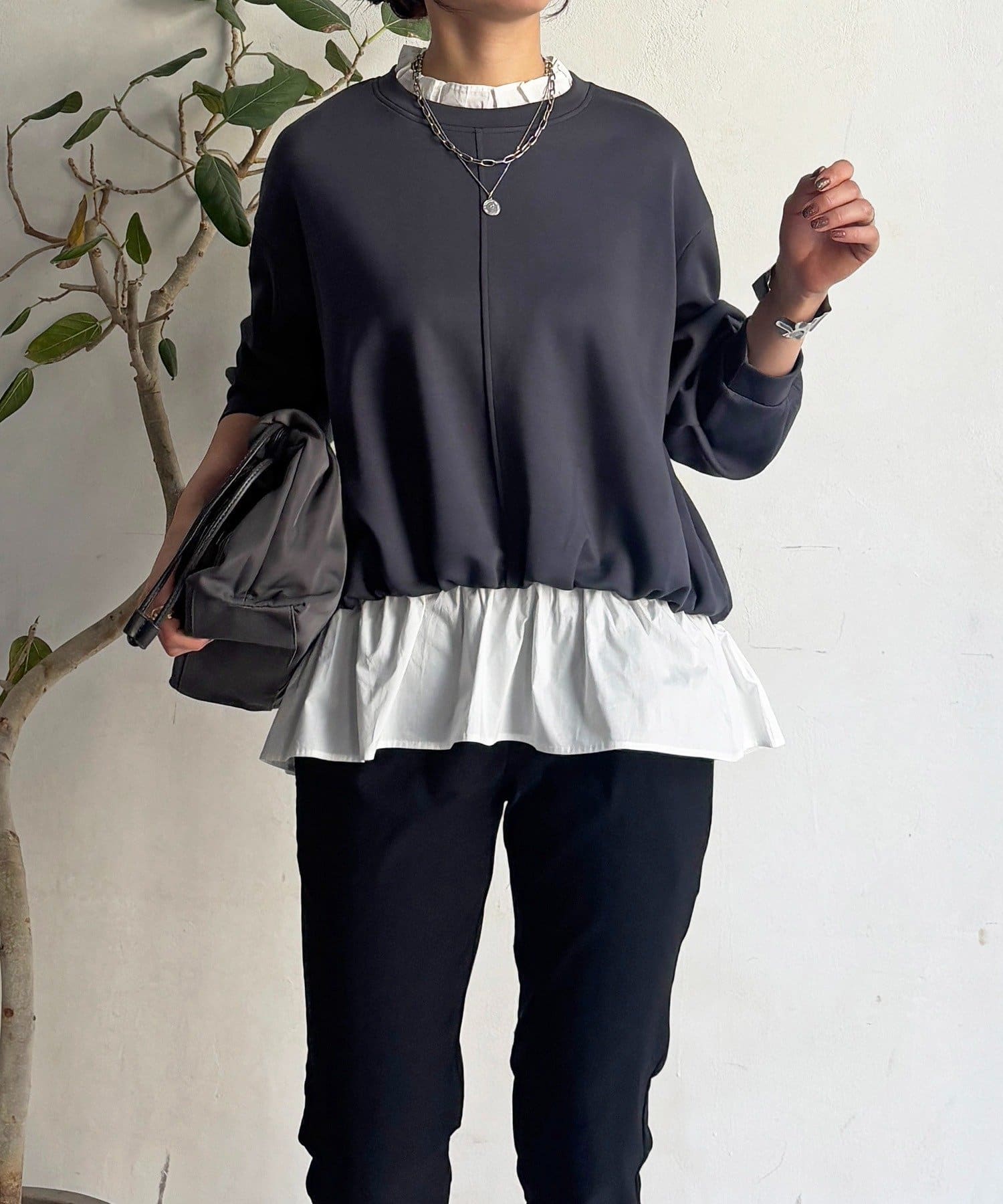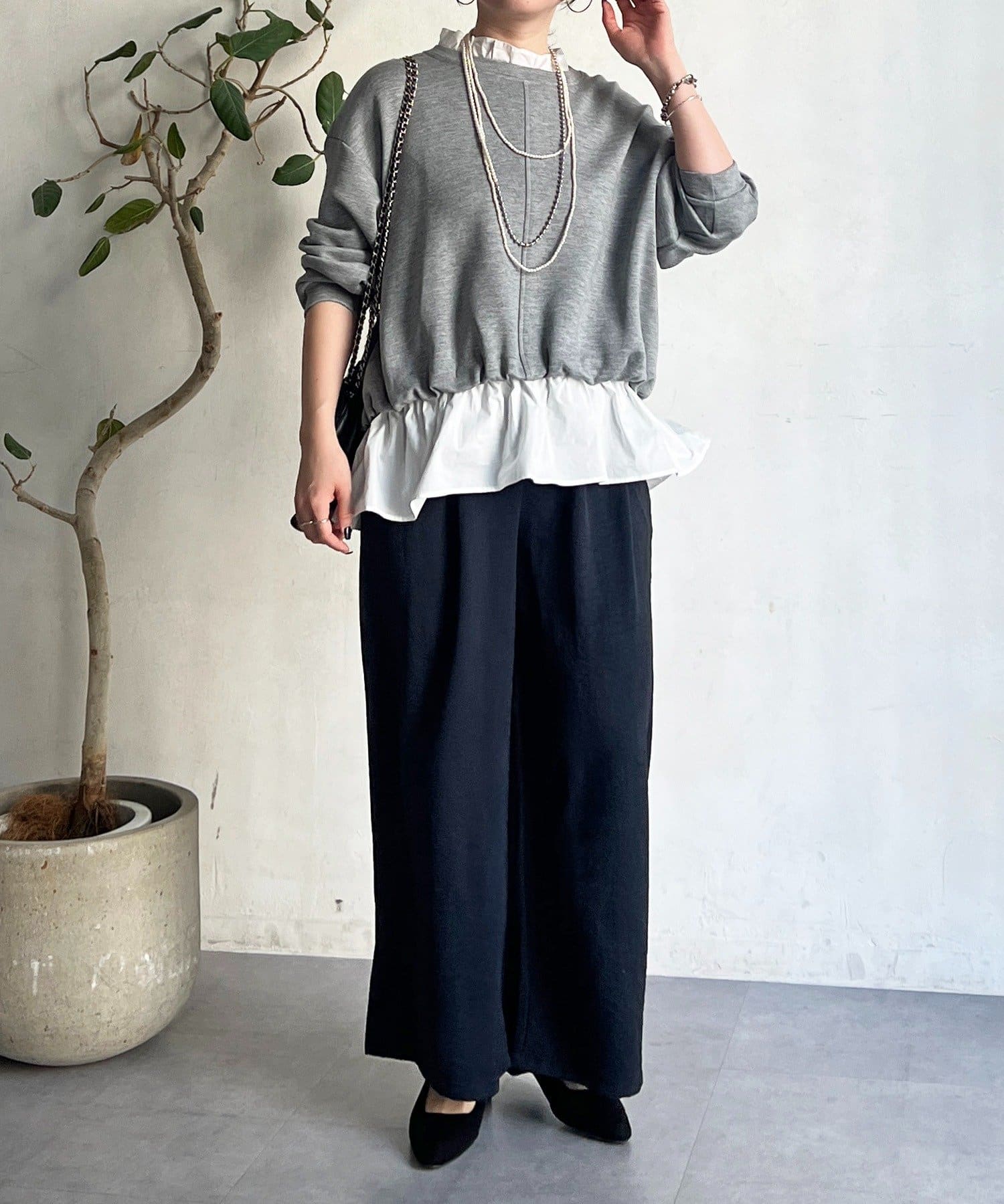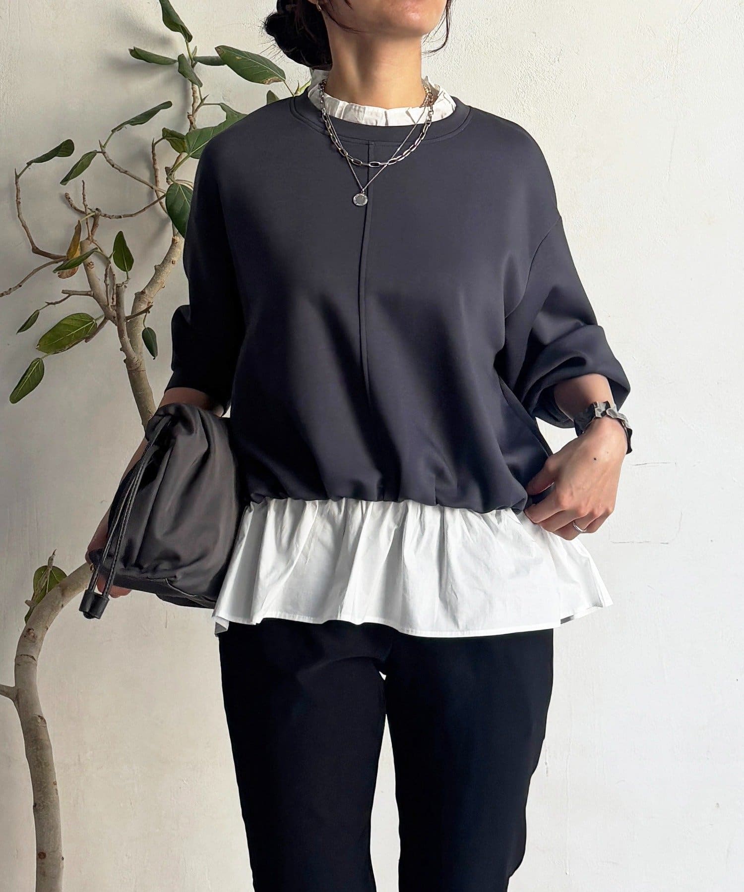 ・トレンド感のある異素材レイヤードスタイルが1枚で完成