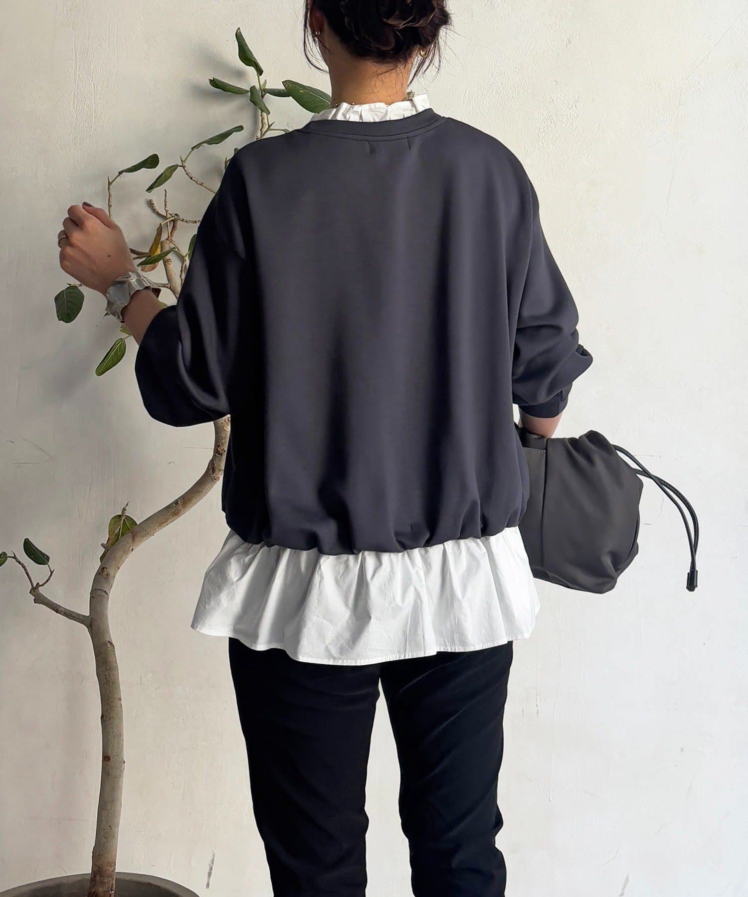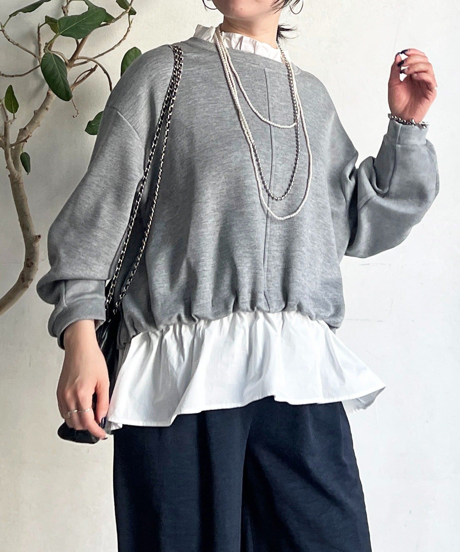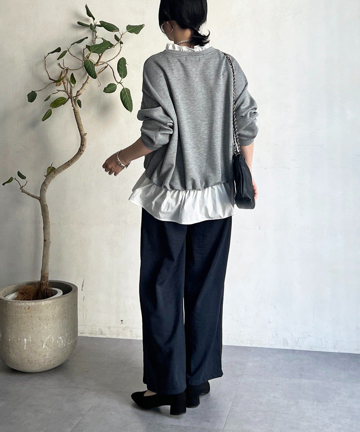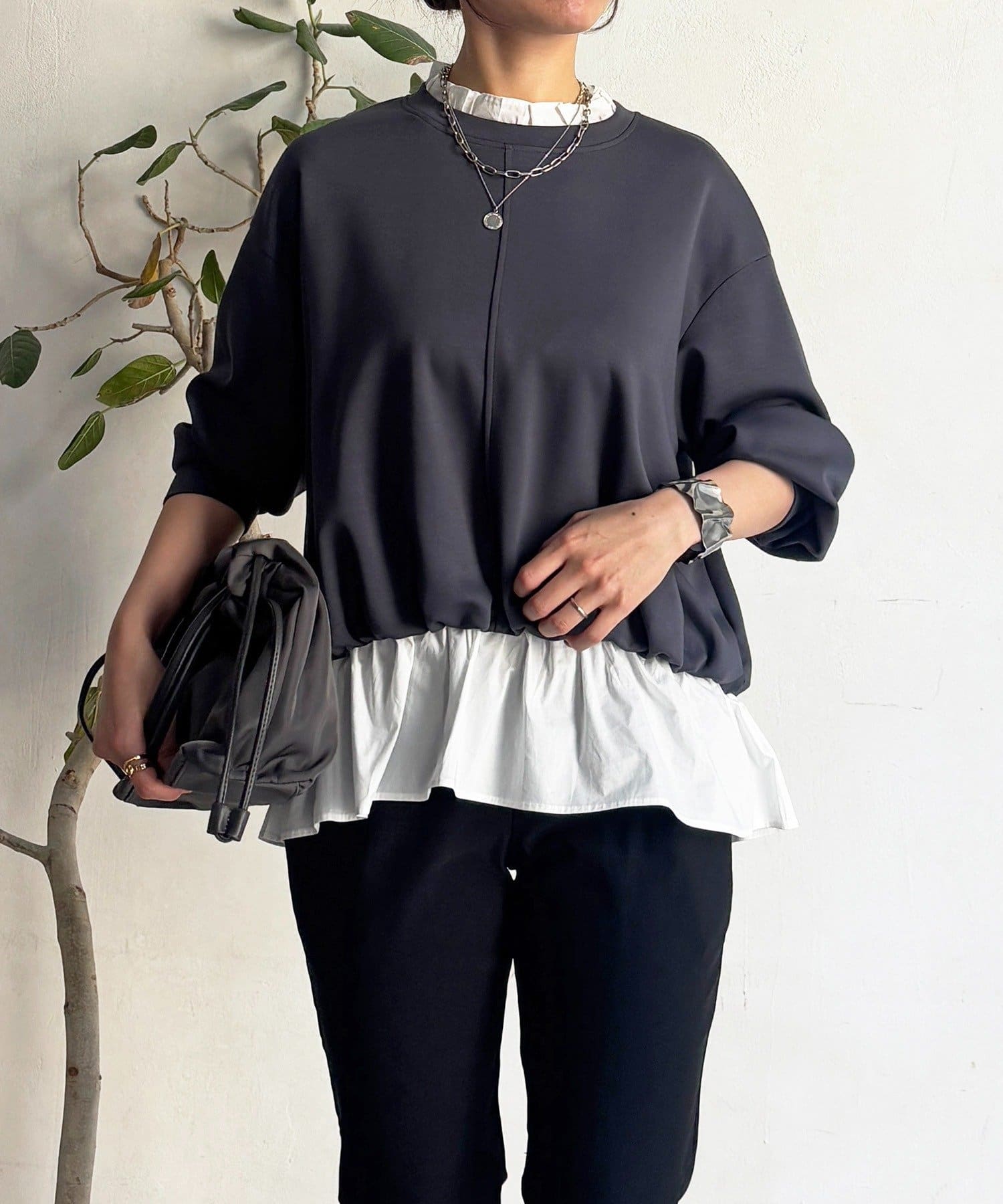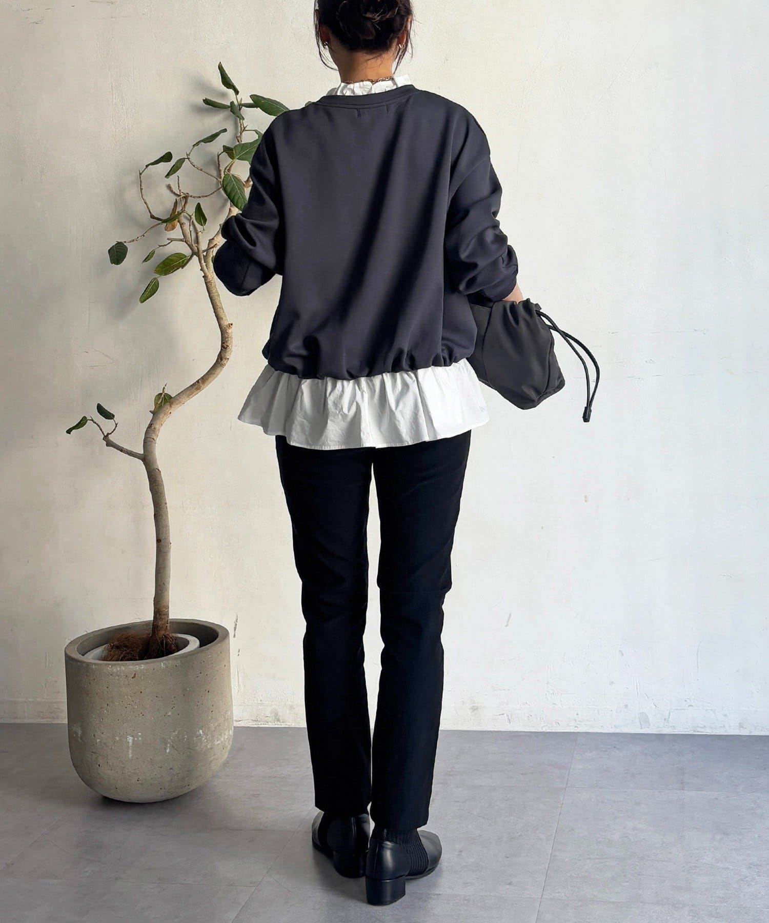 ・トレンド感のある異素材レイヤードスタイルが1枚で完成