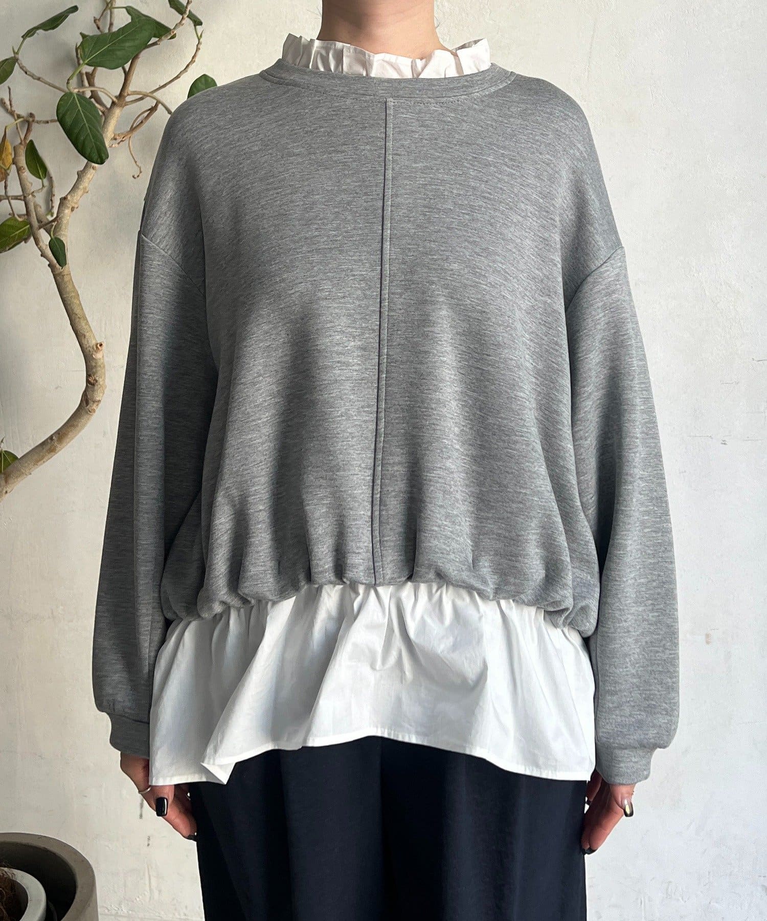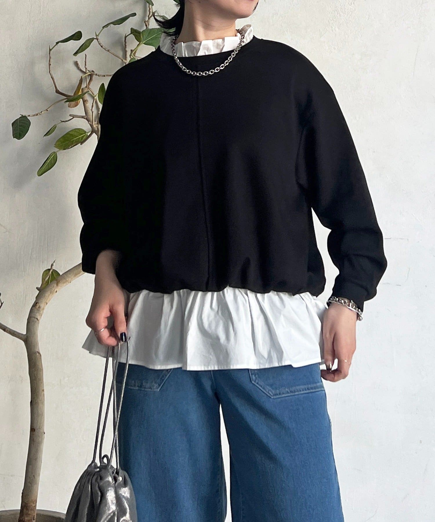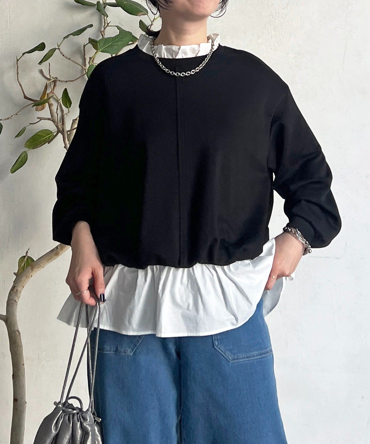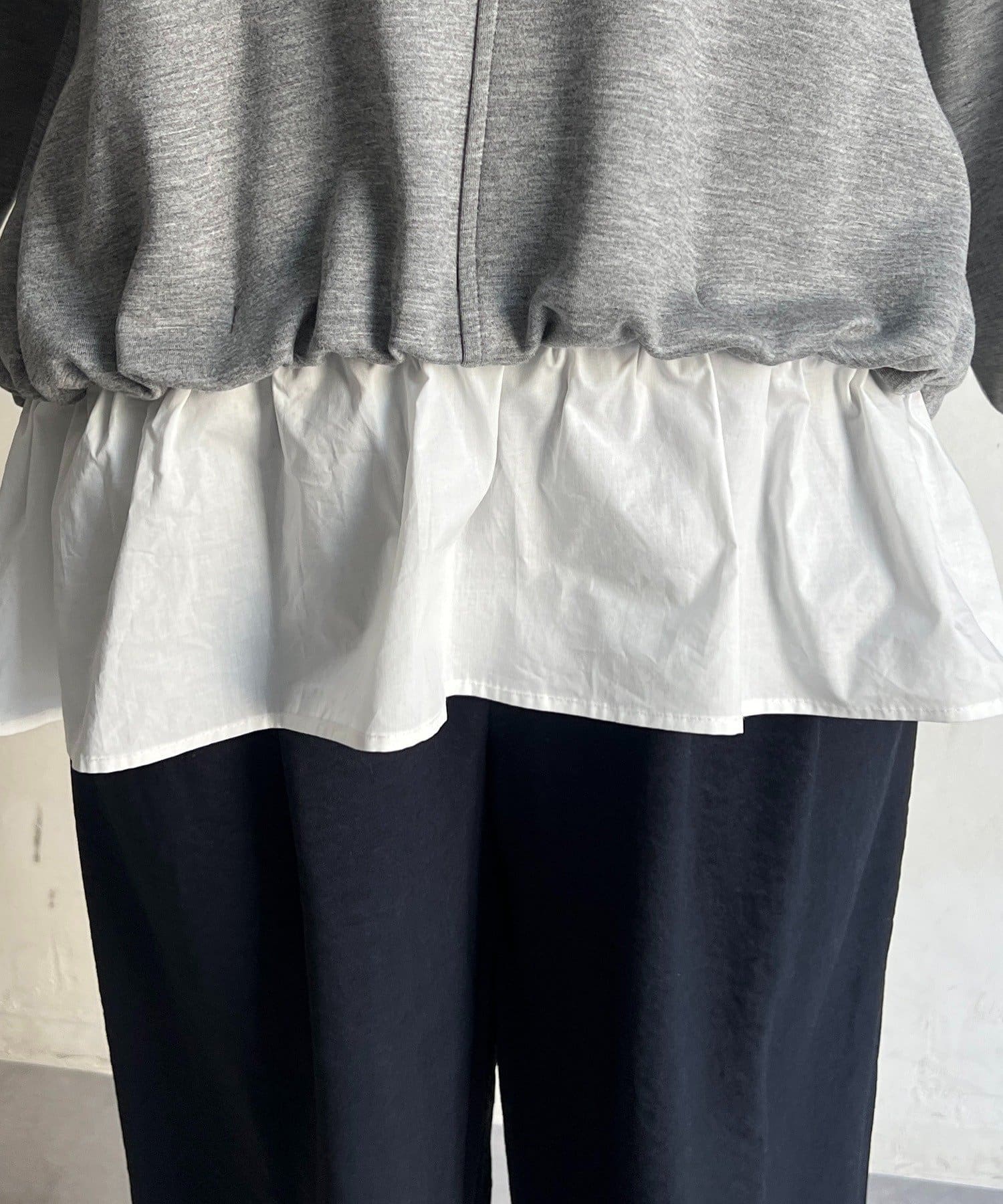 ・トレンド感のある異素材レイヤードスタイルが1枚で完成