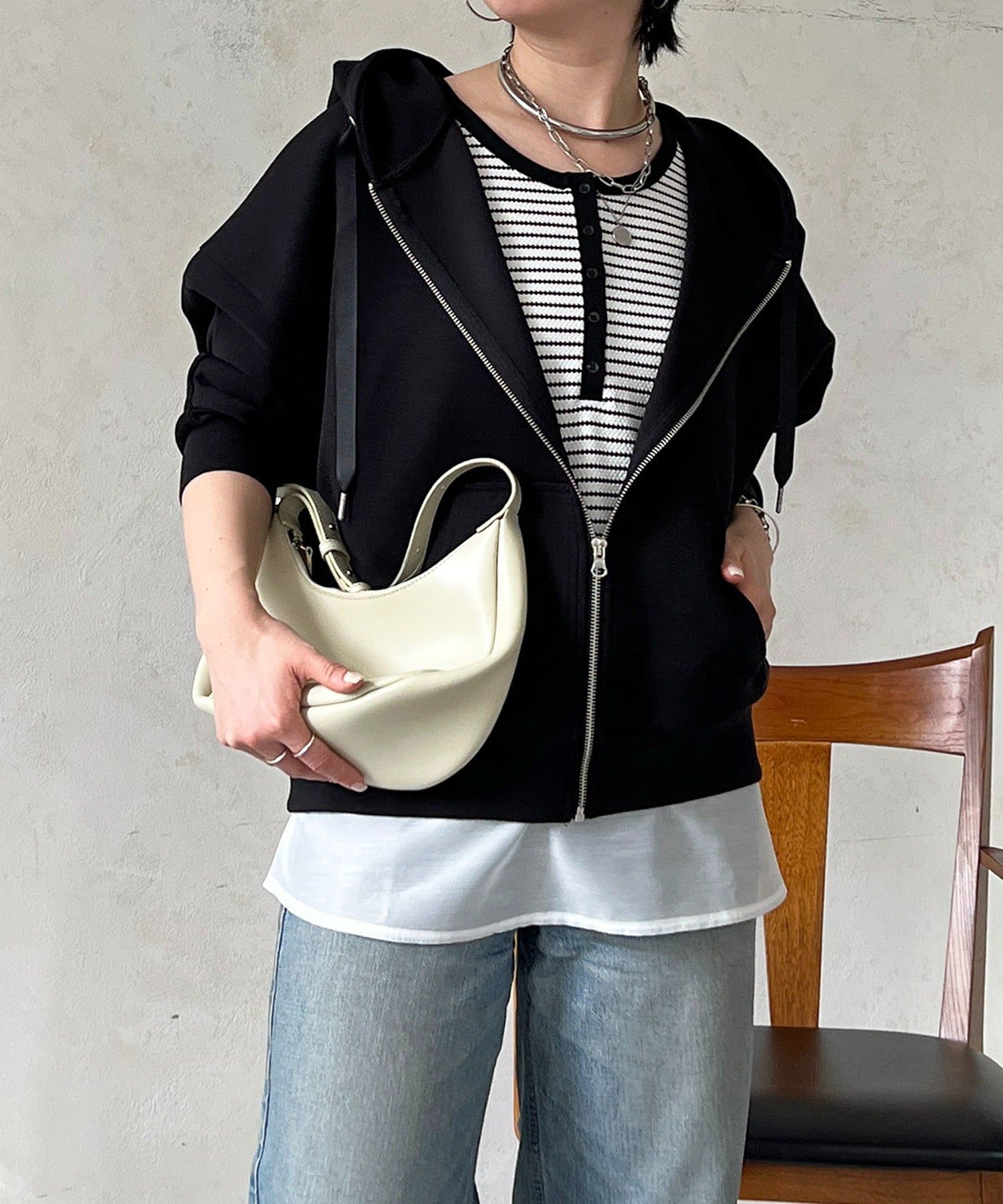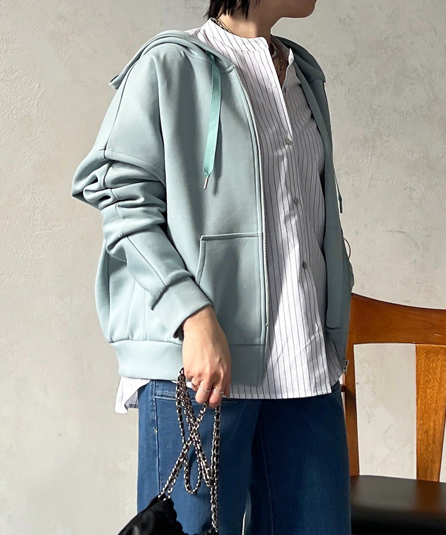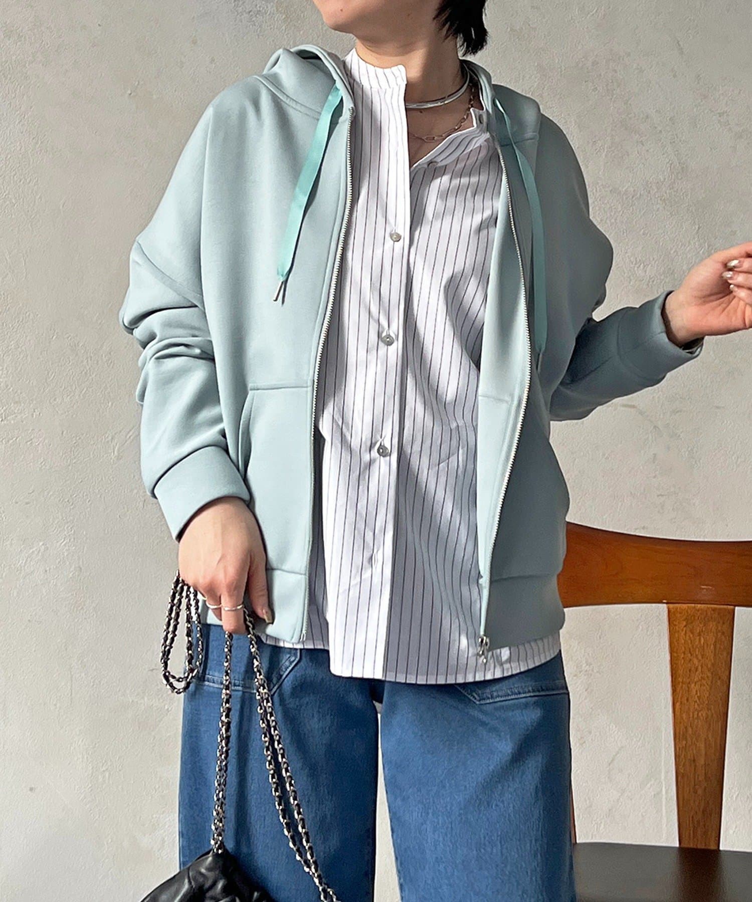 ・カジュアルなシルエットとほどよいハリ感のある上品素材がマッチ